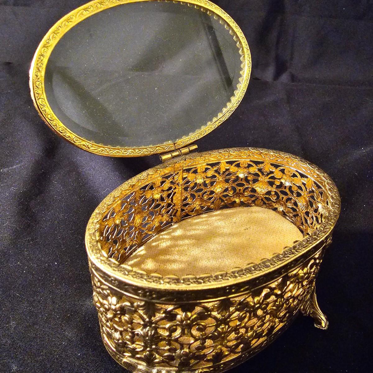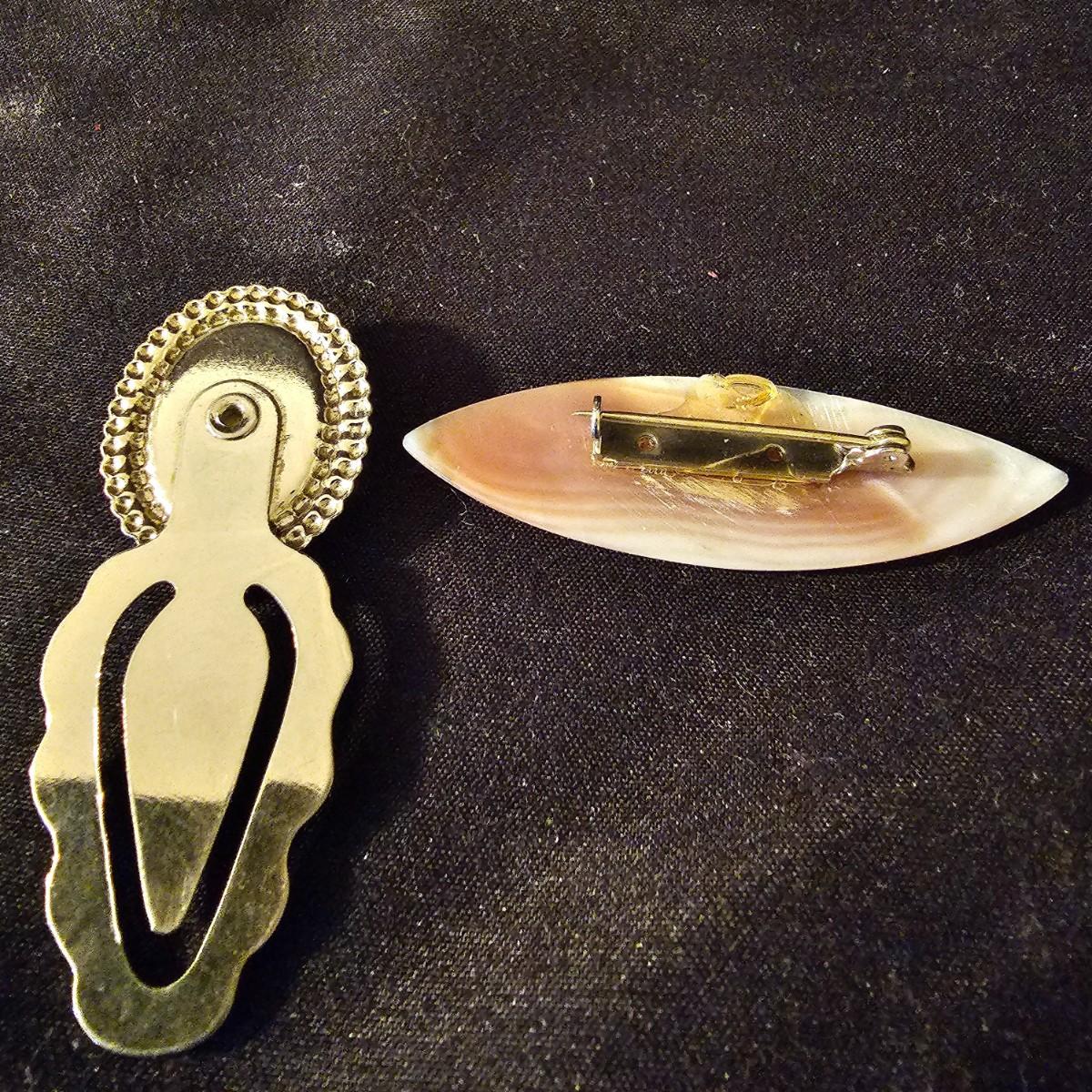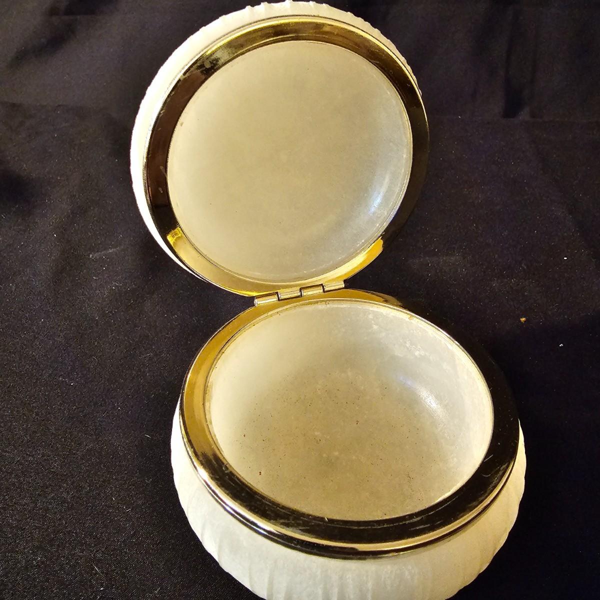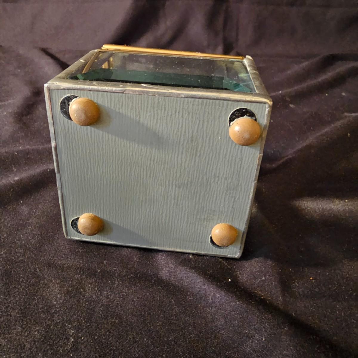 Several unique boxes of various materials. Rectangular item appears to be abalone shell and brass, made in Mexico. 4.5" x 3.5" x 1" h. Opaque white round box is 3.5" dia x 2" h. Beveled glass box is 3" sq x 2.5" h. Carved box with inlay lid is 3" dia x 1.5" h. One oval pin and one bookmark with a sailing ship on front. The last item appears to be two shells put together with a metal top. See photos for details. Shipping available.