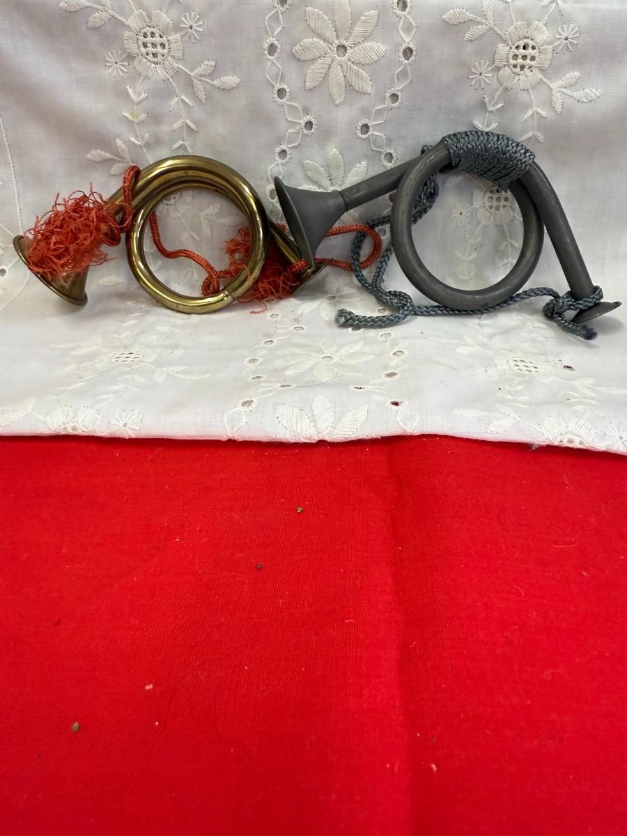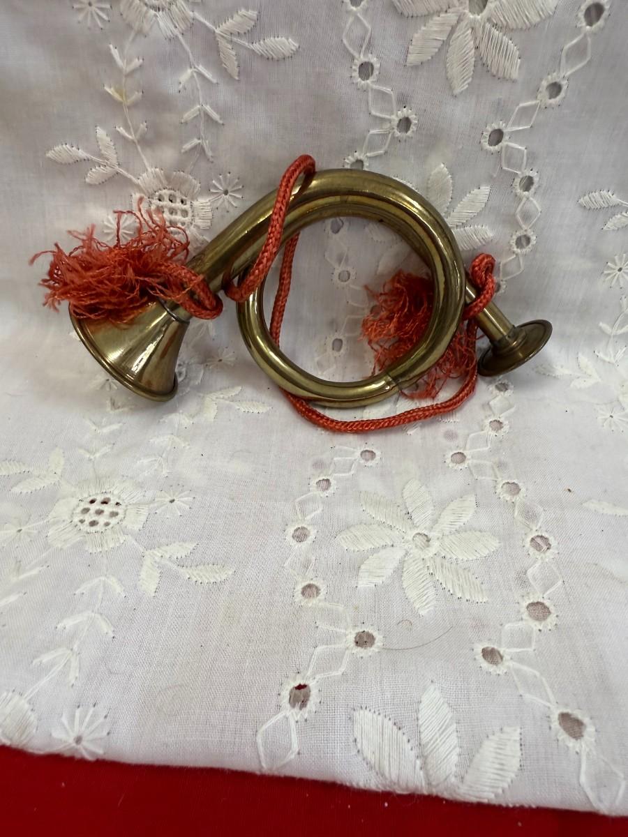 Bring a musical flair to your holiday decorations with this decorative brass horn lot of 2. These ornaments will add a unique touch to your tree or holiday display.