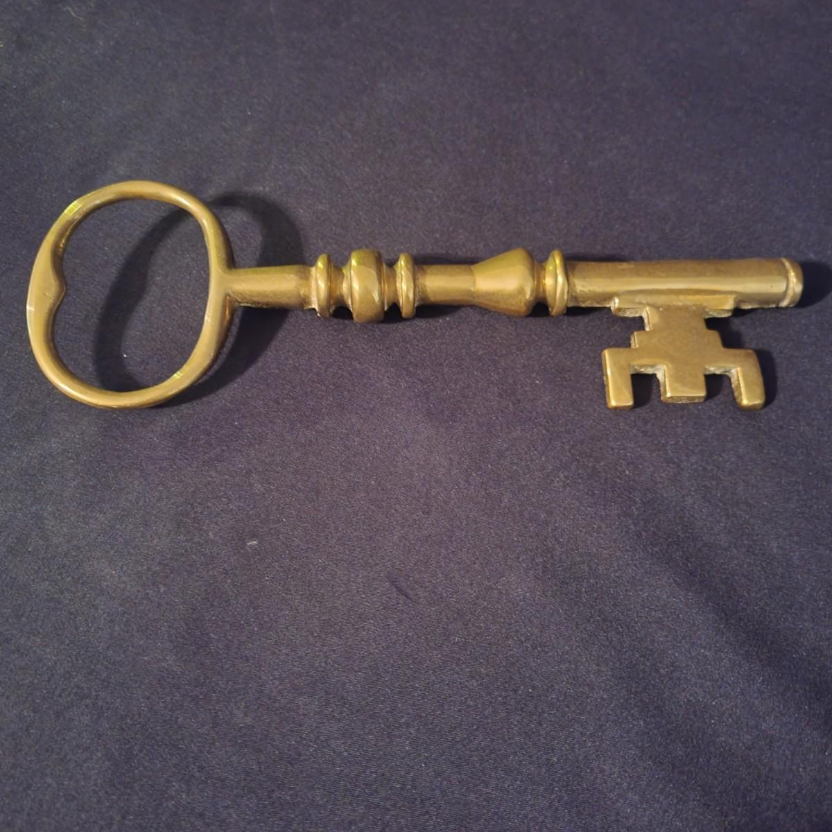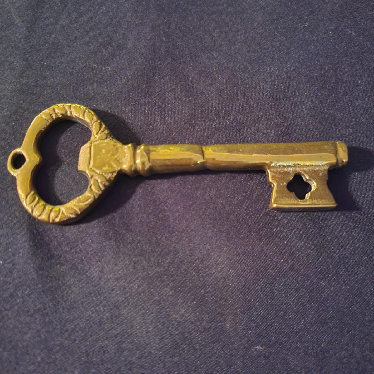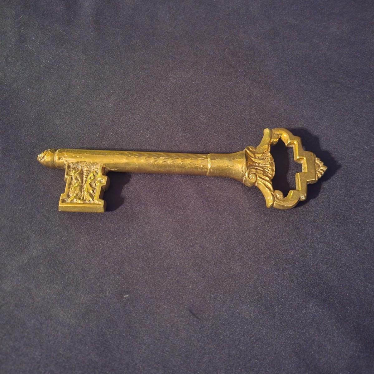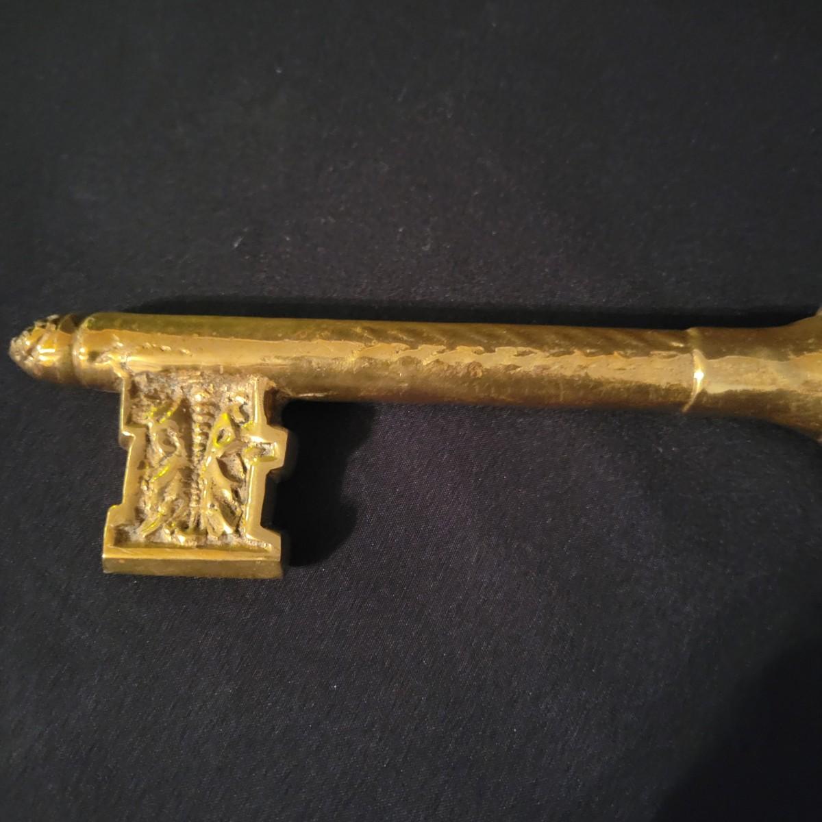 A collection of four decorative brass keys, the largest key measures approximately 9.5" x 3"H. Shipping available