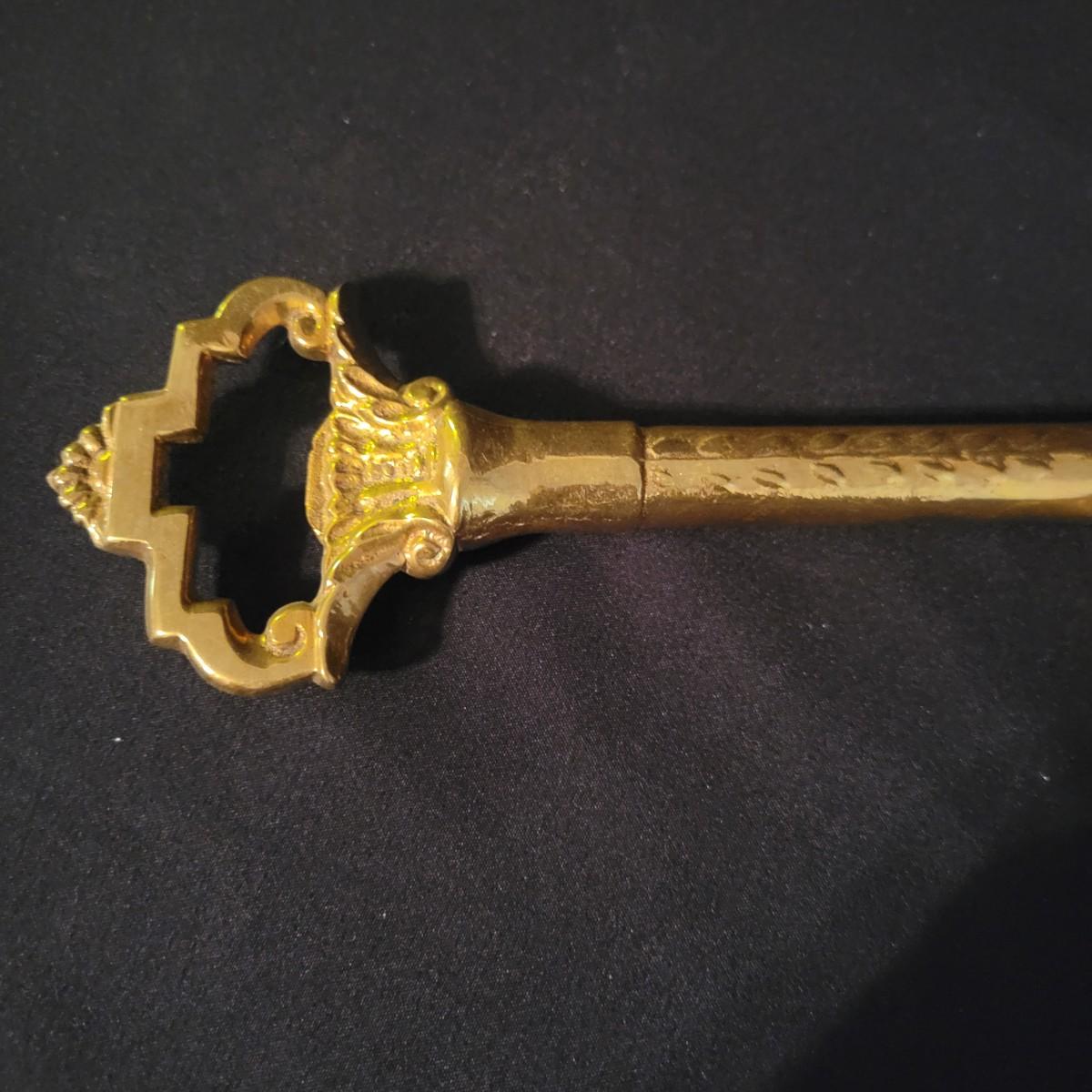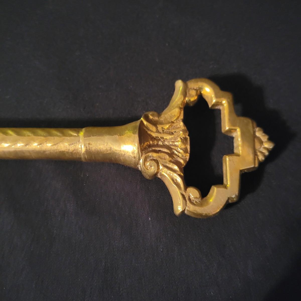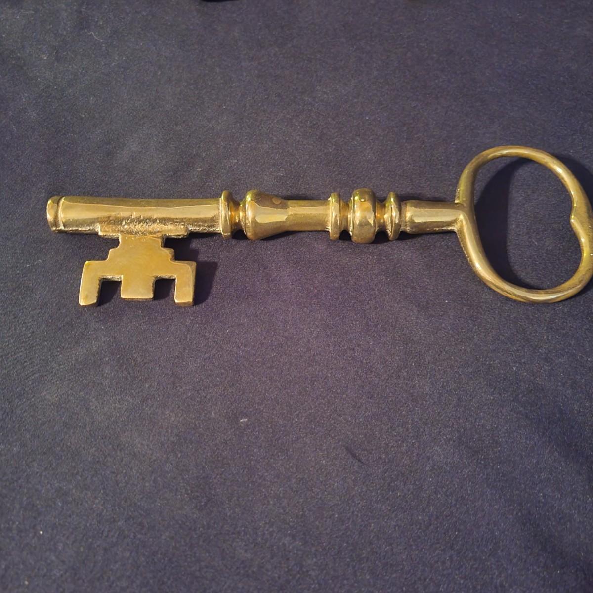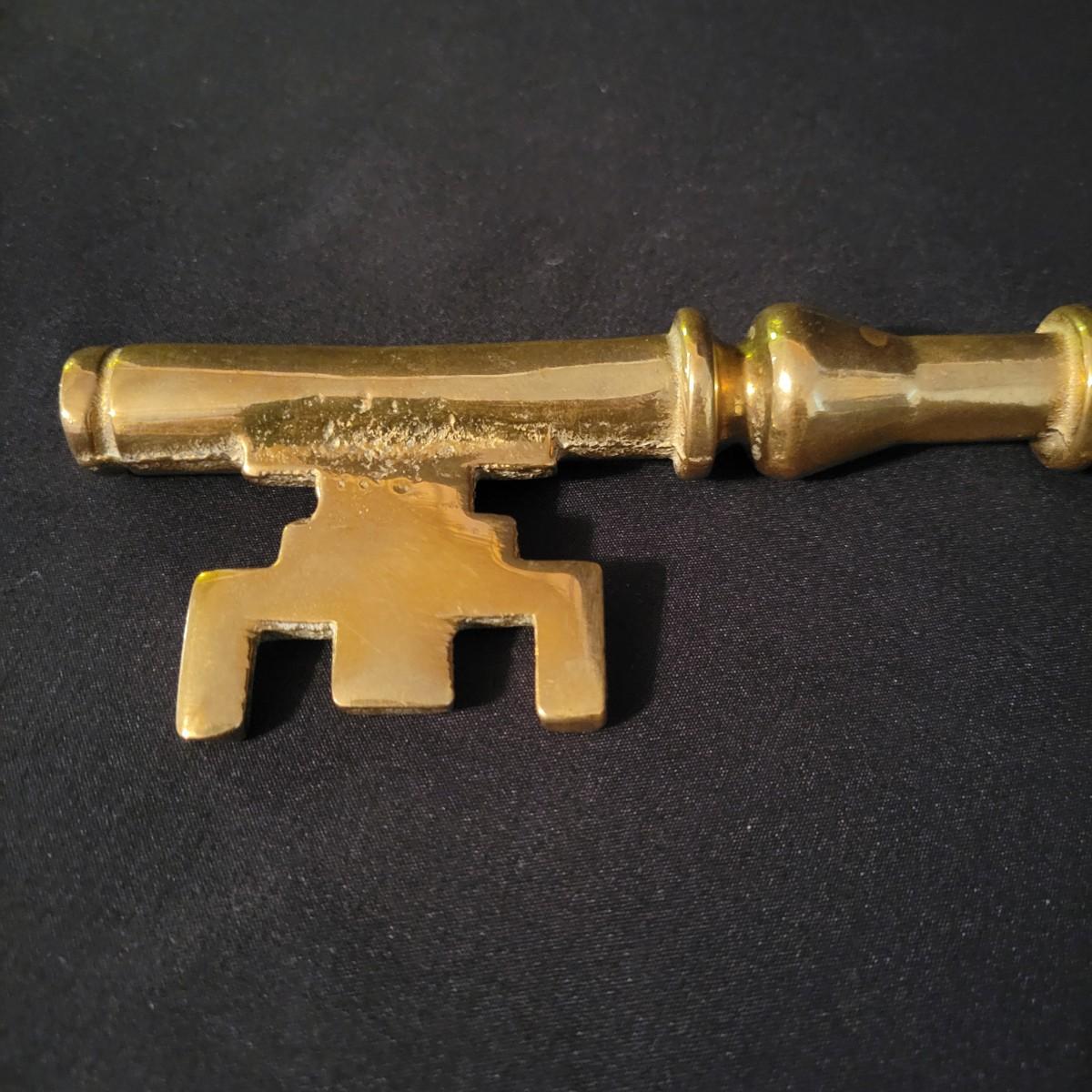 A collection of four decorative brass keys, the largest key measures approximately 9.5" x 3"H. Shipping available