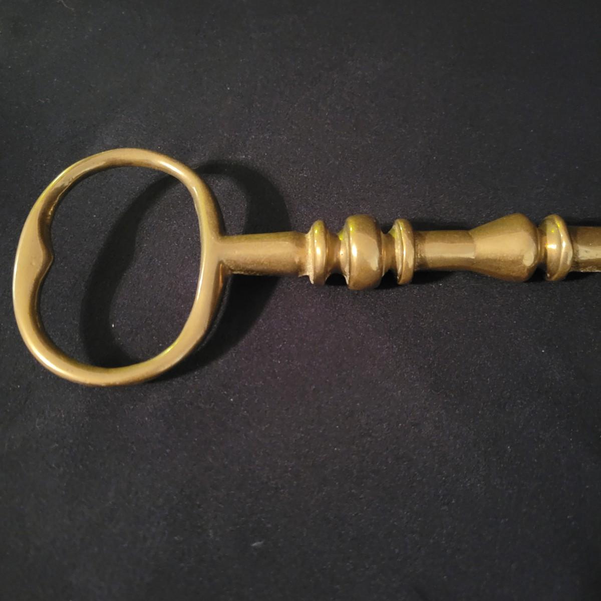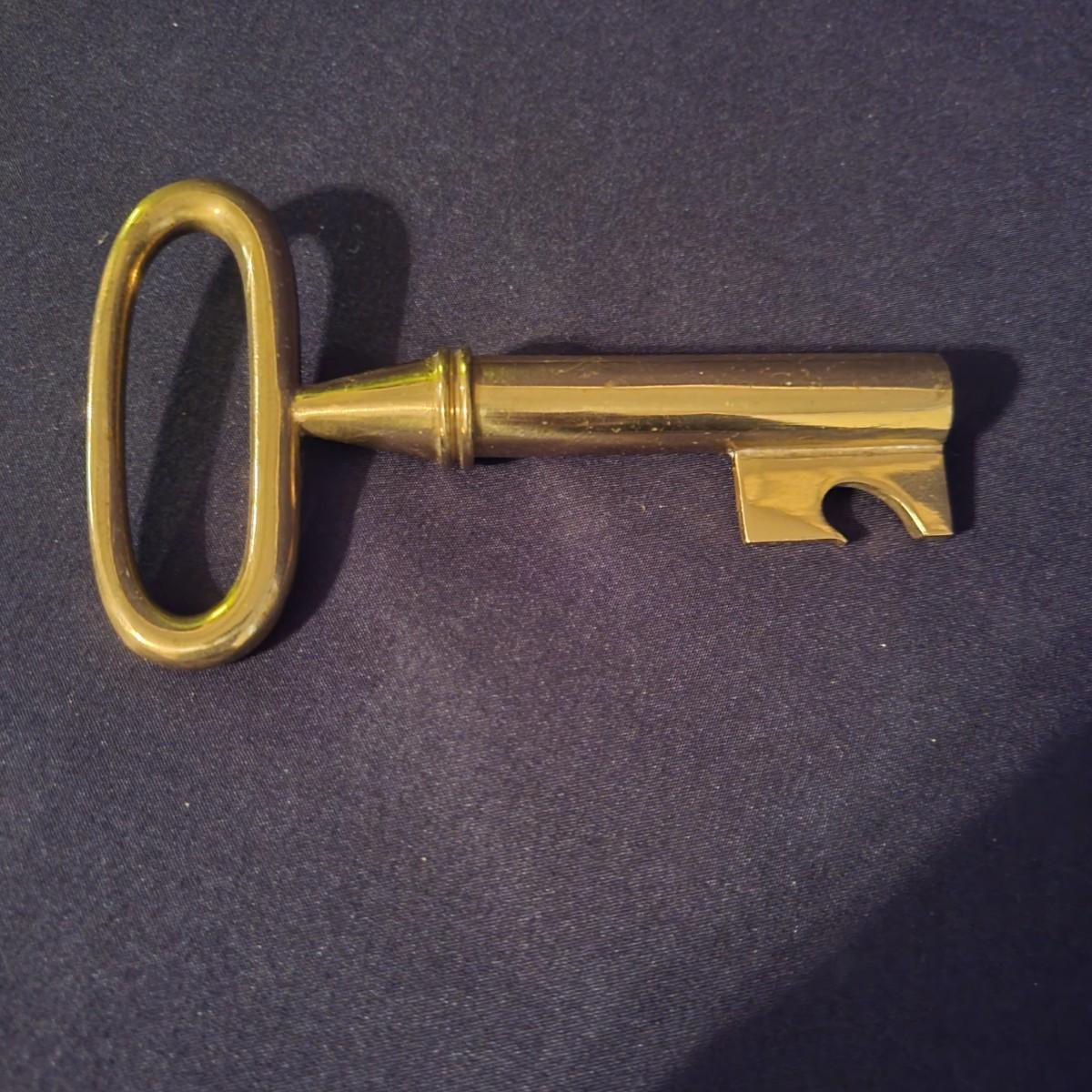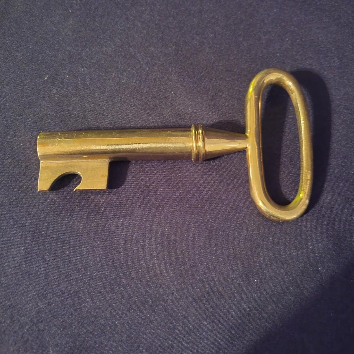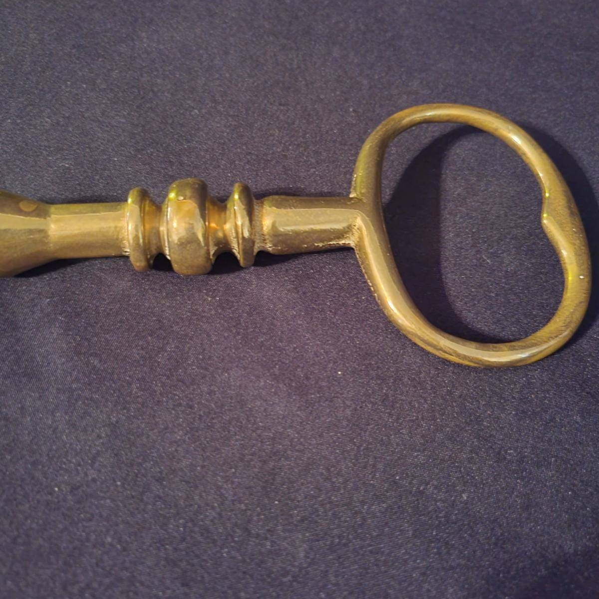 A collection of four decorative brass keys, the largest key measures approximately 9.5" x 3"H. Shipping available
