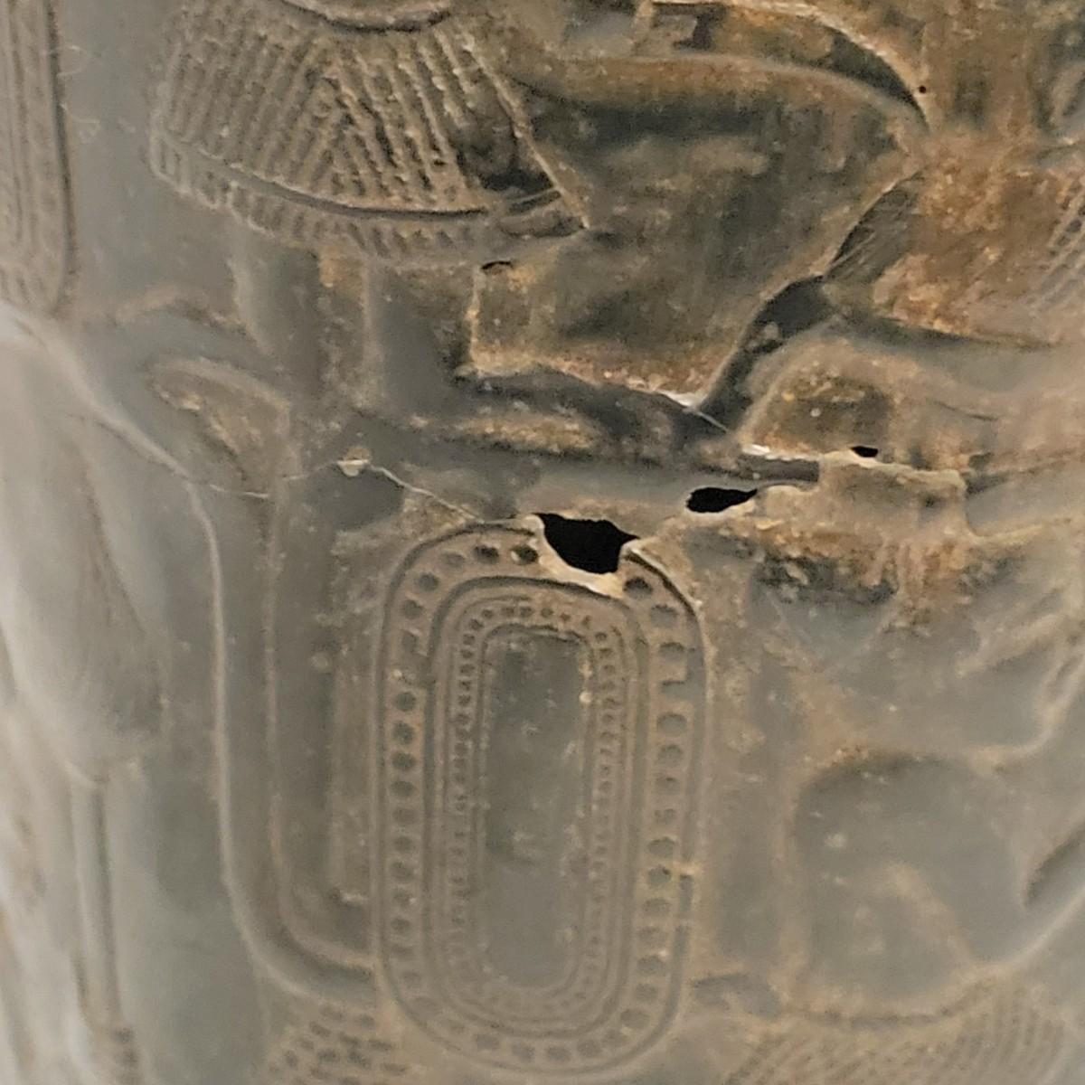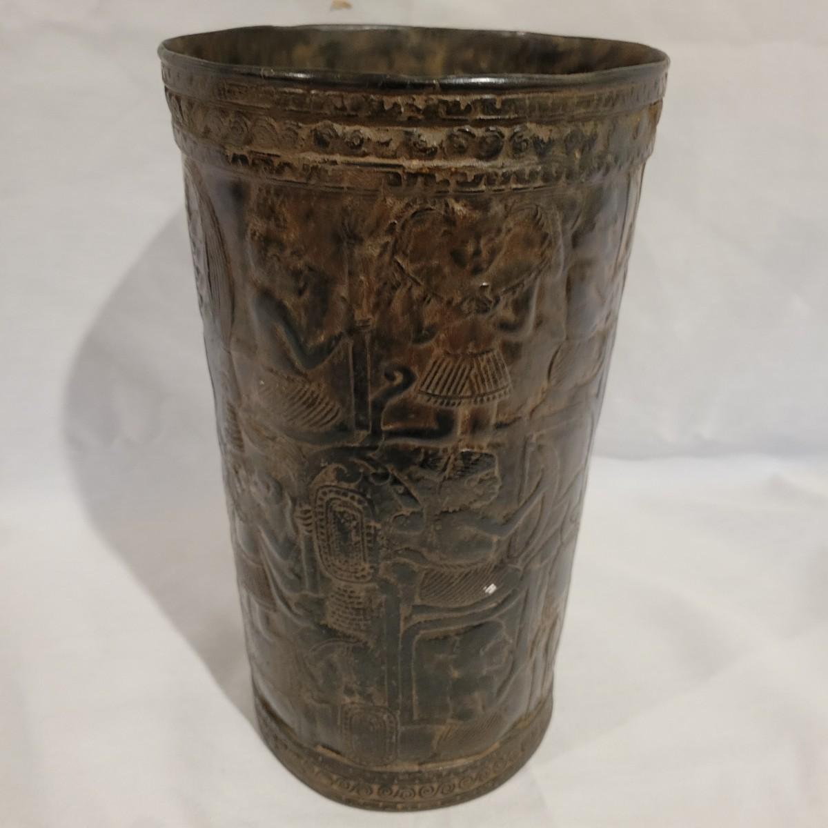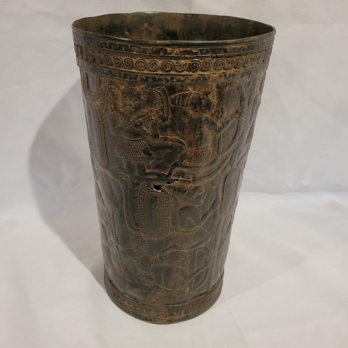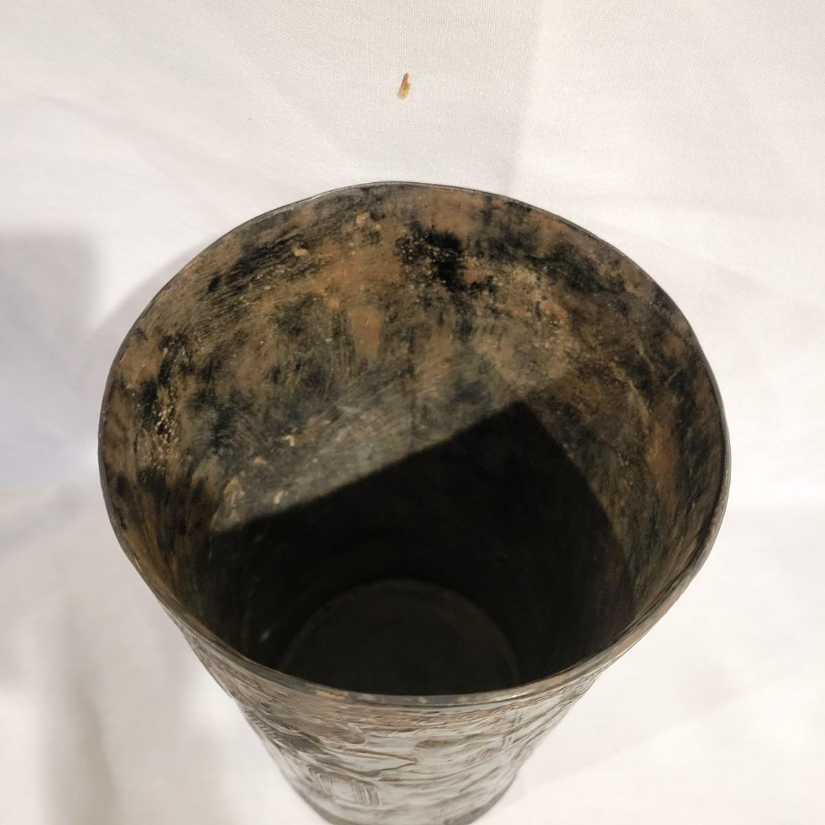 A decorative vase that appears to made of bronze. It measures approximately 6"D x 10.5"H. There are two small holes on the piece. Shipping available