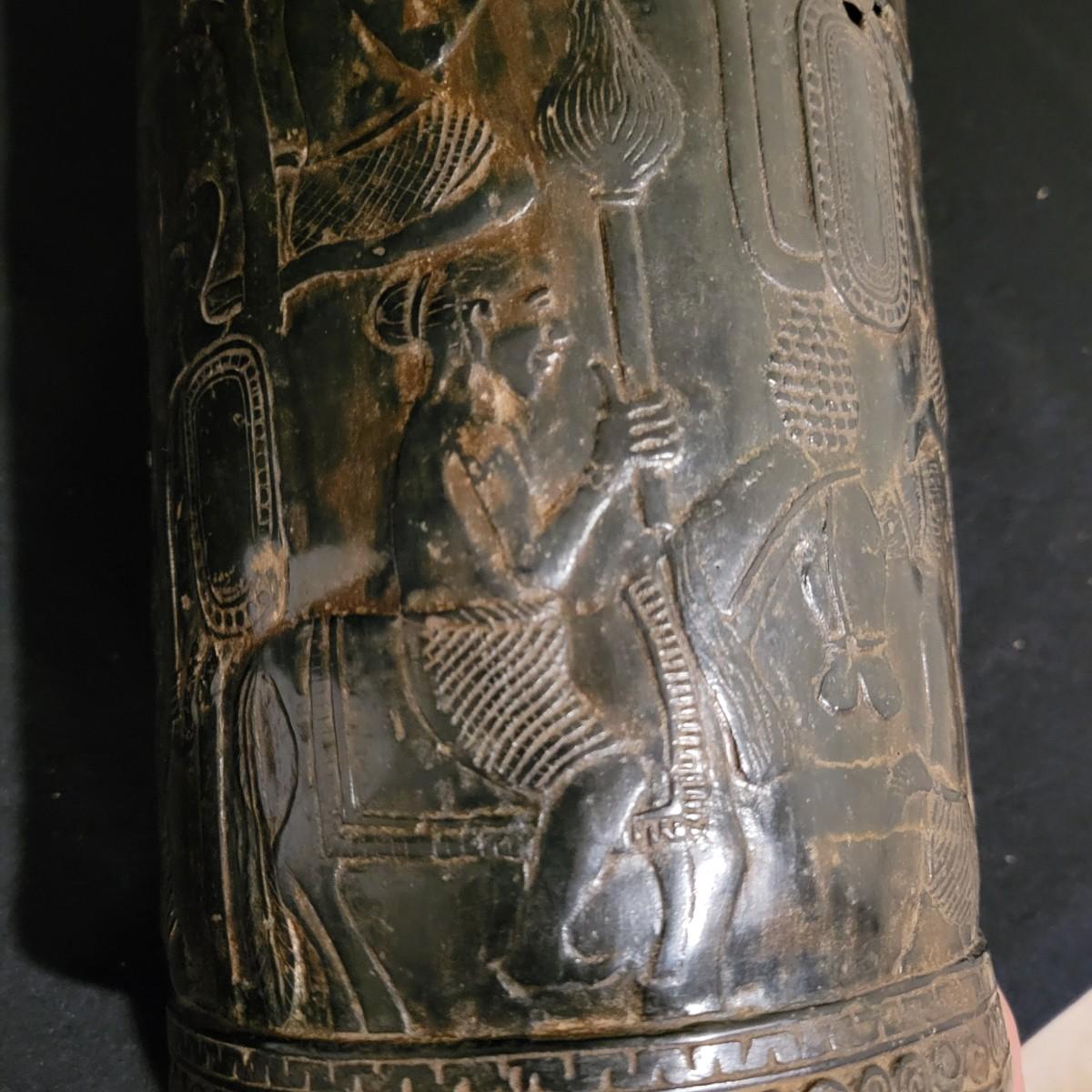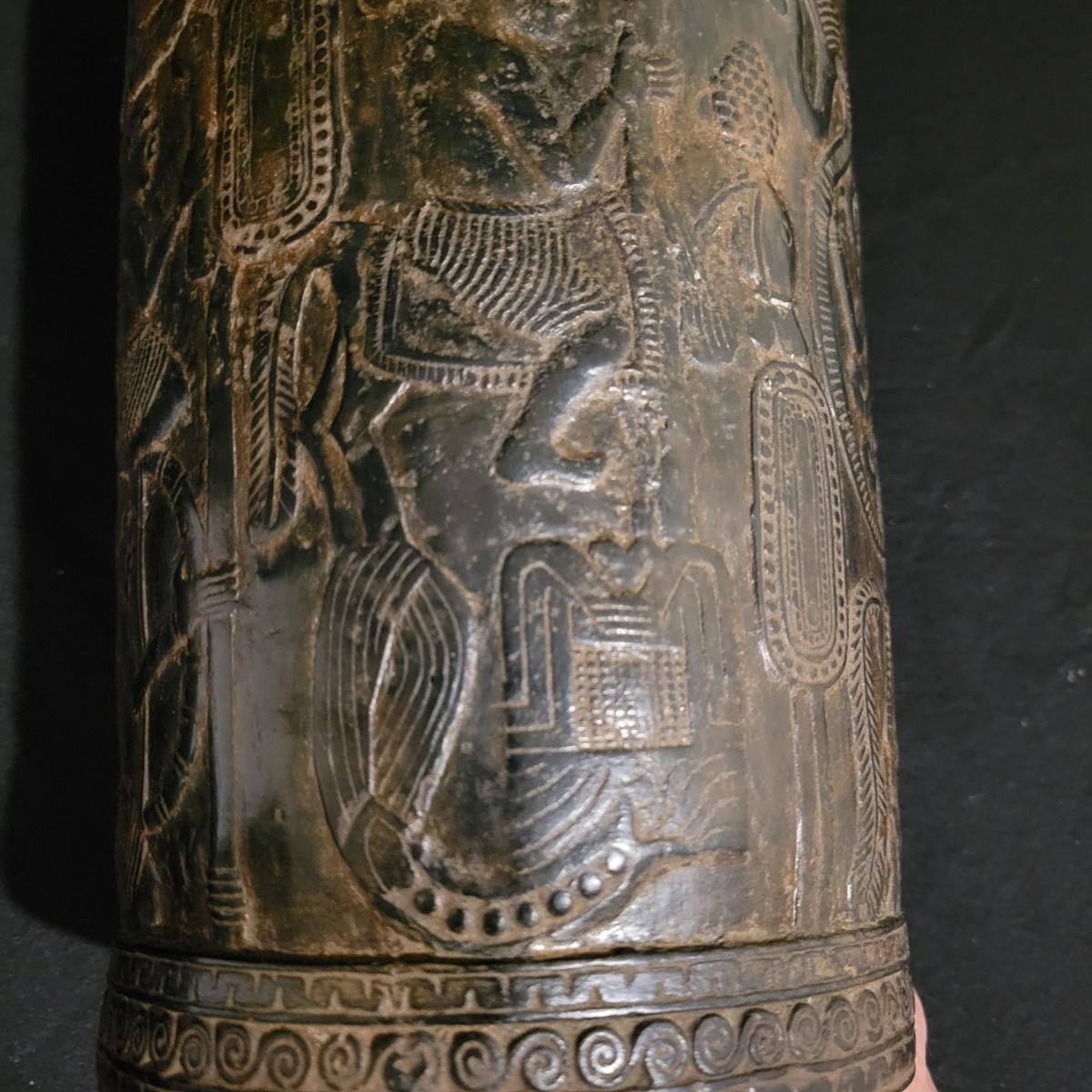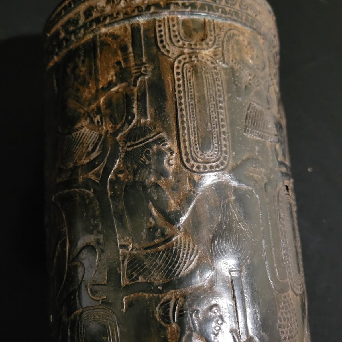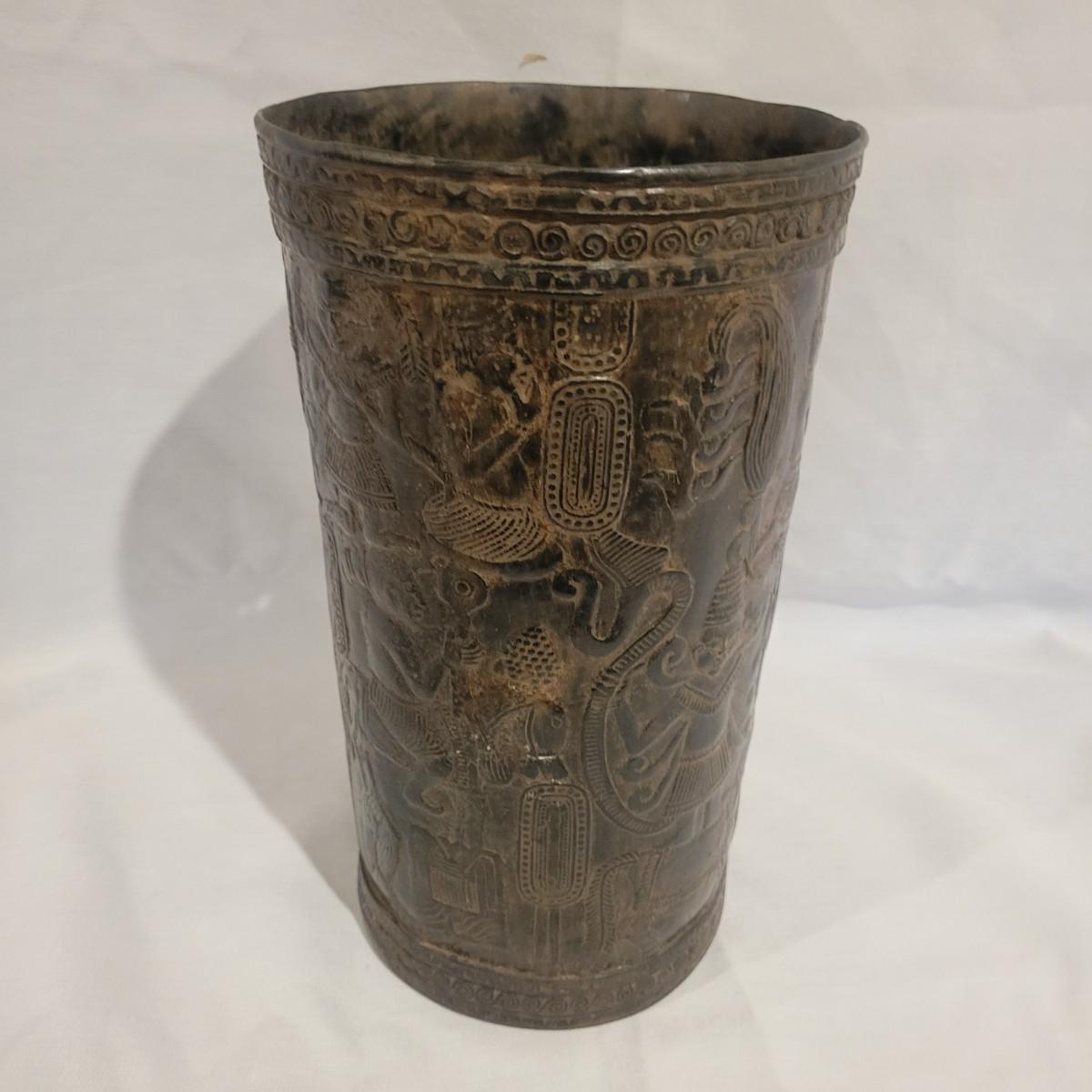 A decorative vase that appears to made of bronze. It measures approximately 6"D x 10.5"H. There are two small holes on the piece. Shipping available