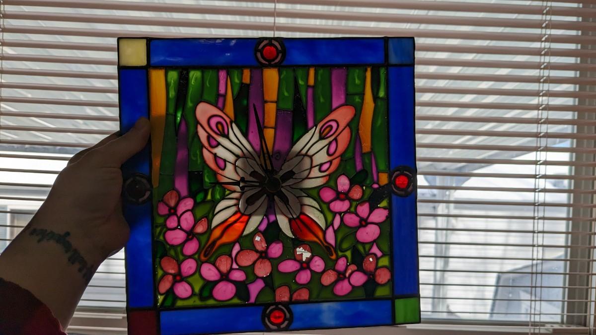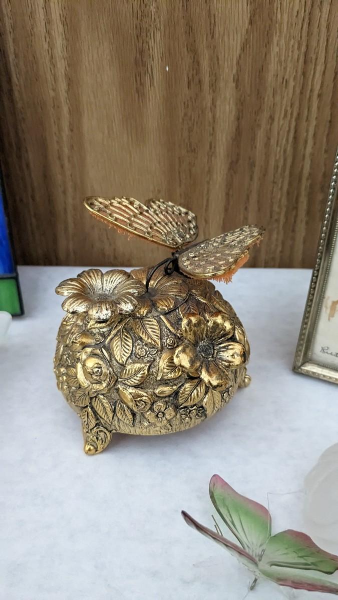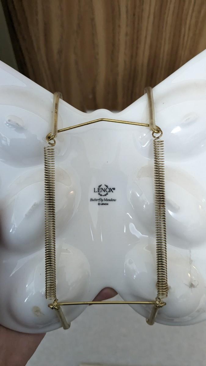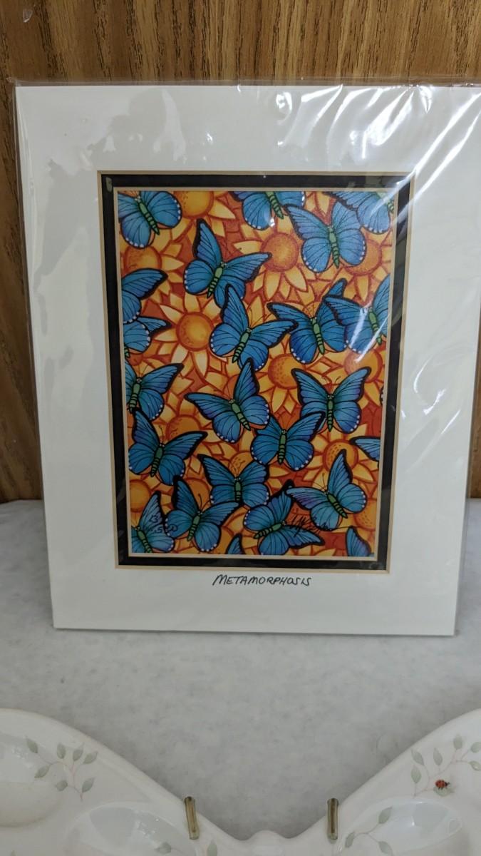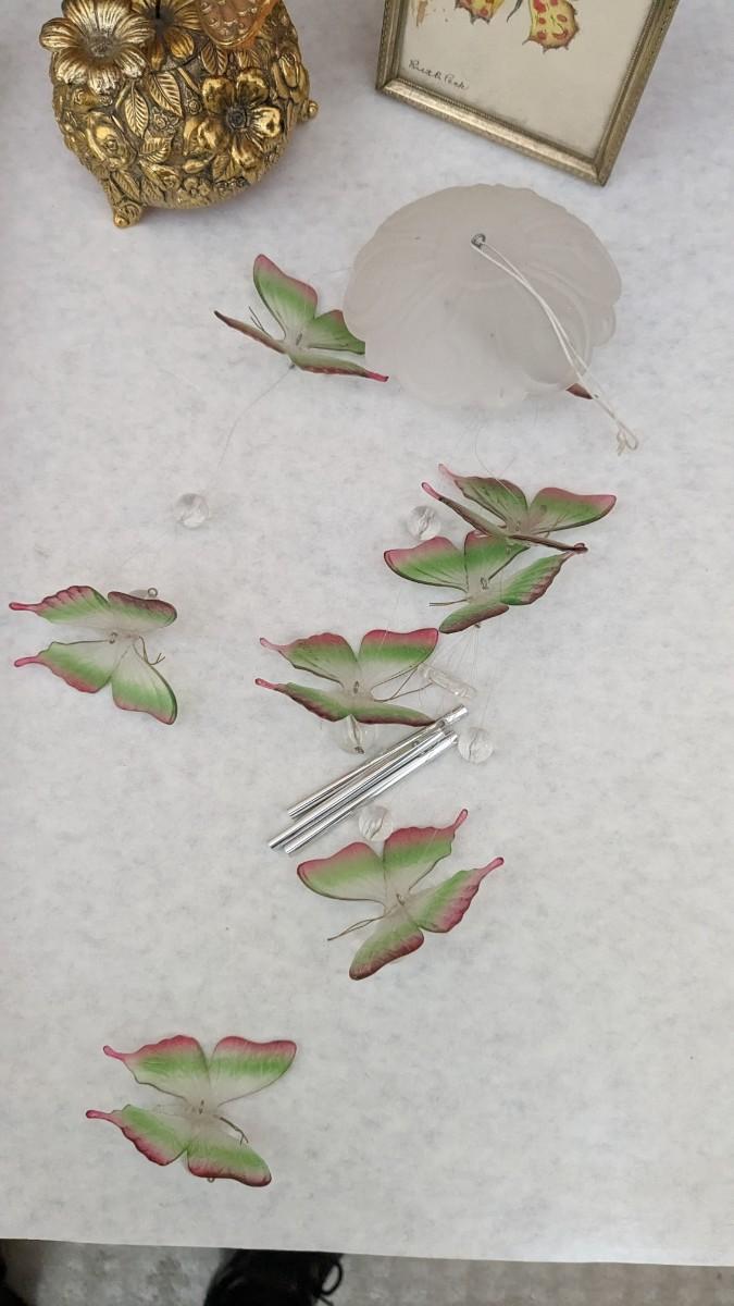lots of butterfly specific home items in this one. Includes Lenox butterfly deviled egg plate, prints, wind chime, a stunning articulating Westland music box that is fully operational, and a gorgeous stained glass tile turned clock. Beautiful items in this one. Specialty handling will apply, please inquire for more details. bdrm2