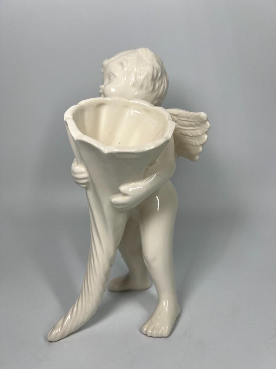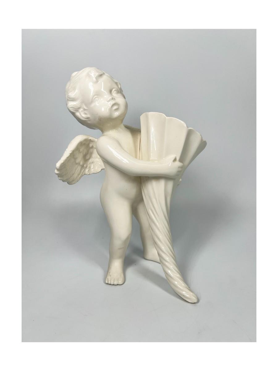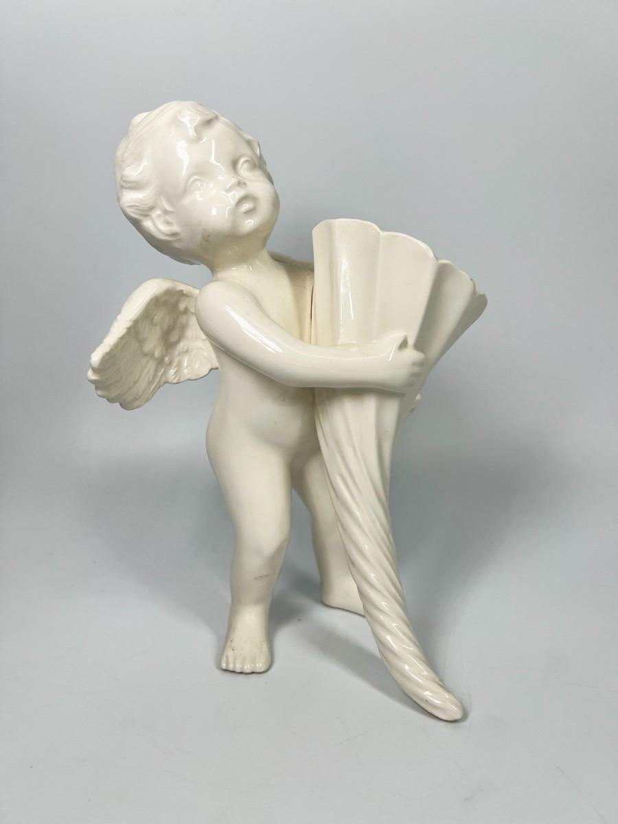 Decorative Ceramic Angel Cherub Cornucopia Styled Vase, there is no significant damage to the ceramic and is in good displayable condition. Check pictures for more details and for sizing.