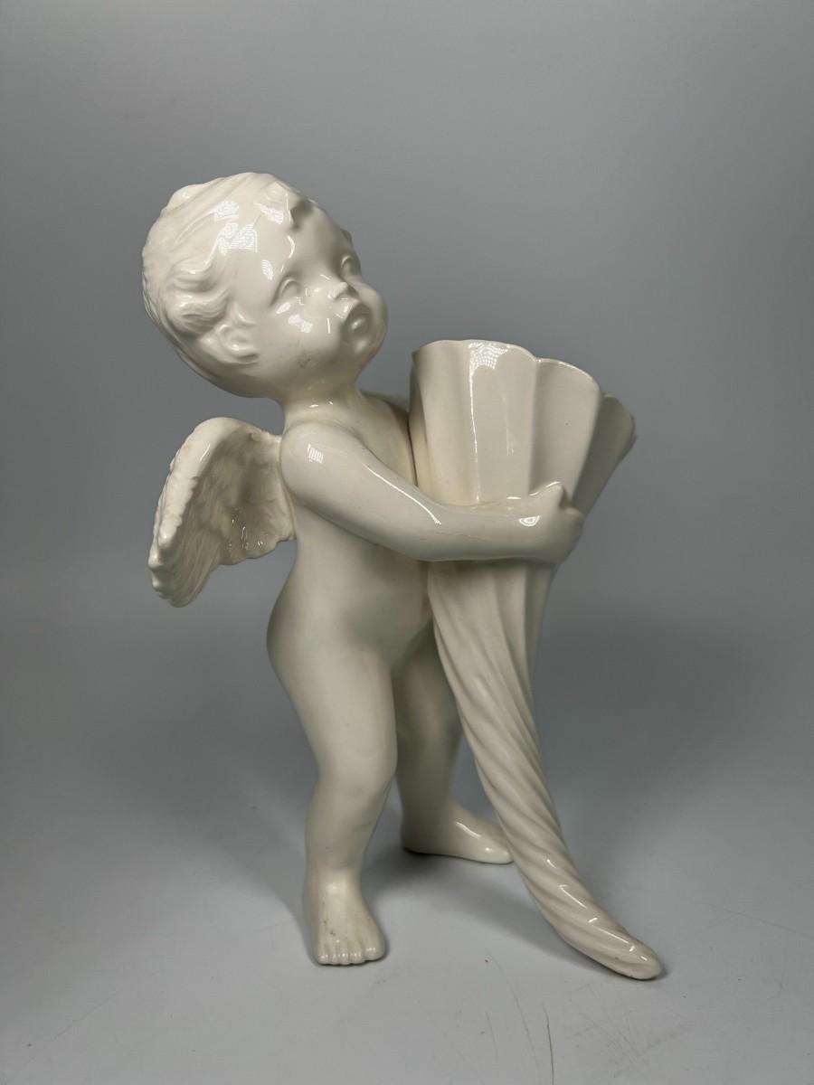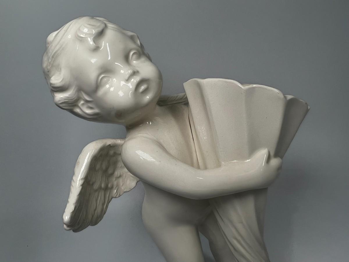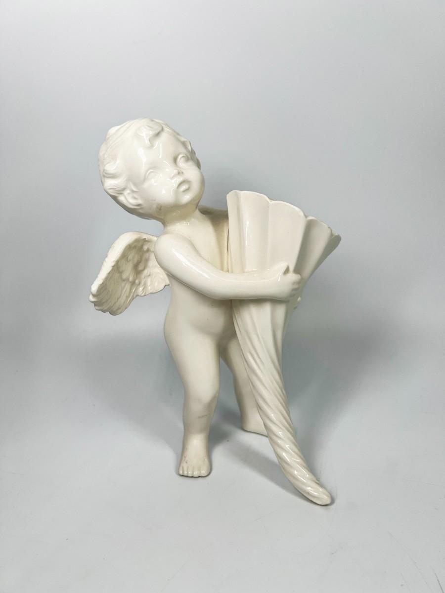 Decorative Ceramic Angel Cherub Cornucopia Styled Vase, there is no significant damage to the ceramic and is in good displayable condition. Check pictures for more details and for sizing.