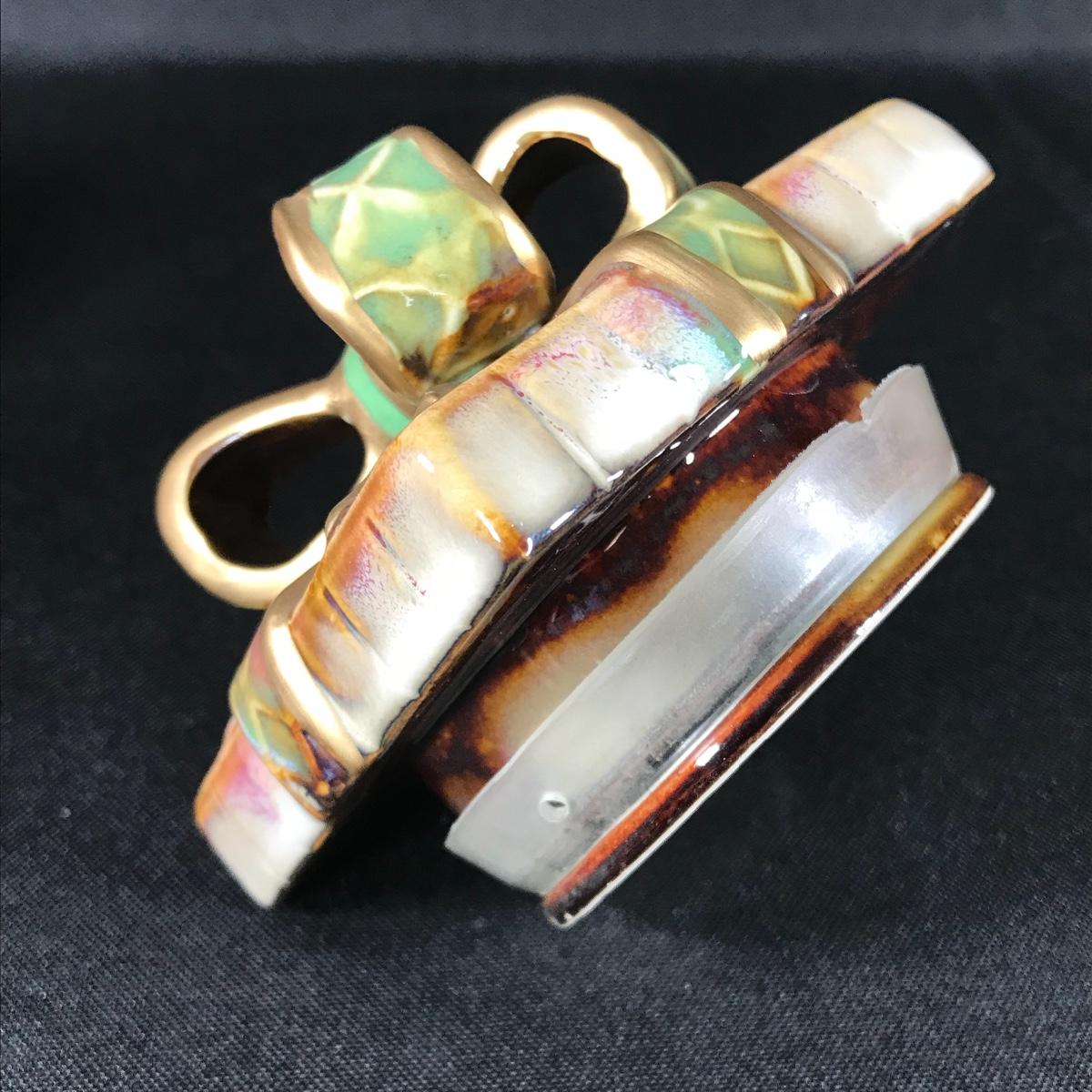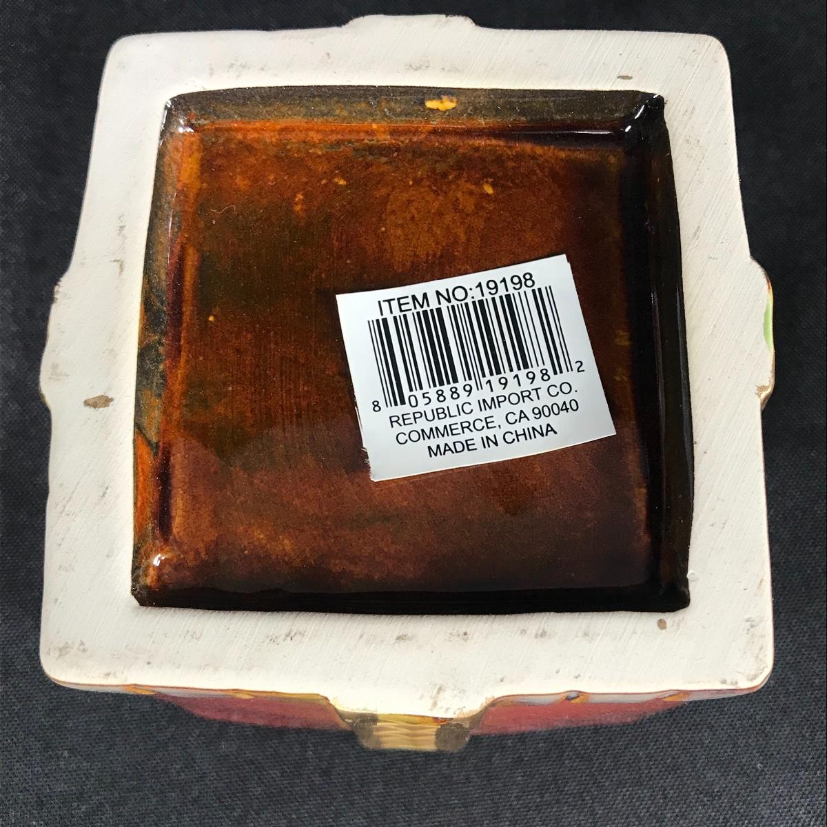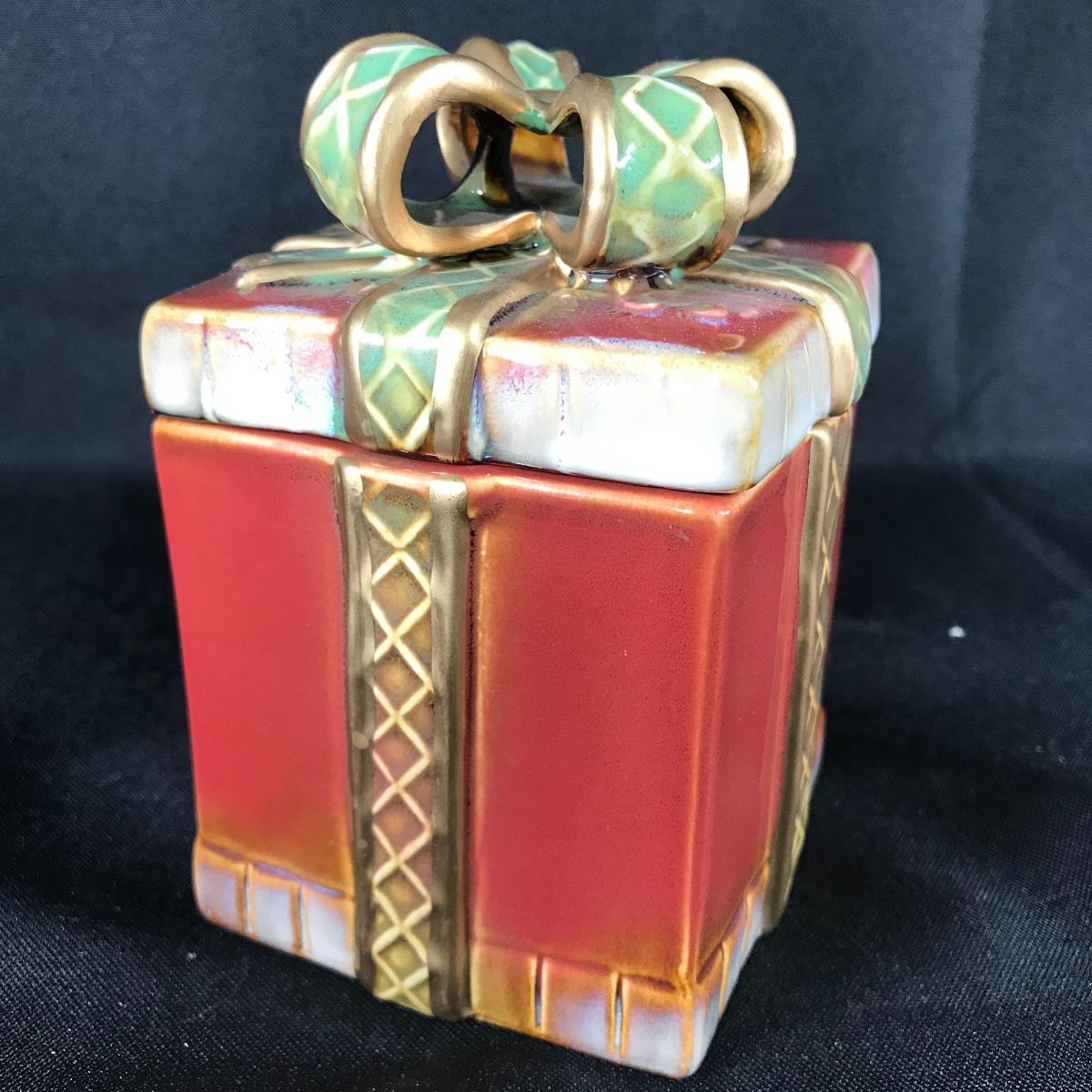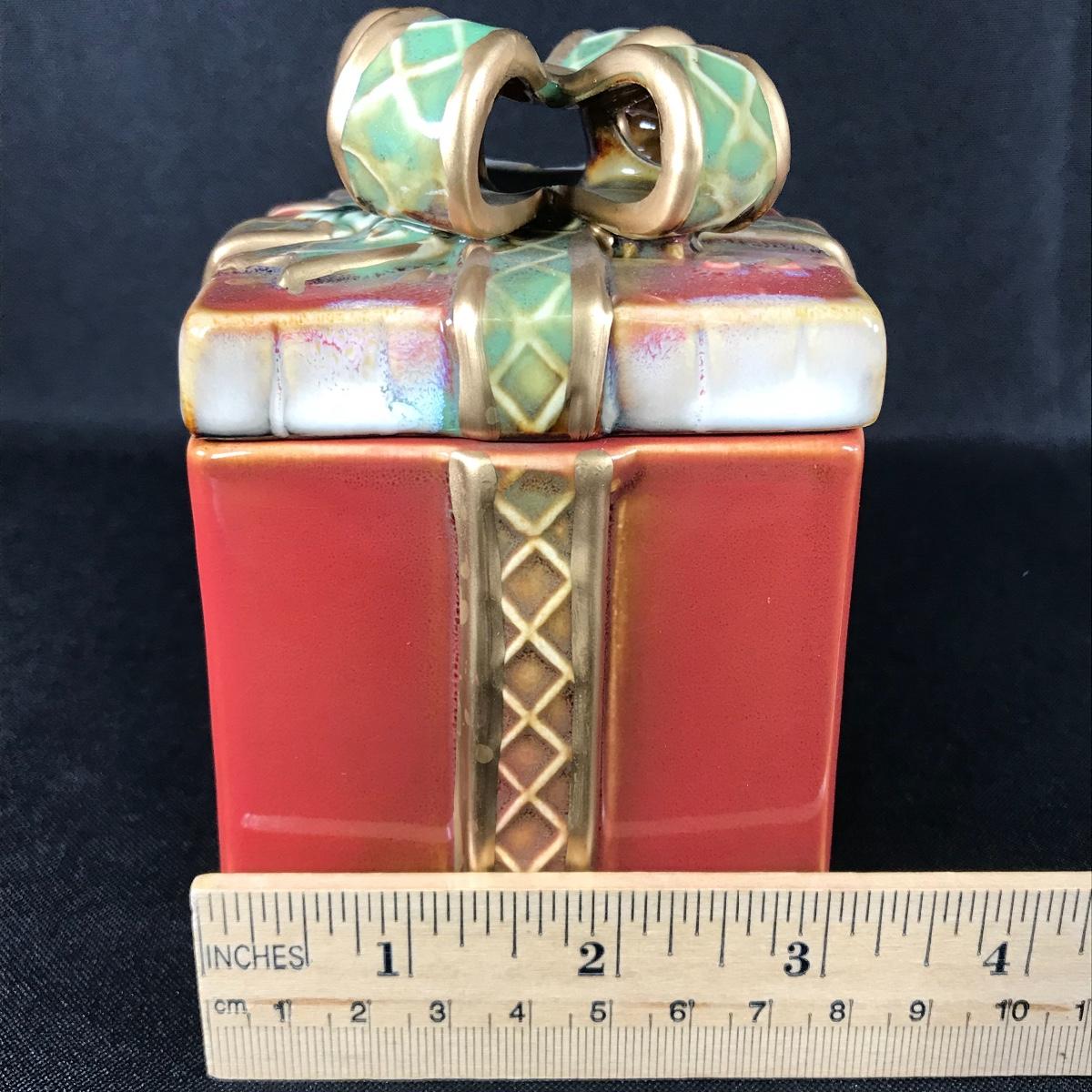 Up for auction is a decorative ceramic trinket box. It is in good condition with no cracks, or chips; see pictures.