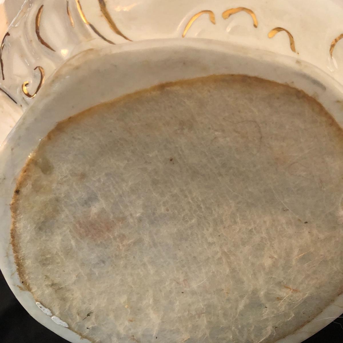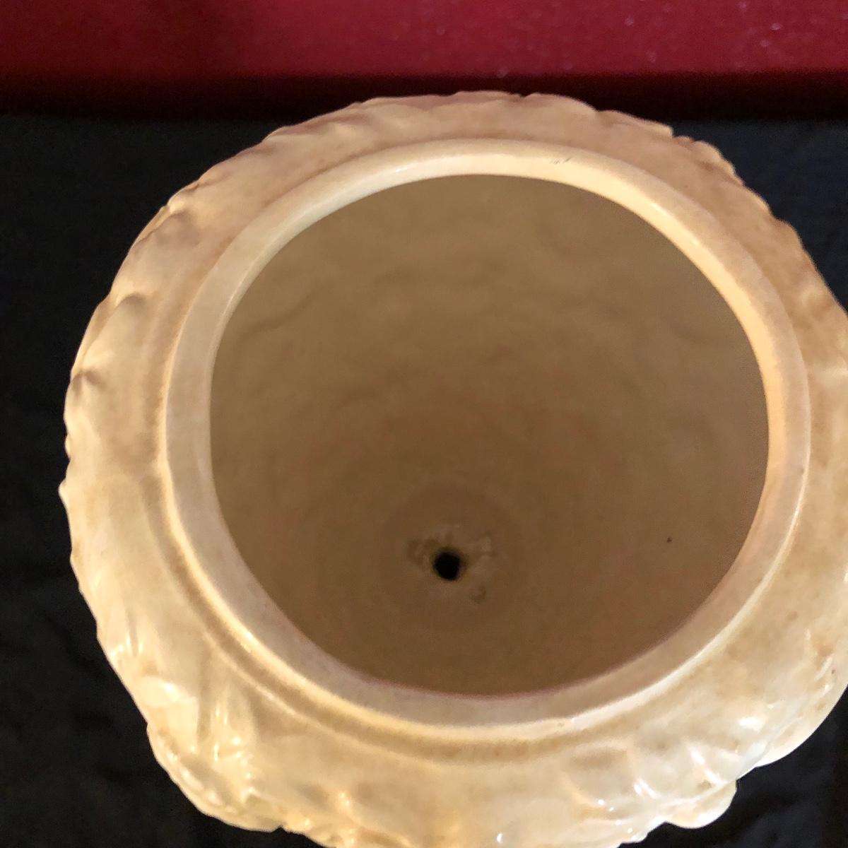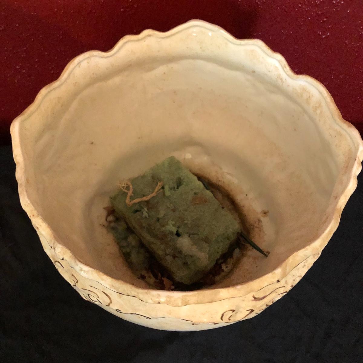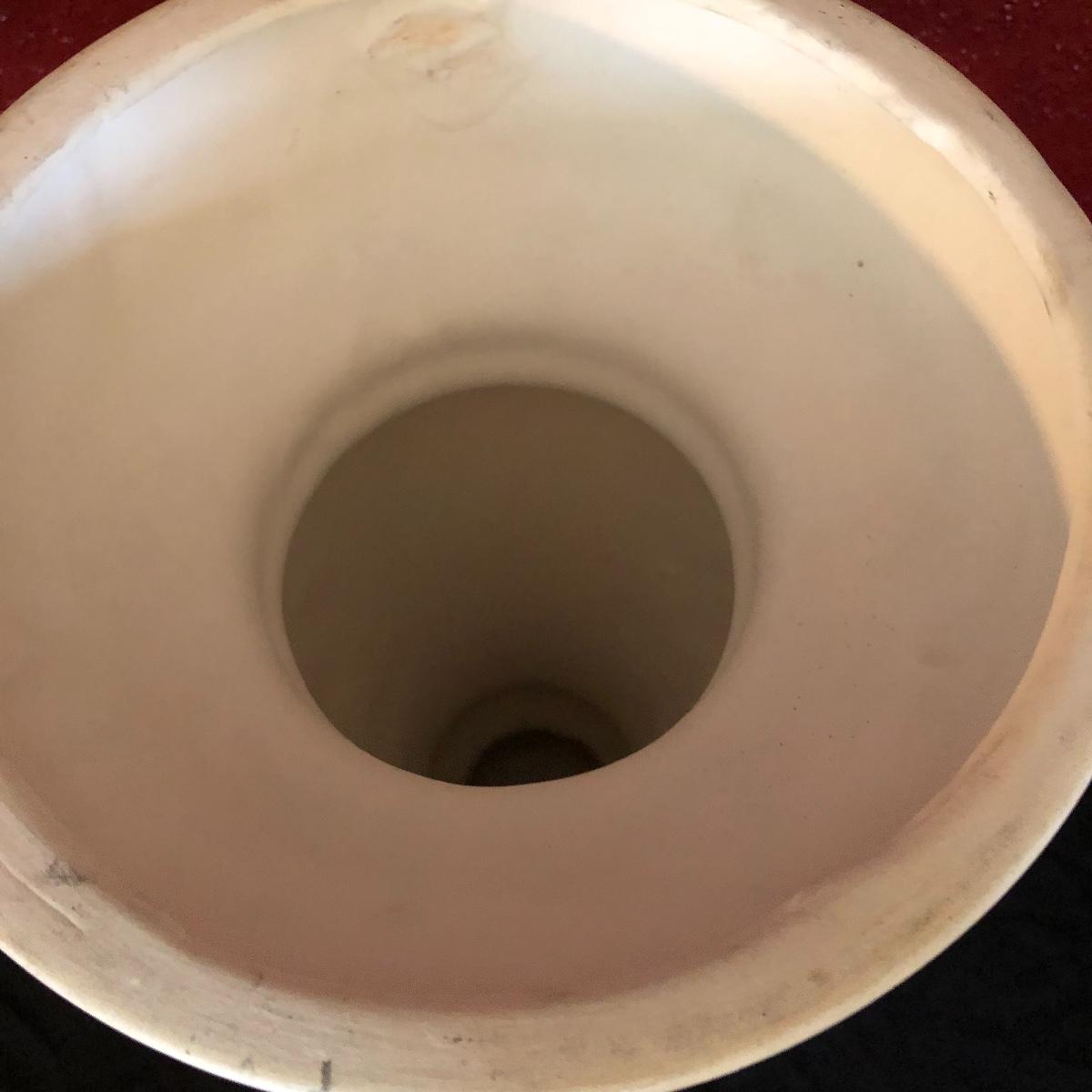 Lot includes pedestal urn, large vase, urn on base with cover and a large pot. All pieces have gold colored accents. Large pot has floral foam stuck inside. Tallest piece measures 6” x 6” x 19.75” tall.