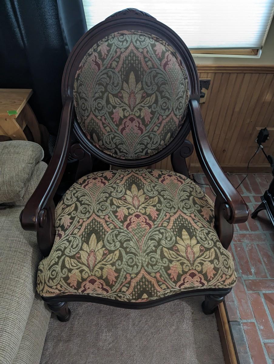 Decorative Chair. Item is located in basement of home and will need to be carried up a flight of stairs.