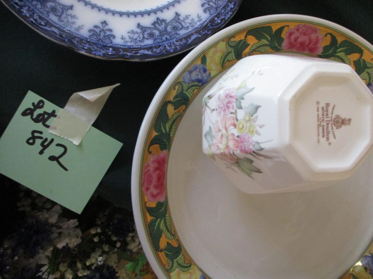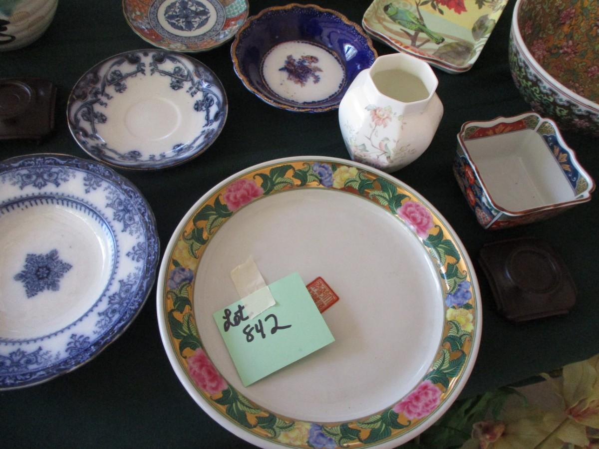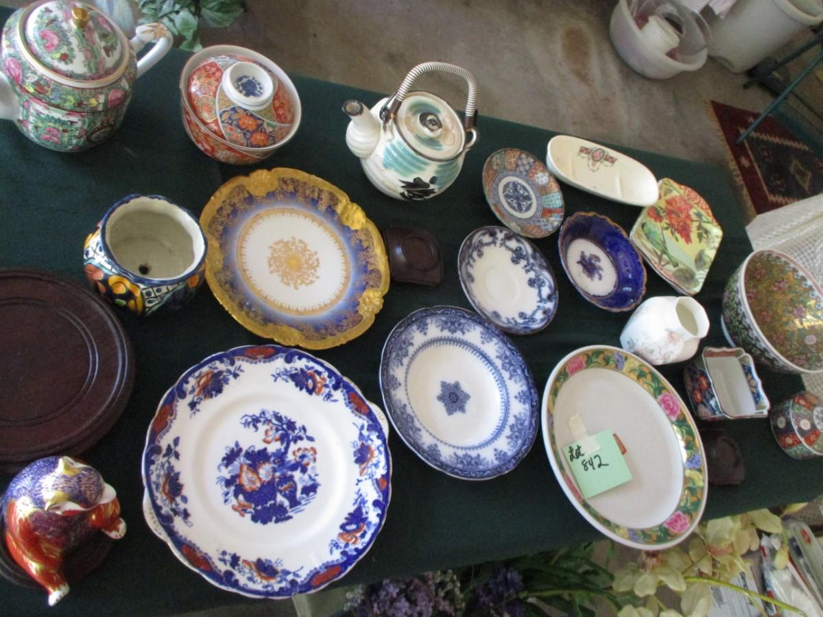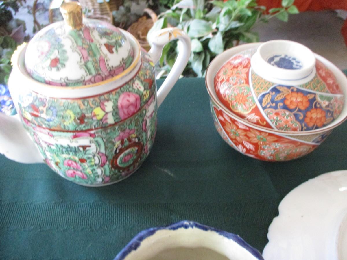 Plates/saucers, teapots, small royal doulton vase, enameled bowls