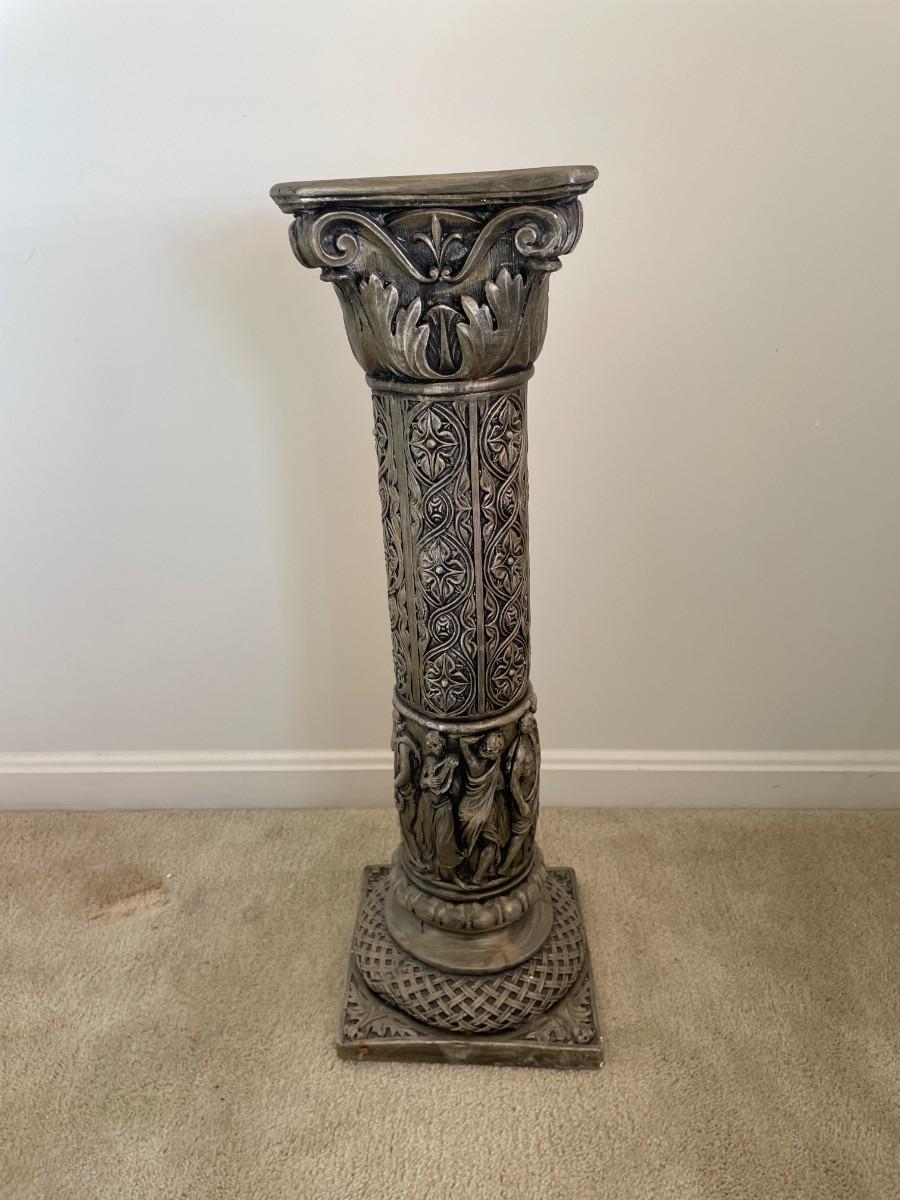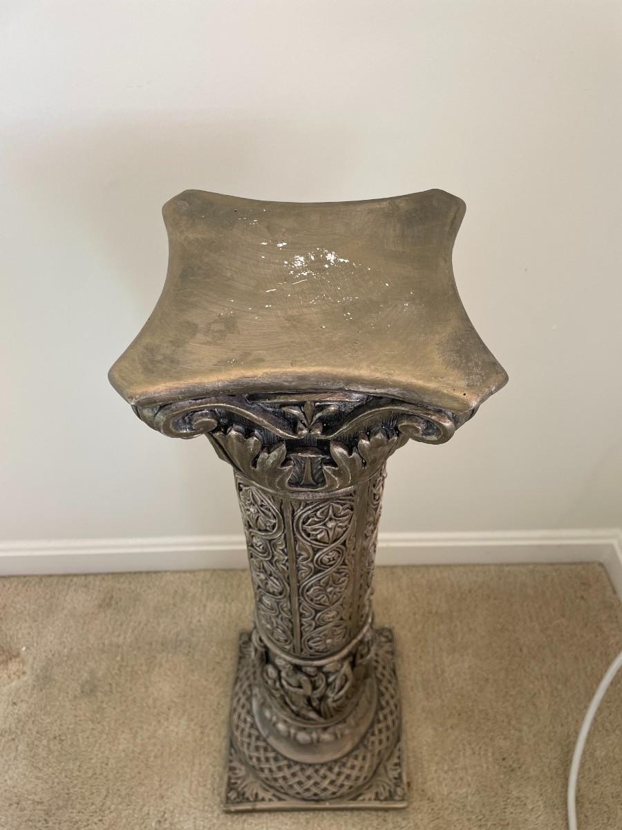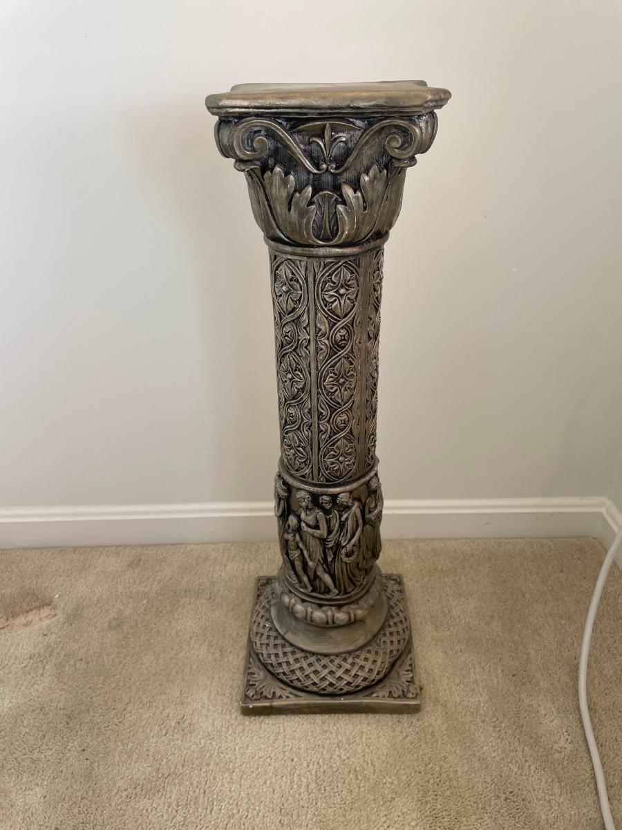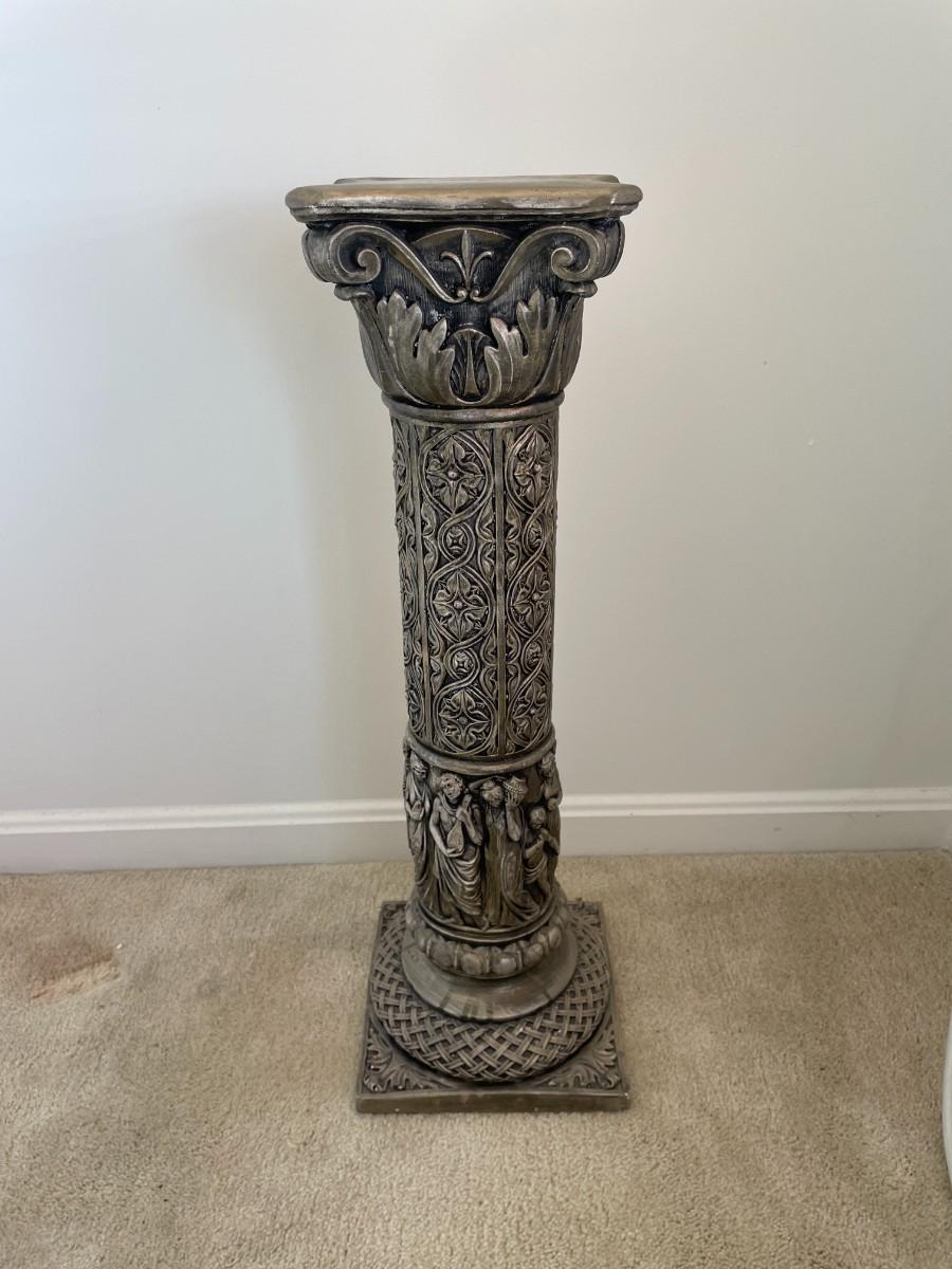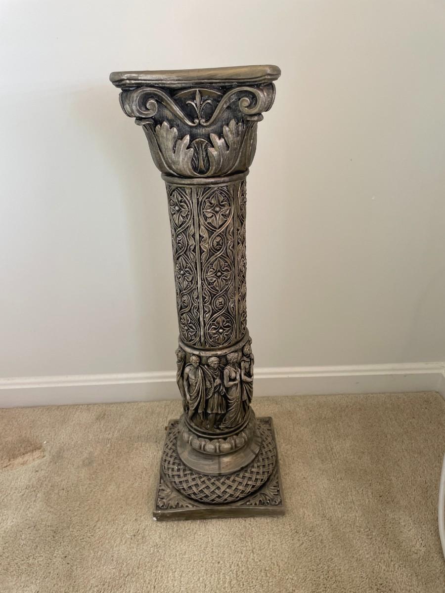 Beautiful metallic color with roman style carving. 28"H x 9"W x 9"D