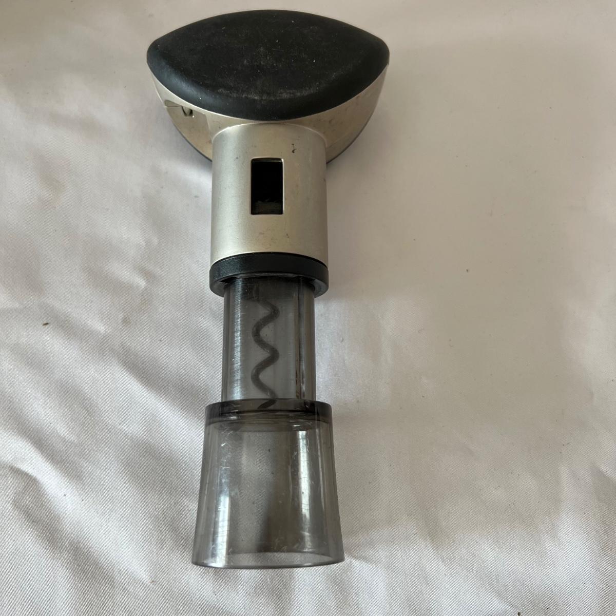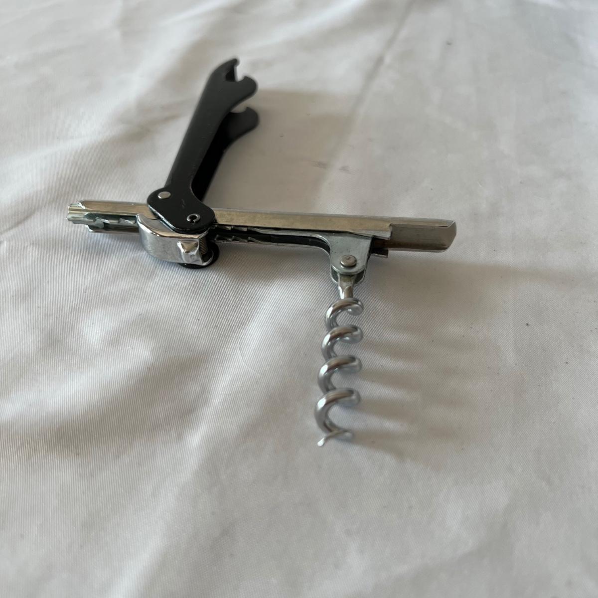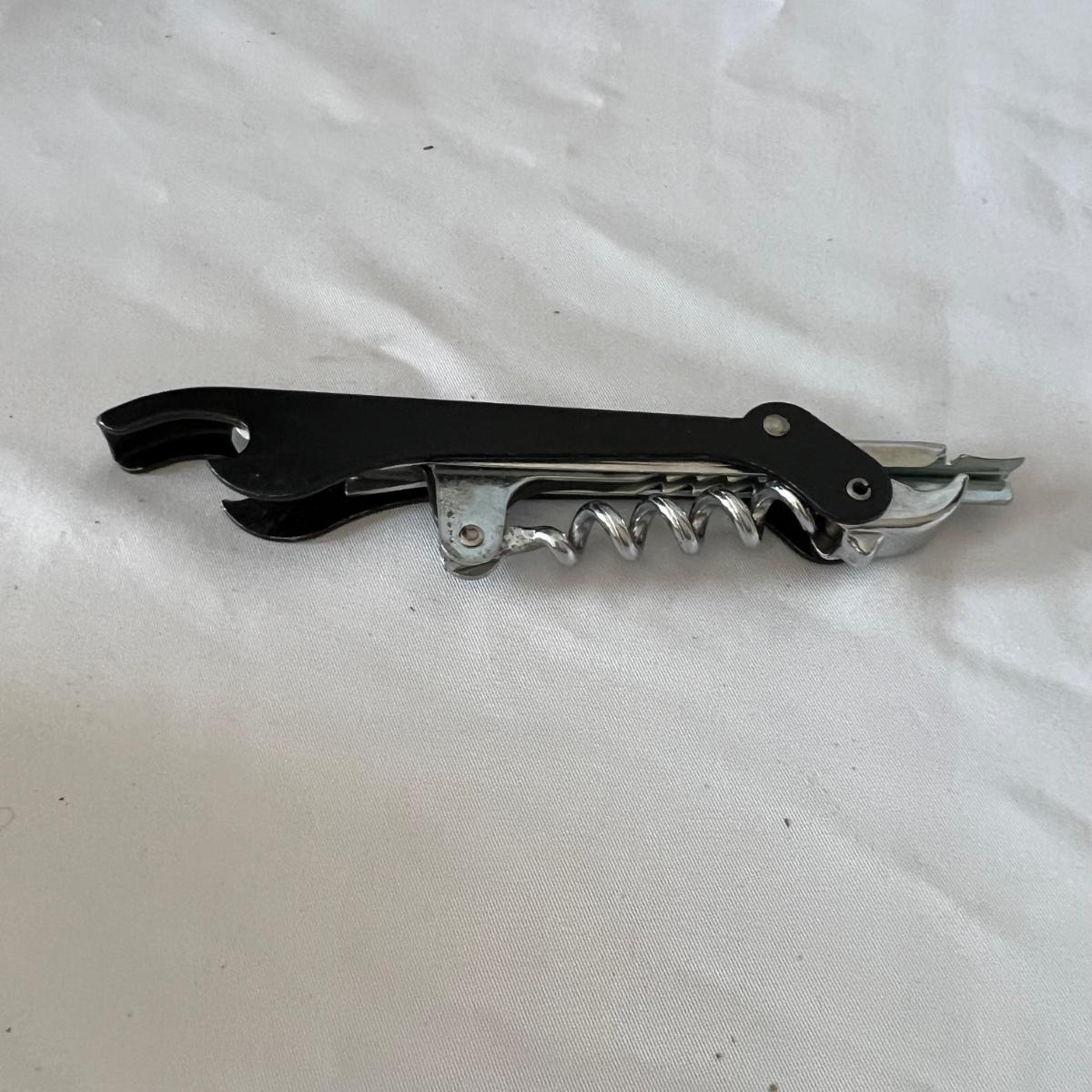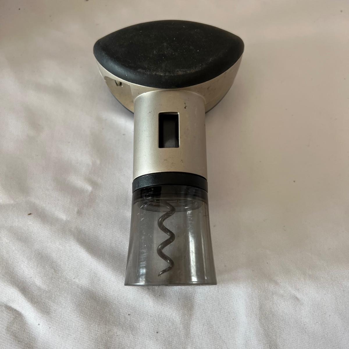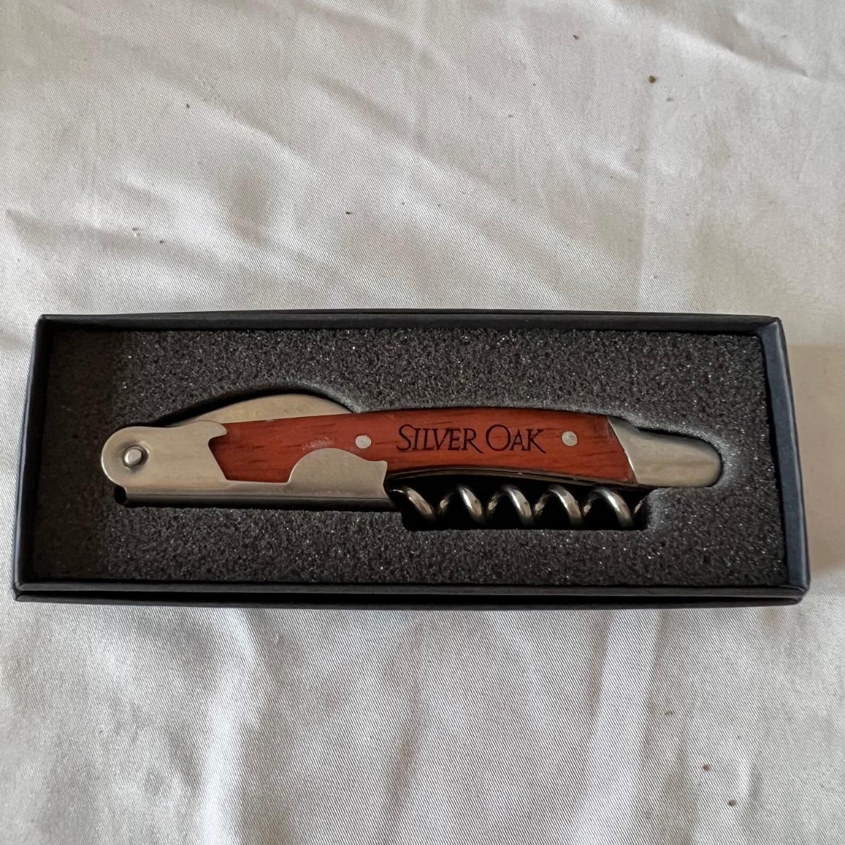 L’esprit & Le vin corkscrew in original box. Two pocket corkscrews, one wood and metal with “Silver Oak” and “Twomey” engraved measures 4.5” long and one plastic and metal Puigpull corkscrew measures 5.5” long. An Oxo wine opener with a built-in foil cutter and a plastic Vacu Vin wine saver. Also a metal filter/aerator and a Dewar's 12 wine stopper, that appears to be brass. An Orvis and Company bottle carrier made of forest green canvas and leather measures. 4.5” D x 13.5”H and is fleece lined. A black canvas Food and Wine bottle carrier with two separate zippered pockets for bottles measures 8” x 13” x 4”H. A delicate glass table-top wine decanter measures approximately 9” x 6.5” x 8”H. Several books on wine, The World’s Greatest Wine Estates, Hugh Johnson’s Pocket, Encyclopedia of Wine, The Wine Avenger, Food and Wine Wine Guide 2007, The Wines of burgundy, Simply Wine, and Wine Savvy.