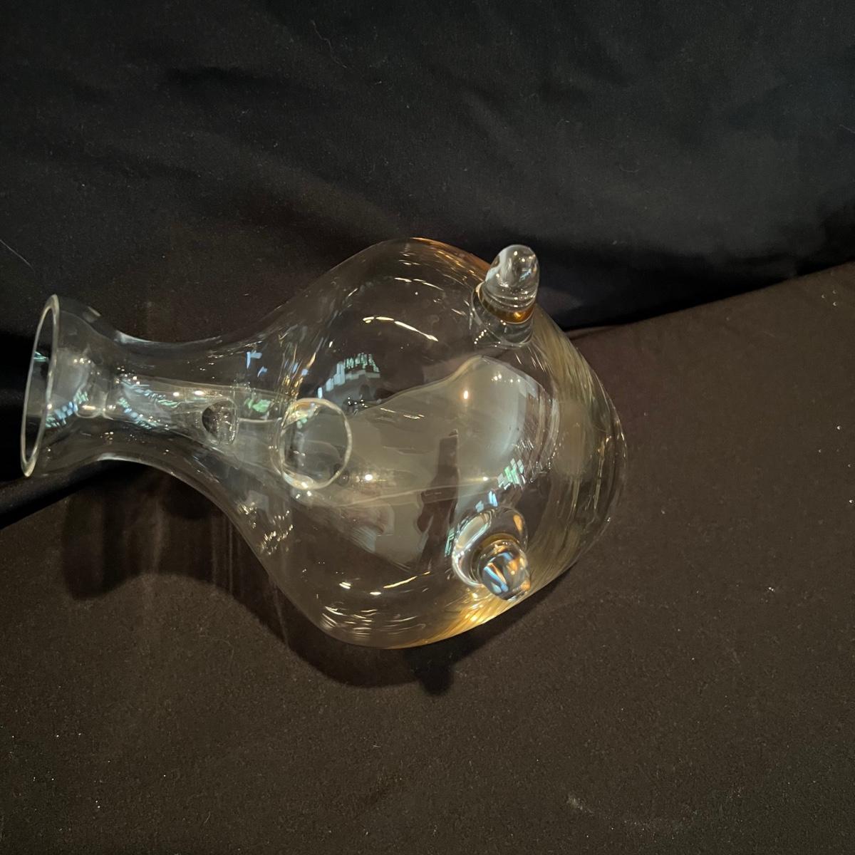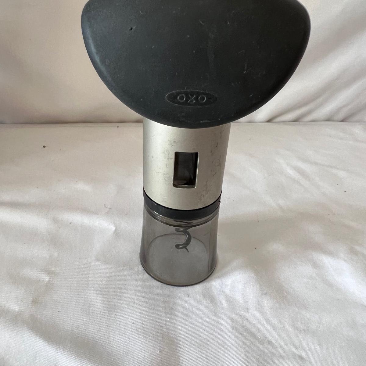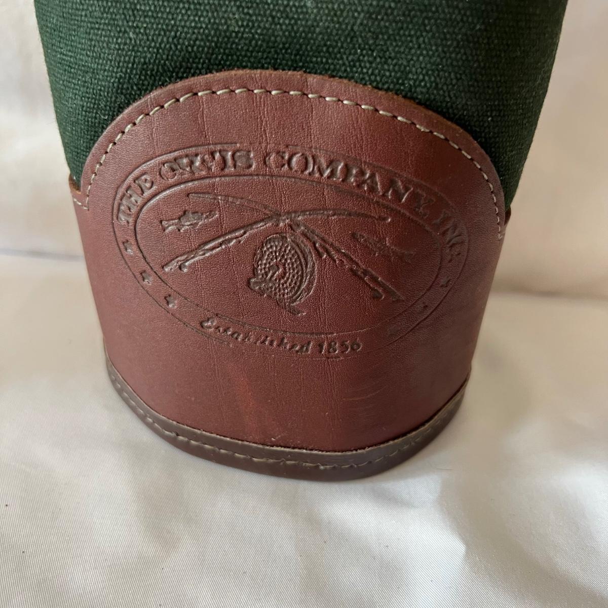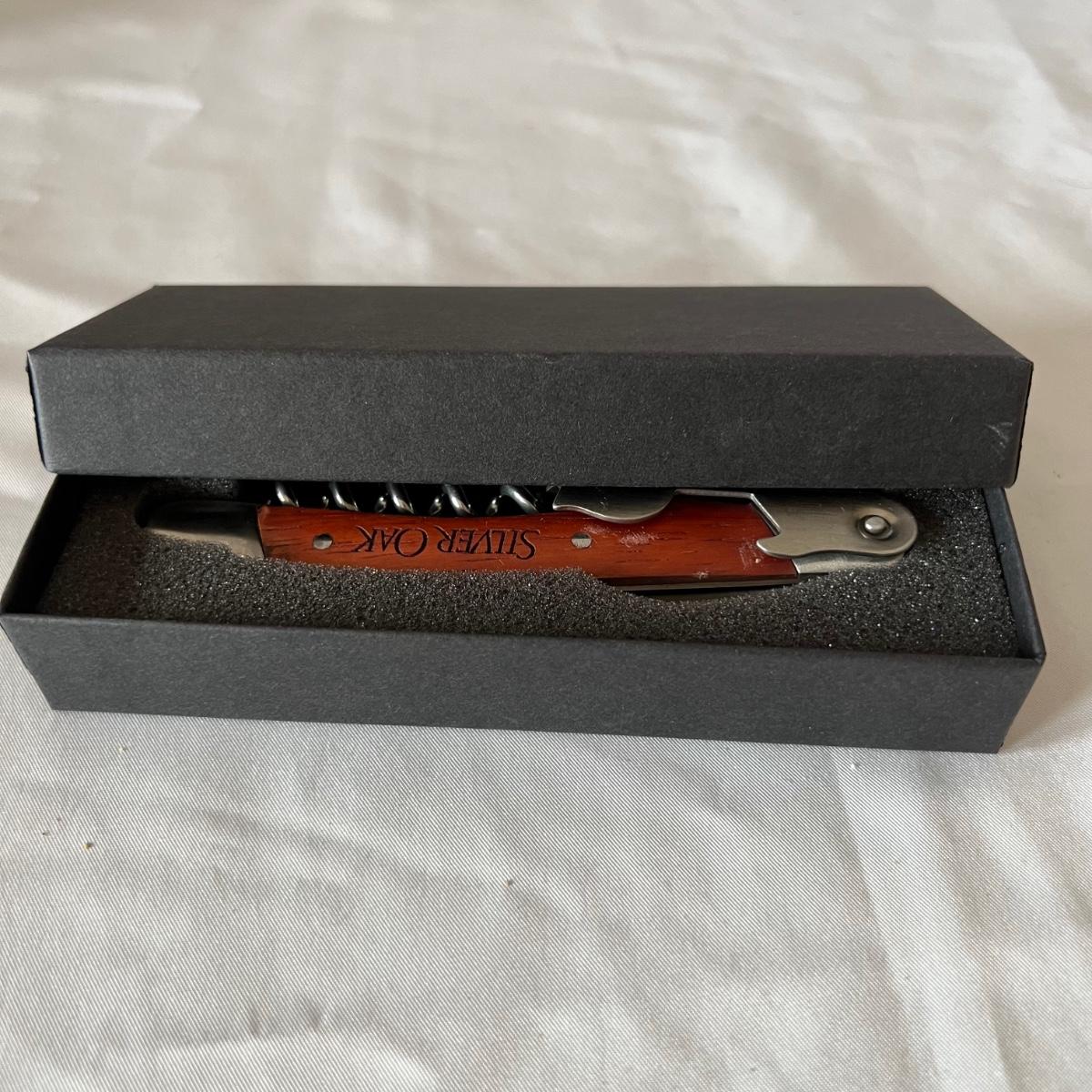 L’esprit & Le vin corkscrew in original box. Two pocket corkscrews, one wood and metal with “Silver Oak” and “Twomey” engraved measures 4.5” long and one plastic and metal Puigpull corkscrew measures 5.5” long. An Oxo wine opener with a built-in foil cutter and a plastic Vacu Vin wine saver. Also a metal filter/aerator and a Dewar's 12 wine stopper, that appears to be brass. An Orvis and Company bottle carrier made of forest green canvas and leather measures. 4.5” D x 13.5”H and is fleece lined. A black canvas Food and Wine bottle carrier with two separate zippered pockets for bottles measures 8” x 13” x 4”H. A delicate glass table-top wine decanter measures approximately 9” x 6.5” x 8”H. Several books on wine, The World’s Greatest Wine Estates, Hugh Johnson’s Pocket, Encyclopedia of Wine, The Wine Avenger, Food and Wine Wine Guide 2007, The Wines of burgundy, Simply Wine, and Wine Savvy.