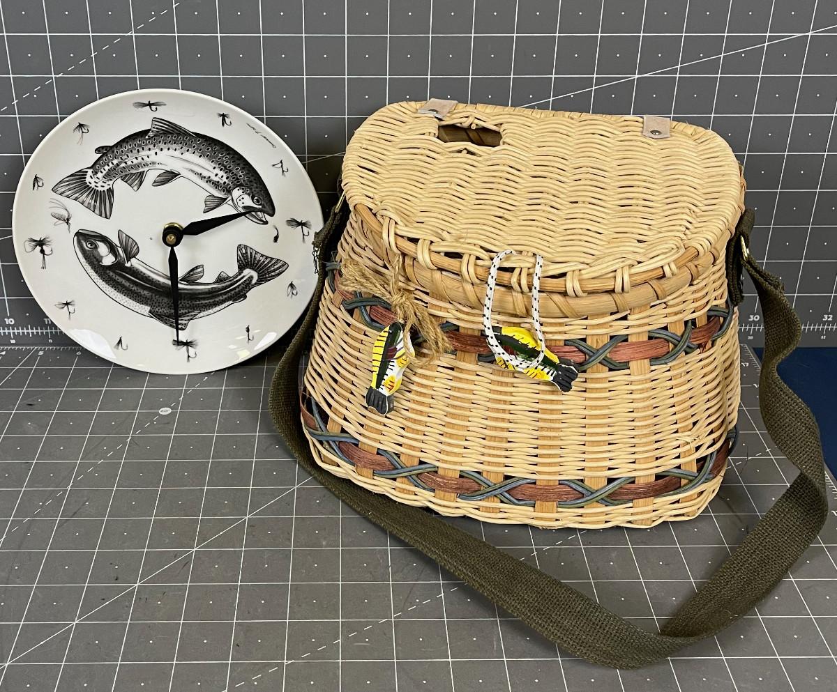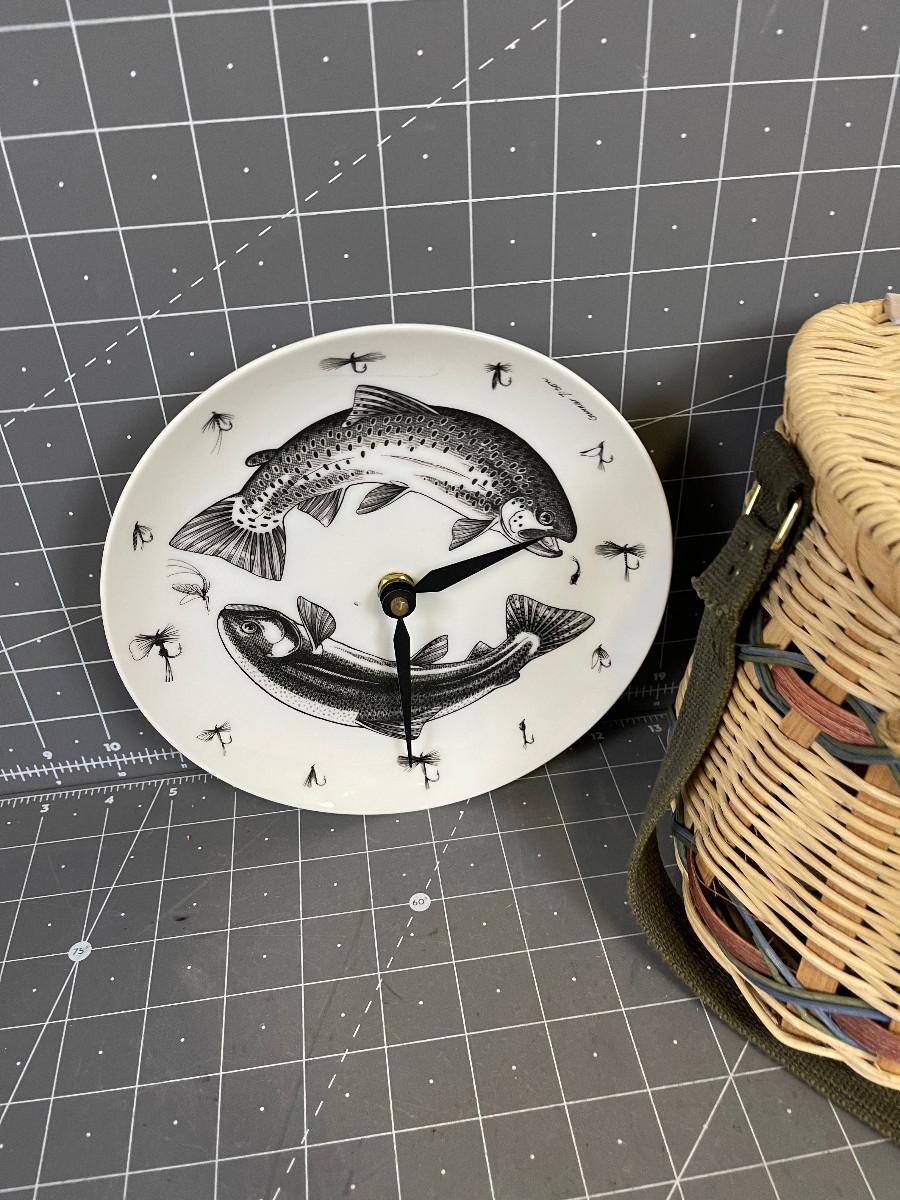 Decorative Creel and Fish Clock