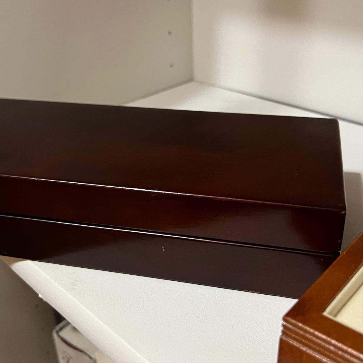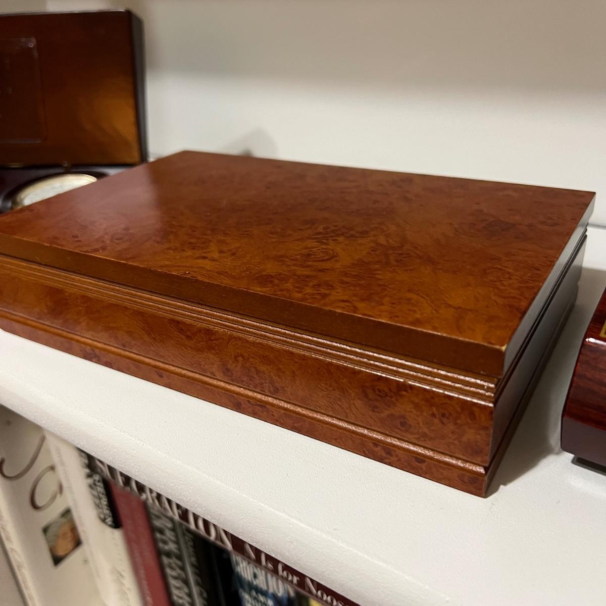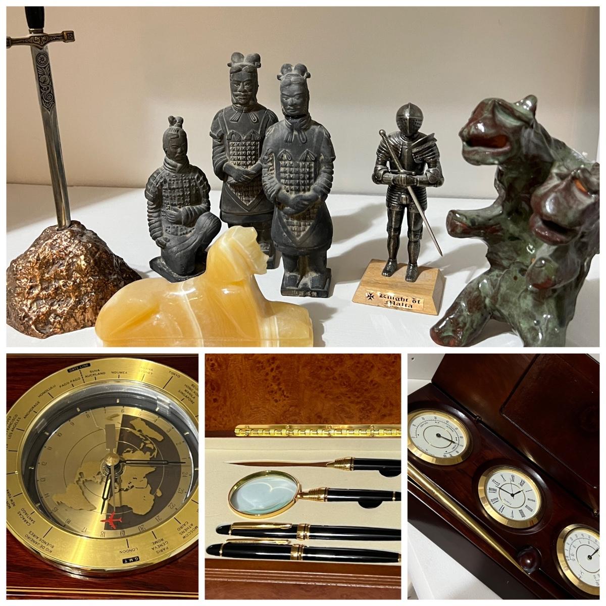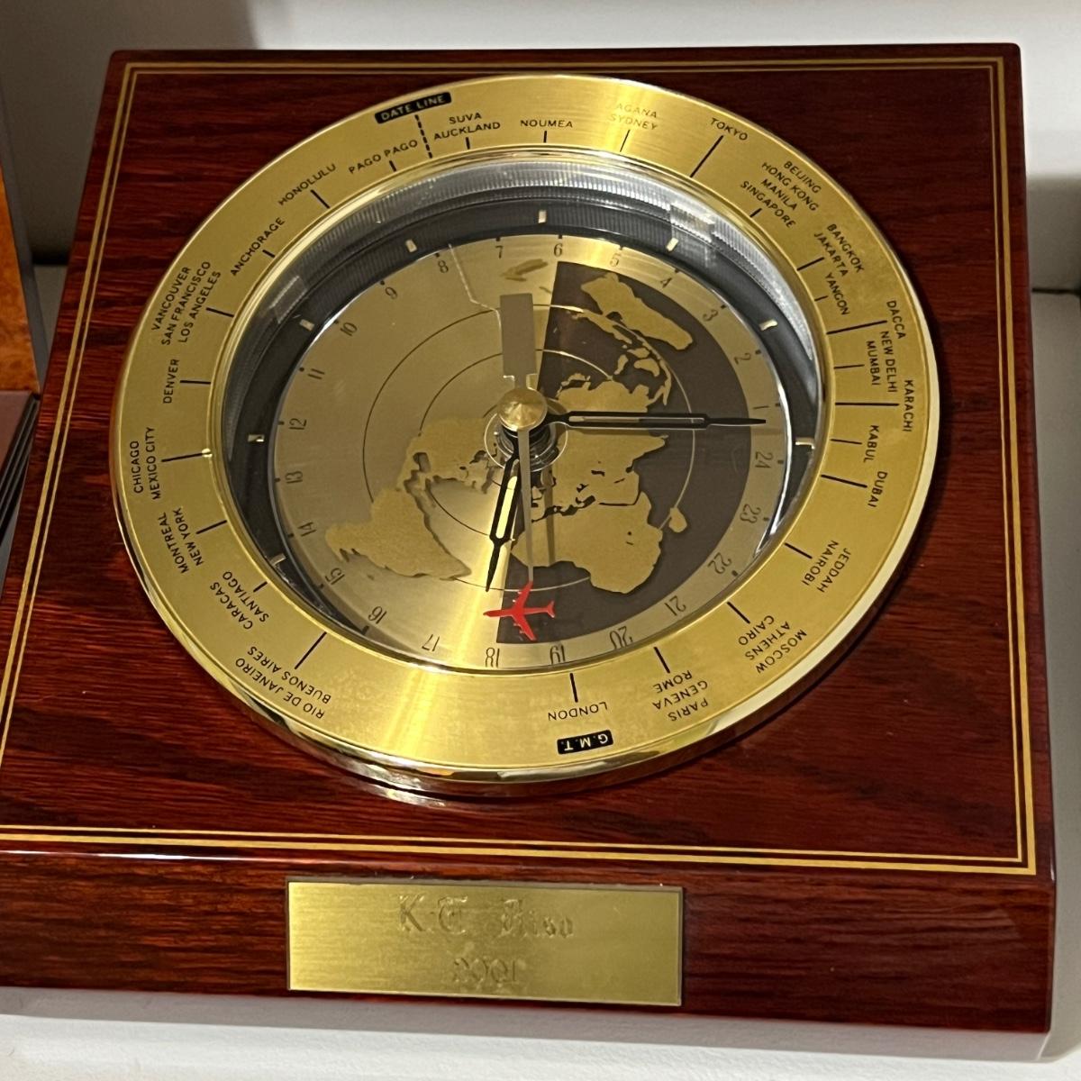 Laquered Wood Box with Pen, Clock and Barometer. Executive Brass Pen, Letter Opener and Magnifier Gift Set. SEIKO world airplane desk clock.