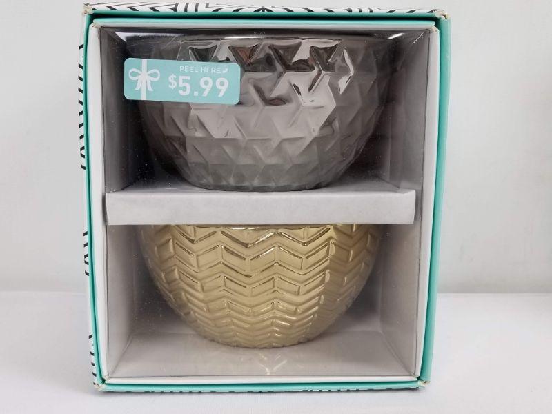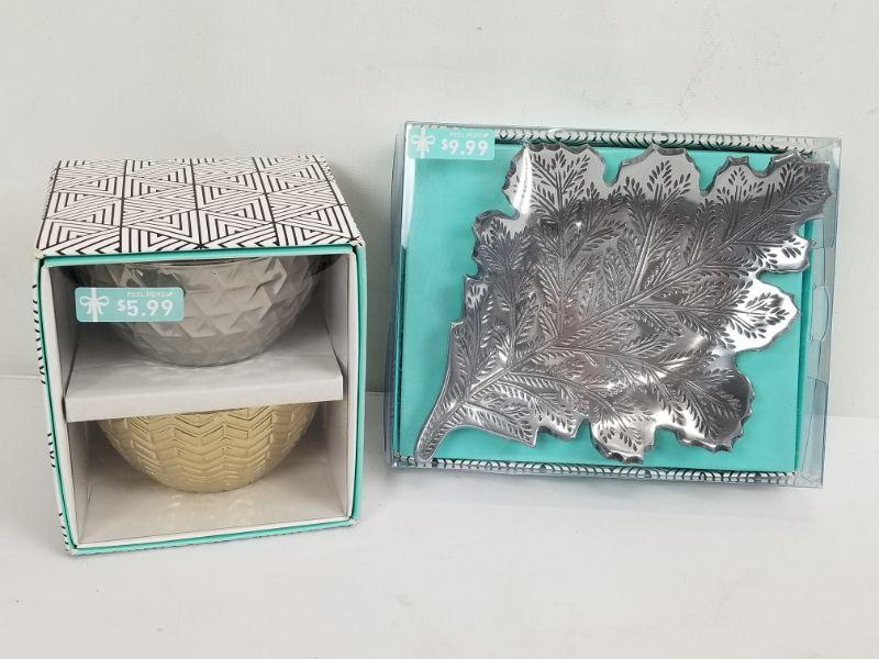 Decorative Dishes: 2 Set of Mini Bowls + Silver Leaf - New