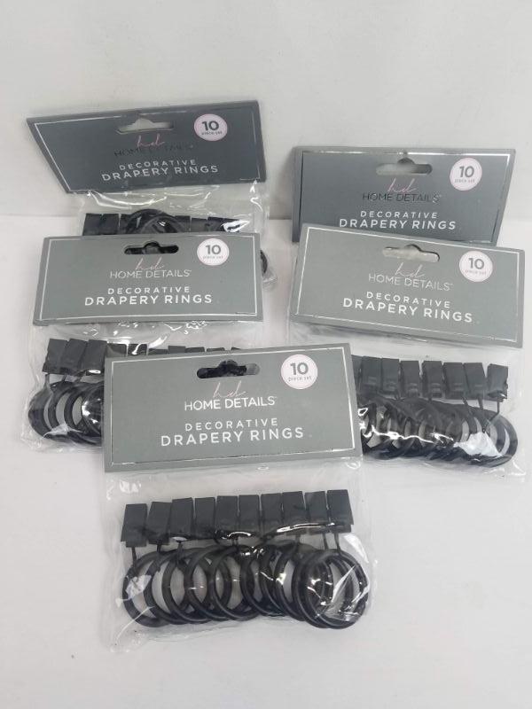 Decorative Drapery Rings, Qty 50. (5 packages of 10 each) - New