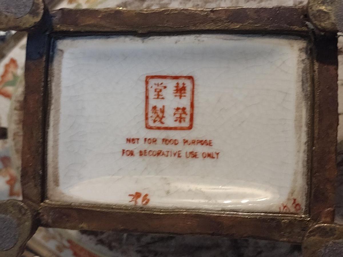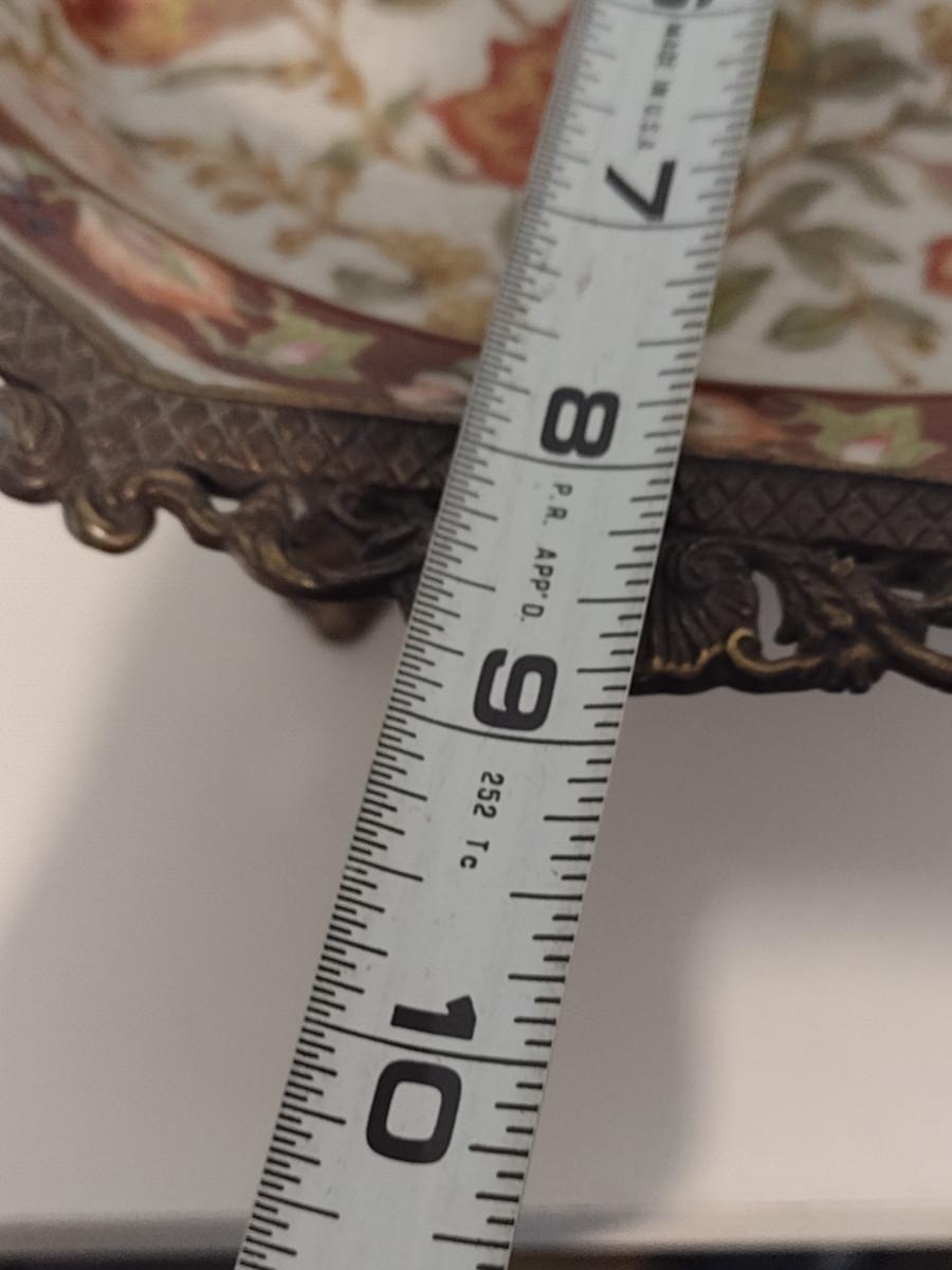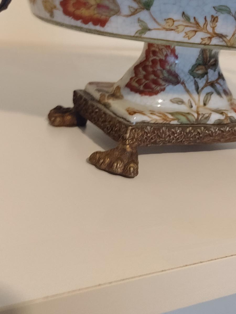 Decorative Enameled Pedestal Bowl with Metal Accents