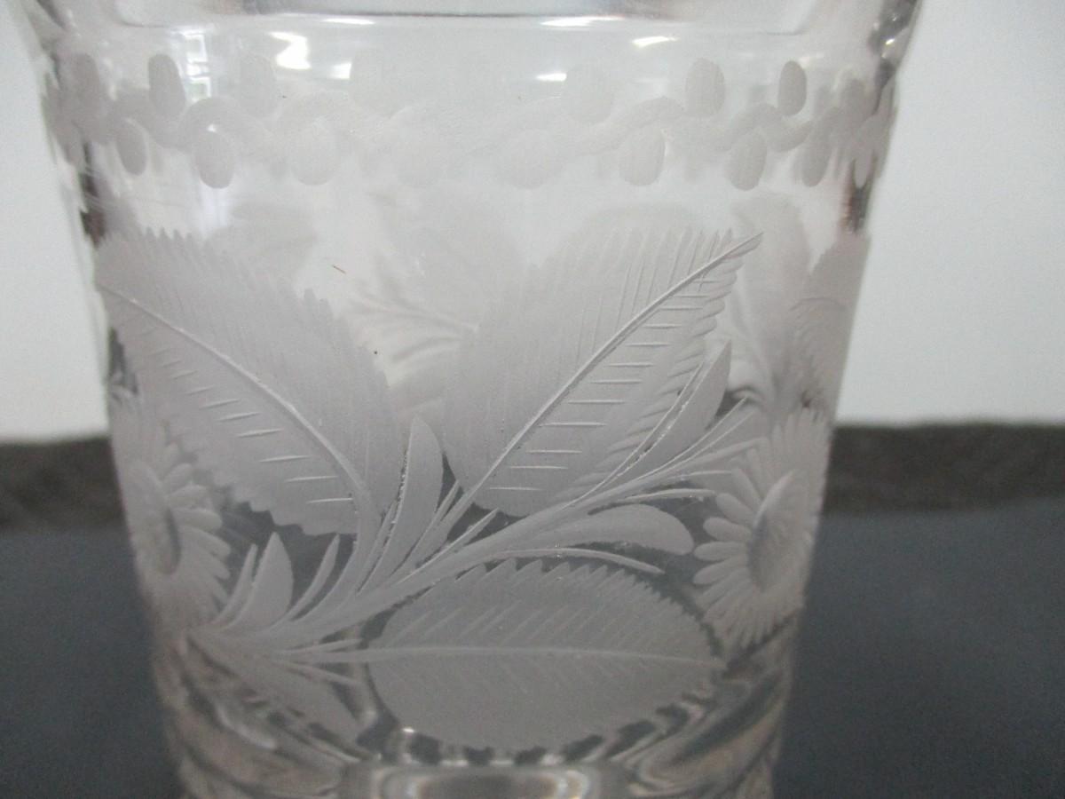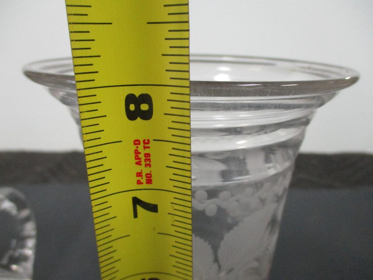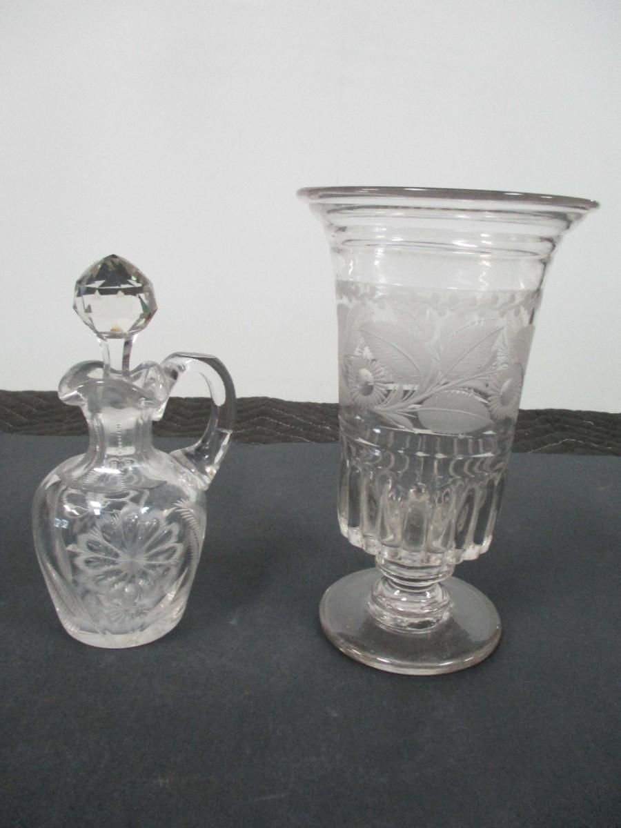 Decorative Etched Flower Vase & Glass Cruet- Vase 8" Tall