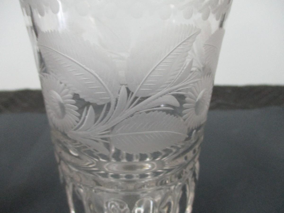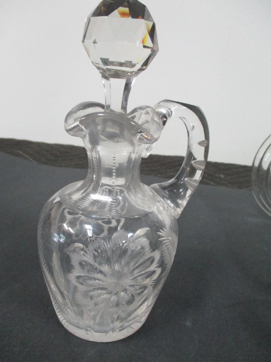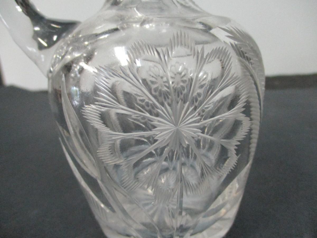 Decorative Etched Flower Vase & Glass Cruet- Vase 8" Tall