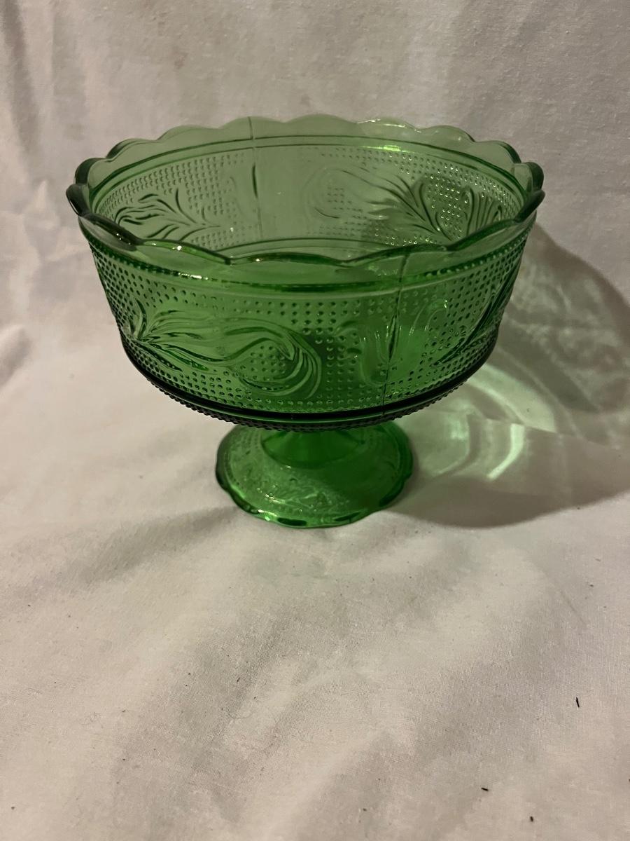 Brody Co, Green Glass Bowl w/ Carved Stone Fruit (BS-MK)