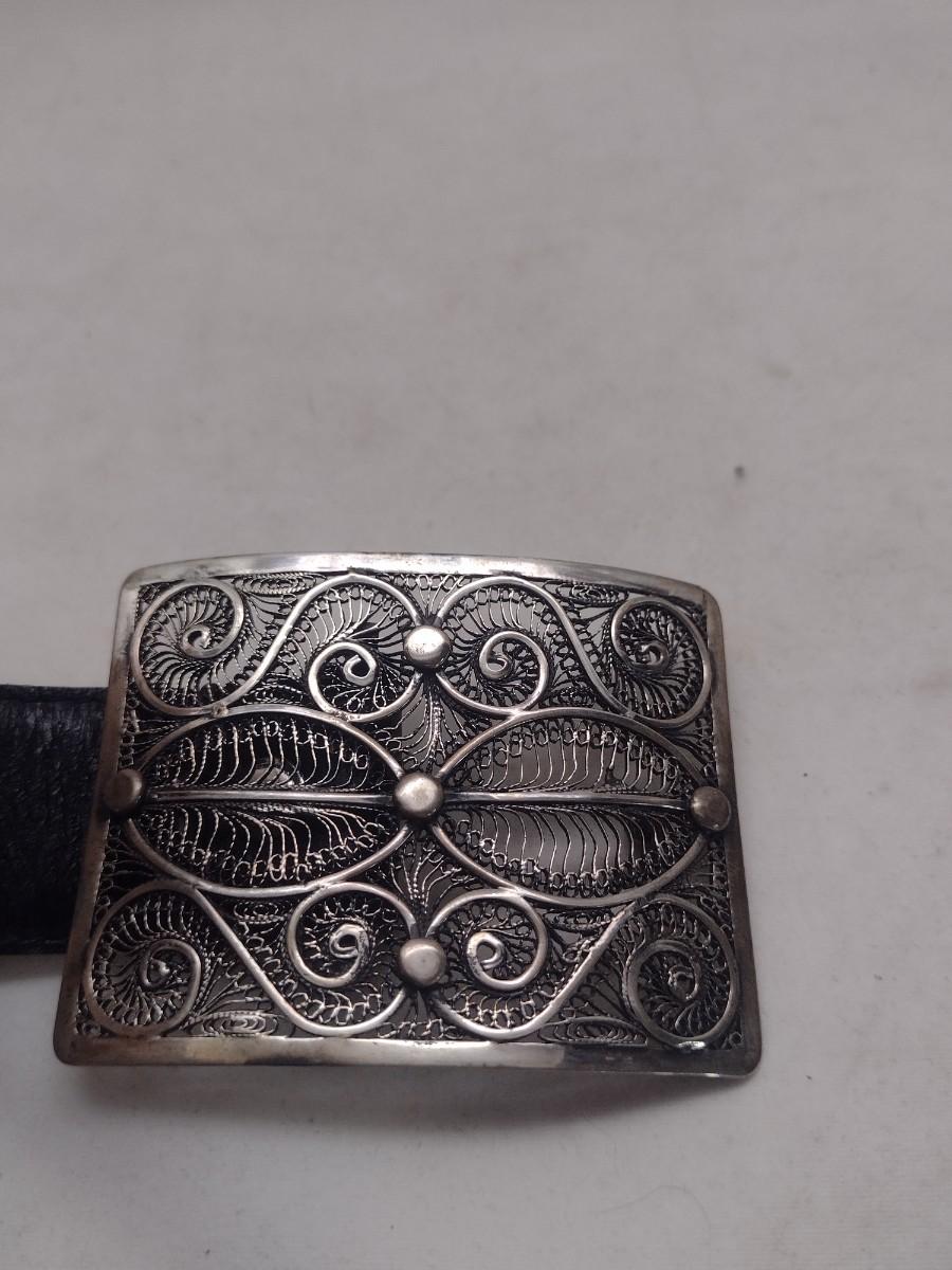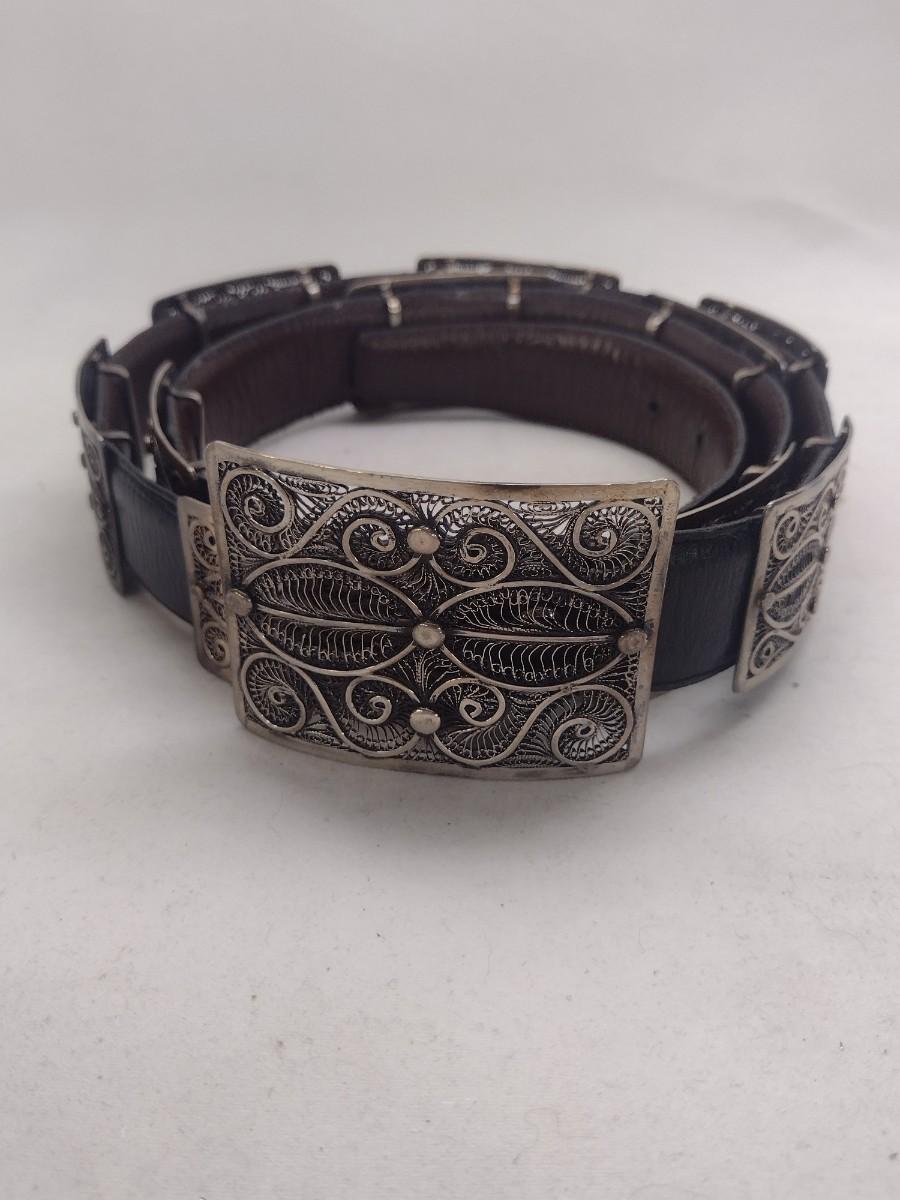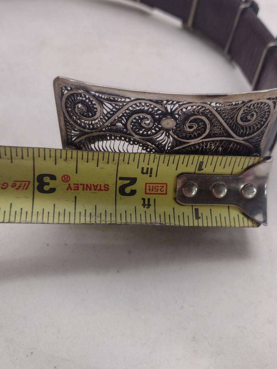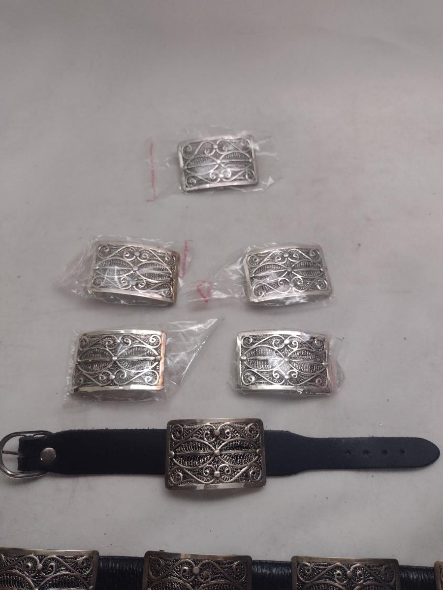 Decorative Filigree Metal Slides for Belt (#38). Can also be used on bracelet, as shown. Set includes 16 slides and 1 matching pendant for a necklace.