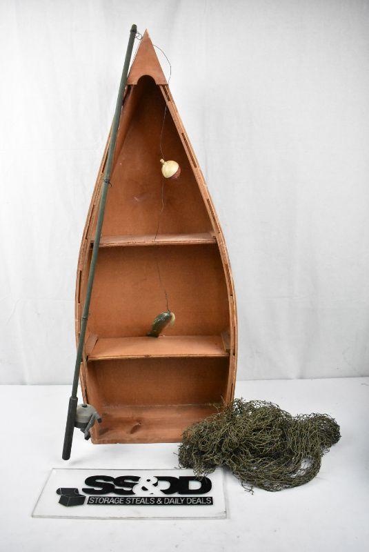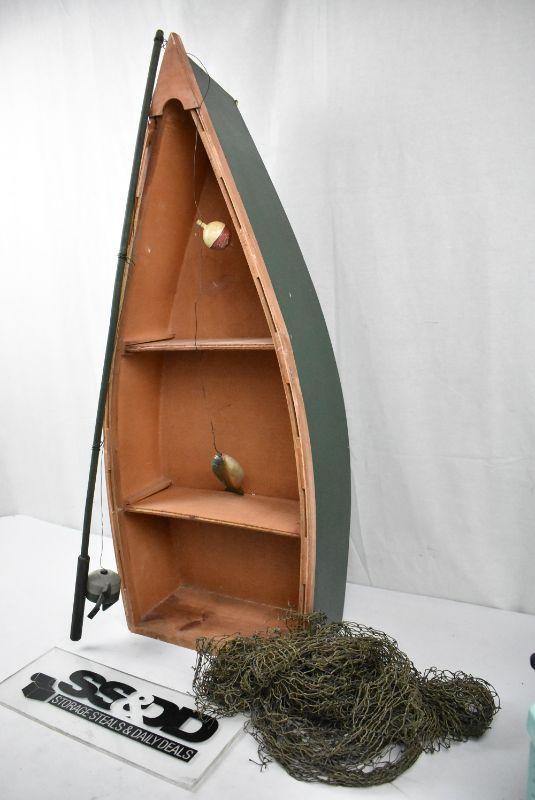 Decorative Fishing Boat Theme Shelf with Accessories (Net, Fishing Pole)