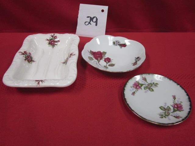 (2)Decorative Floral Dishes & Decorative Floral Soap DIsh, 3 pcs