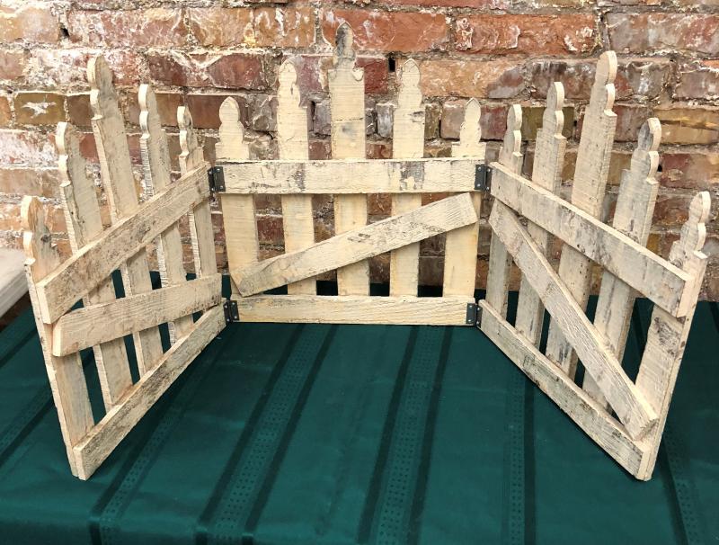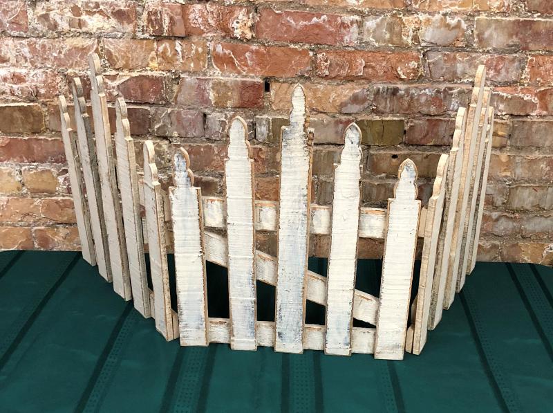 Indoor or patio use I would suggest on this decorative folding three-part fence...15" panels..18" high...Nice condition...