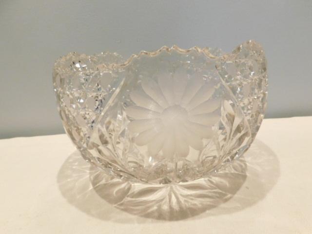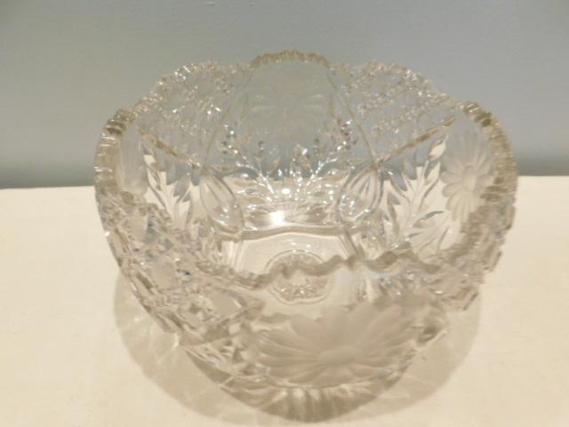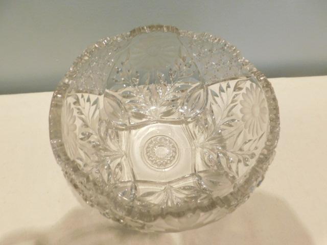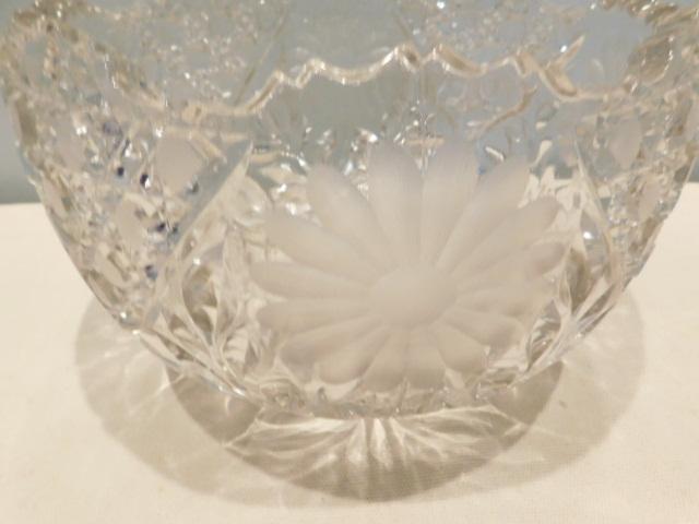Decorative Etched, Daisy Pattern Crystal Bowl: 10" Across, 6 1/4" High