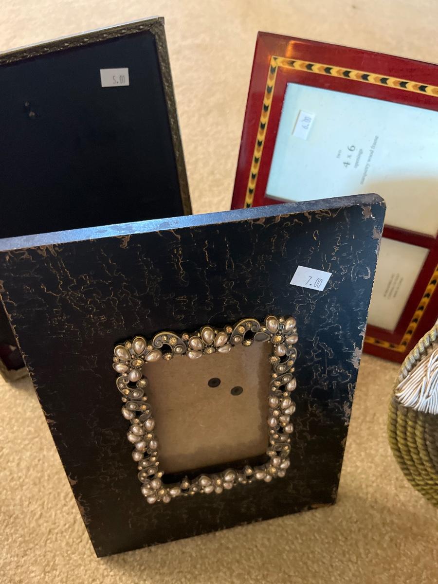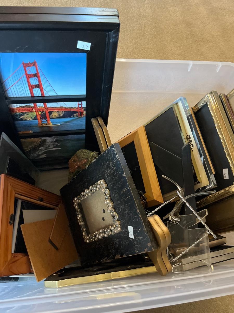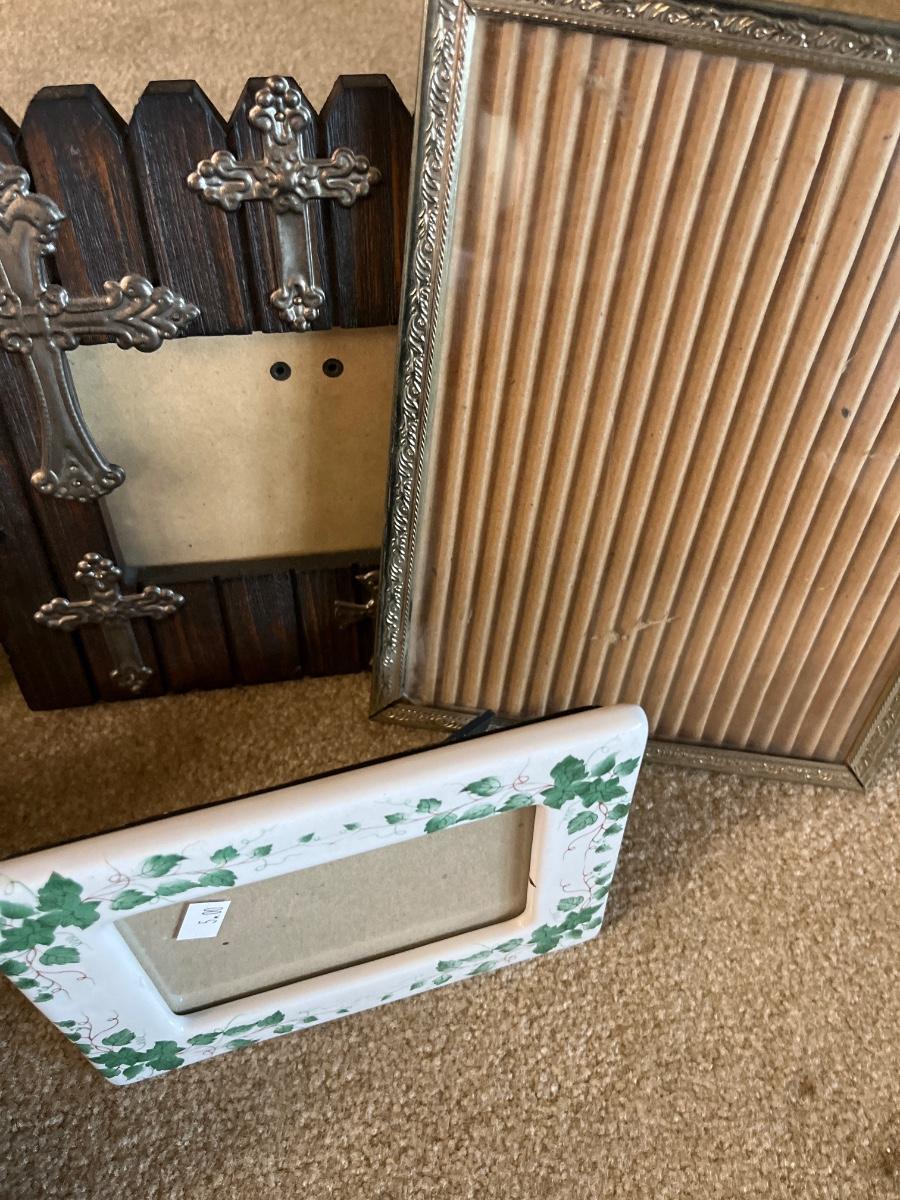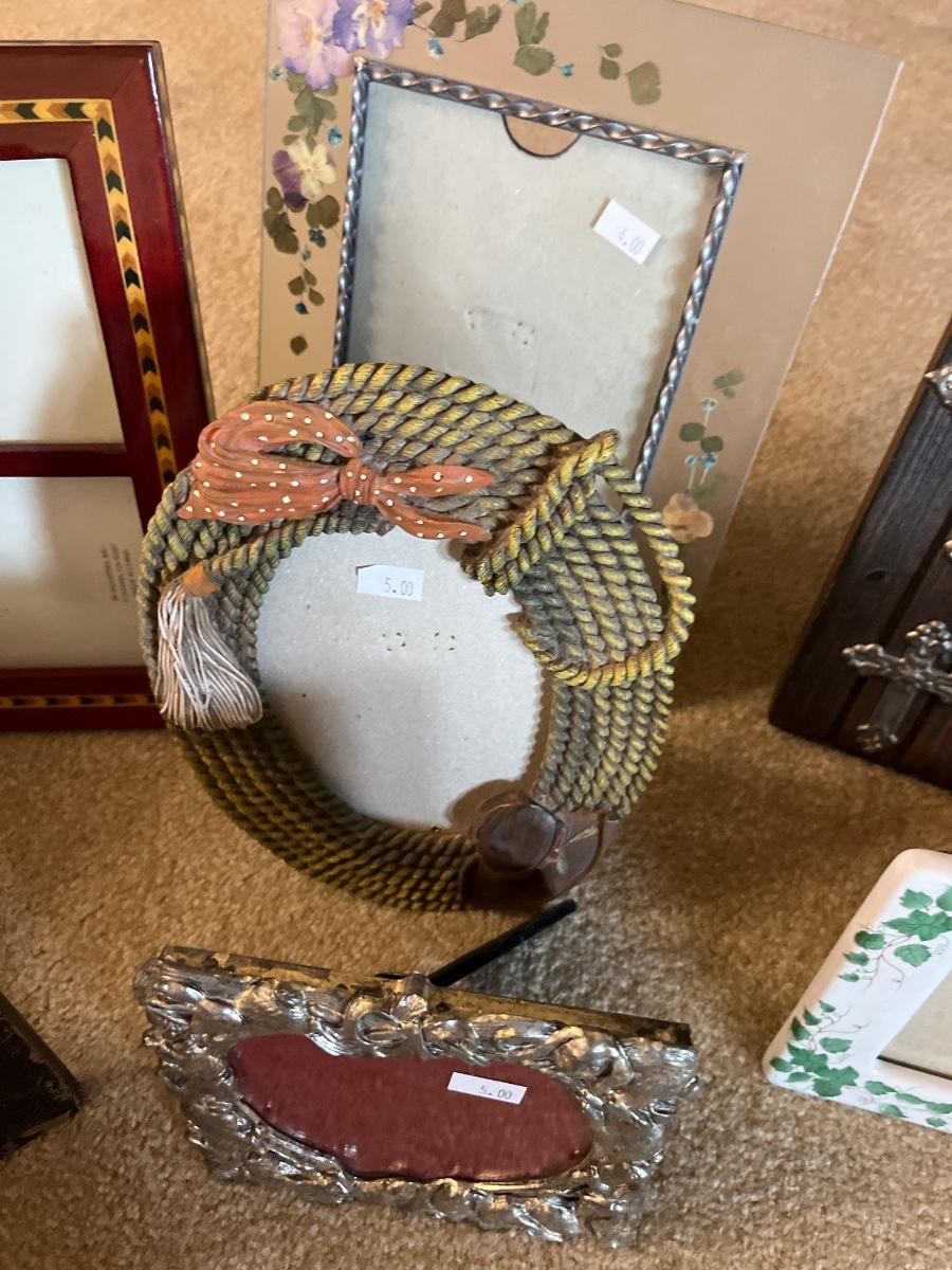 Frames of different sizes, brass, vintage and rustic frames.