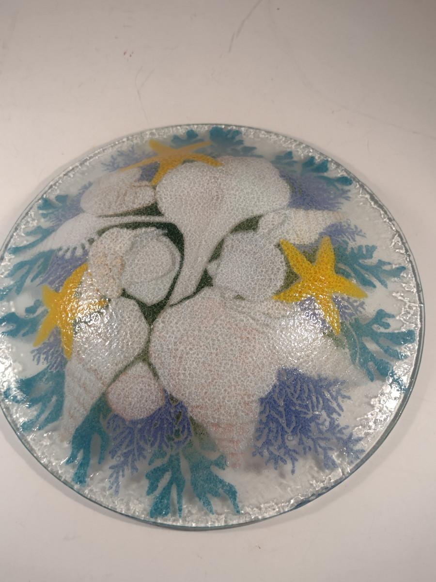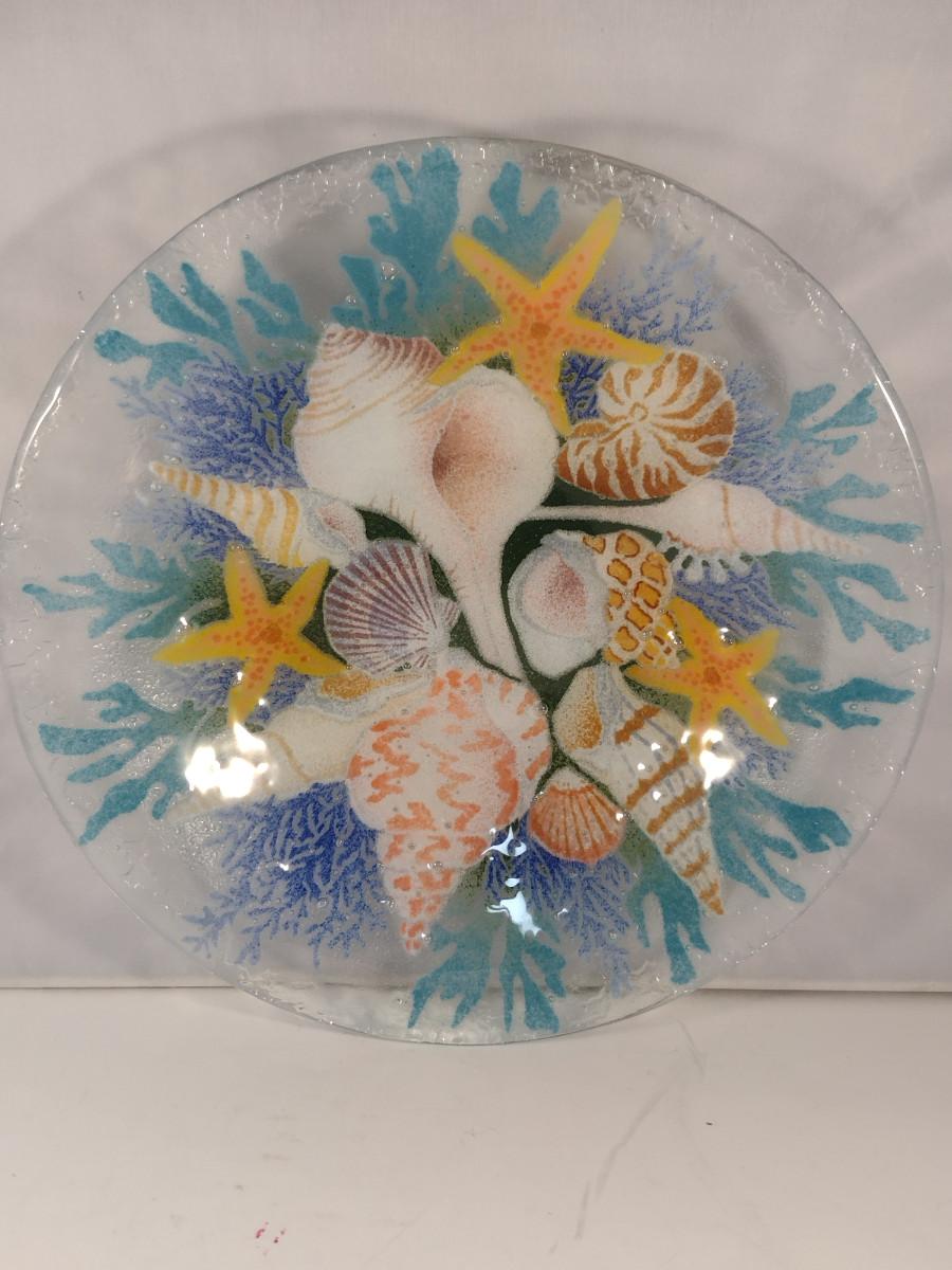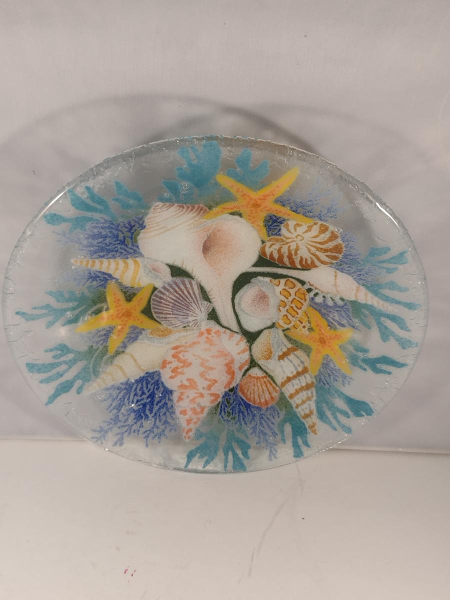 Decorative Fused Glass Plate- Shell Pattern- Approx 10 3/4" in Diameter