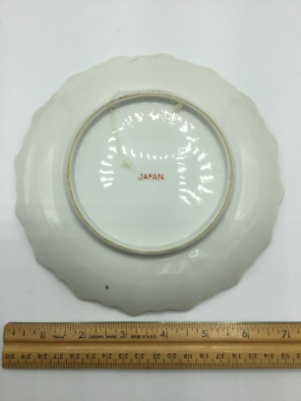 Plate measures 7 1/8” in diameter. The plate has a plastic beaded hook on the underside for hanging on a wall. Rear of plate is marked “Japan“.