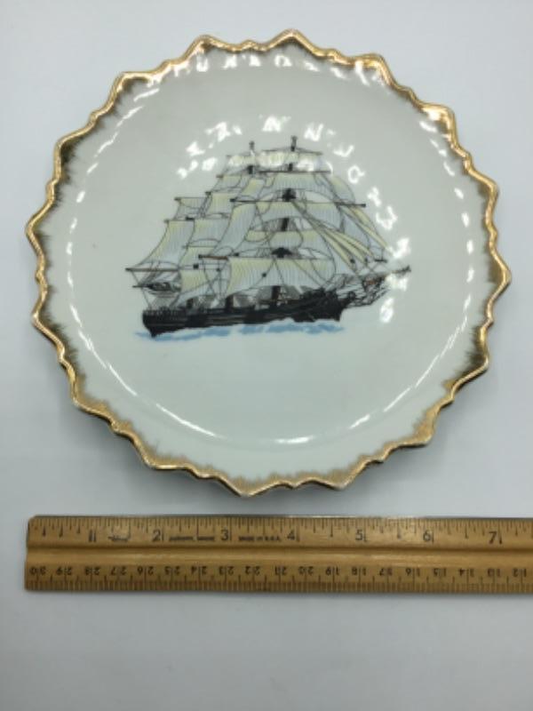 Decorative Galleon Ship Gold-rimmed Plate