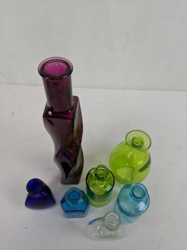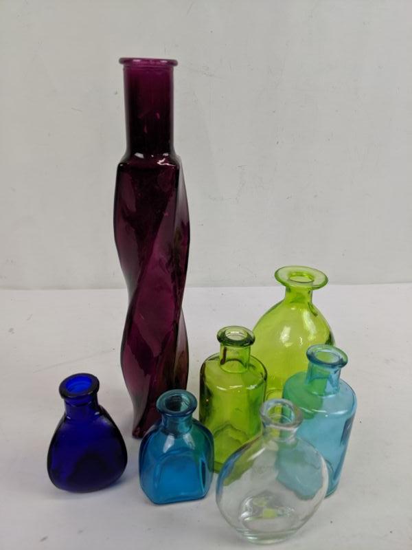 Decorative Glass Bottles: Green, Blue, Clear, Purple