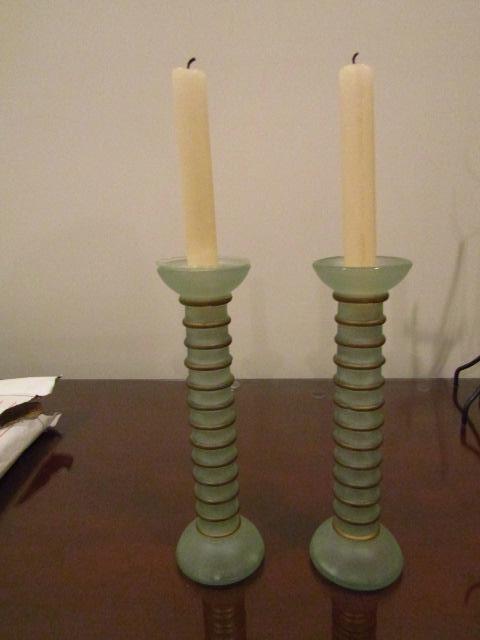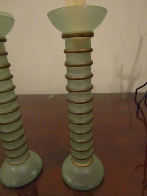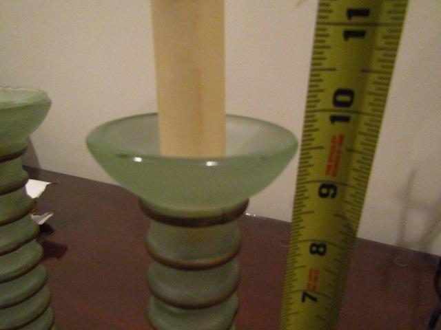 Decorative Glass Candle Stick Holder Pair- Approx 9 1/2" Tall