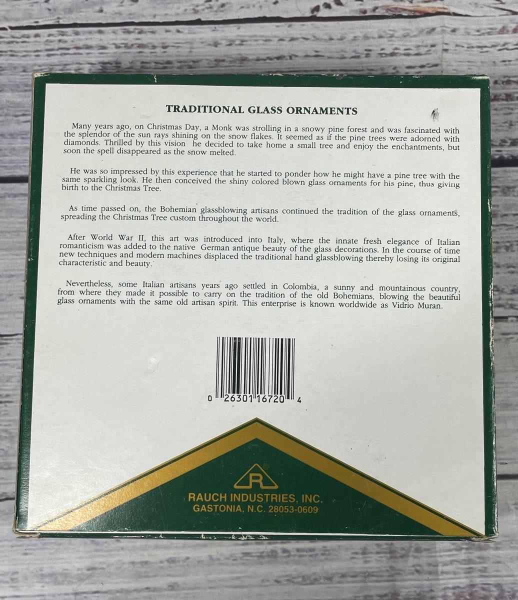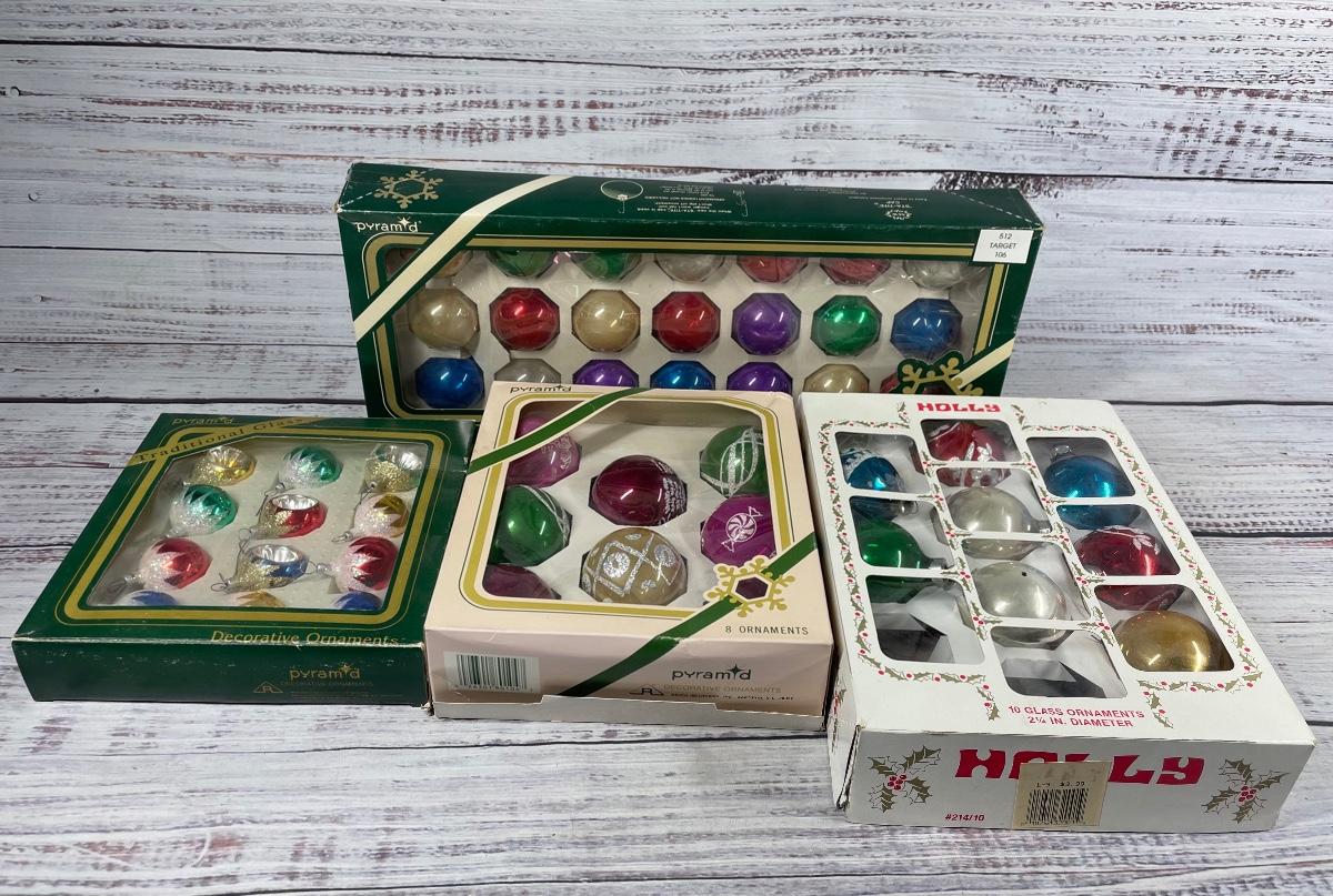 All items are in good condition. There is only two ornaments missing out of the Holly Glass Ornaments case. This set comes with four boxes with different ornaments inside.