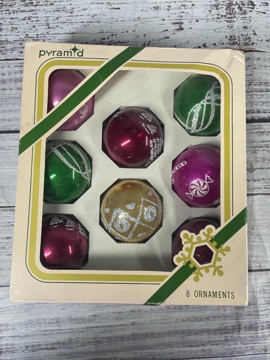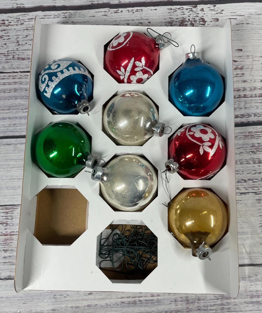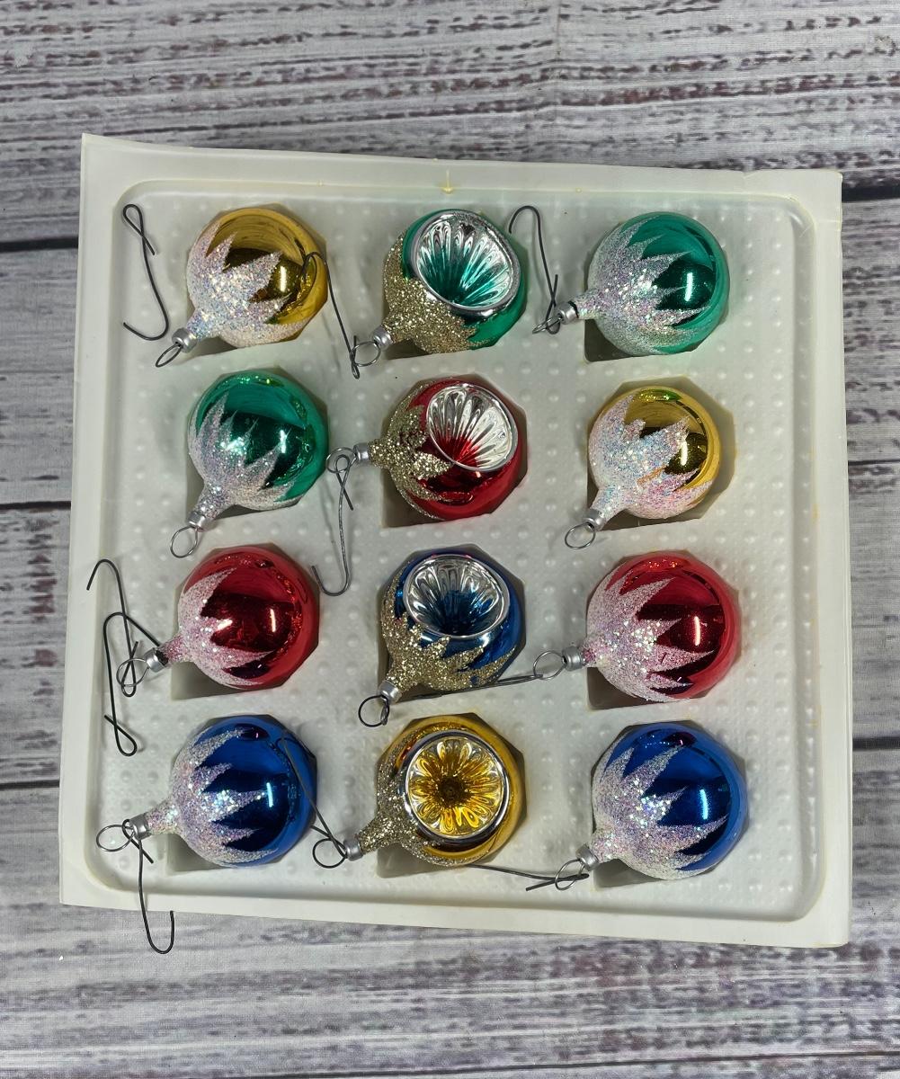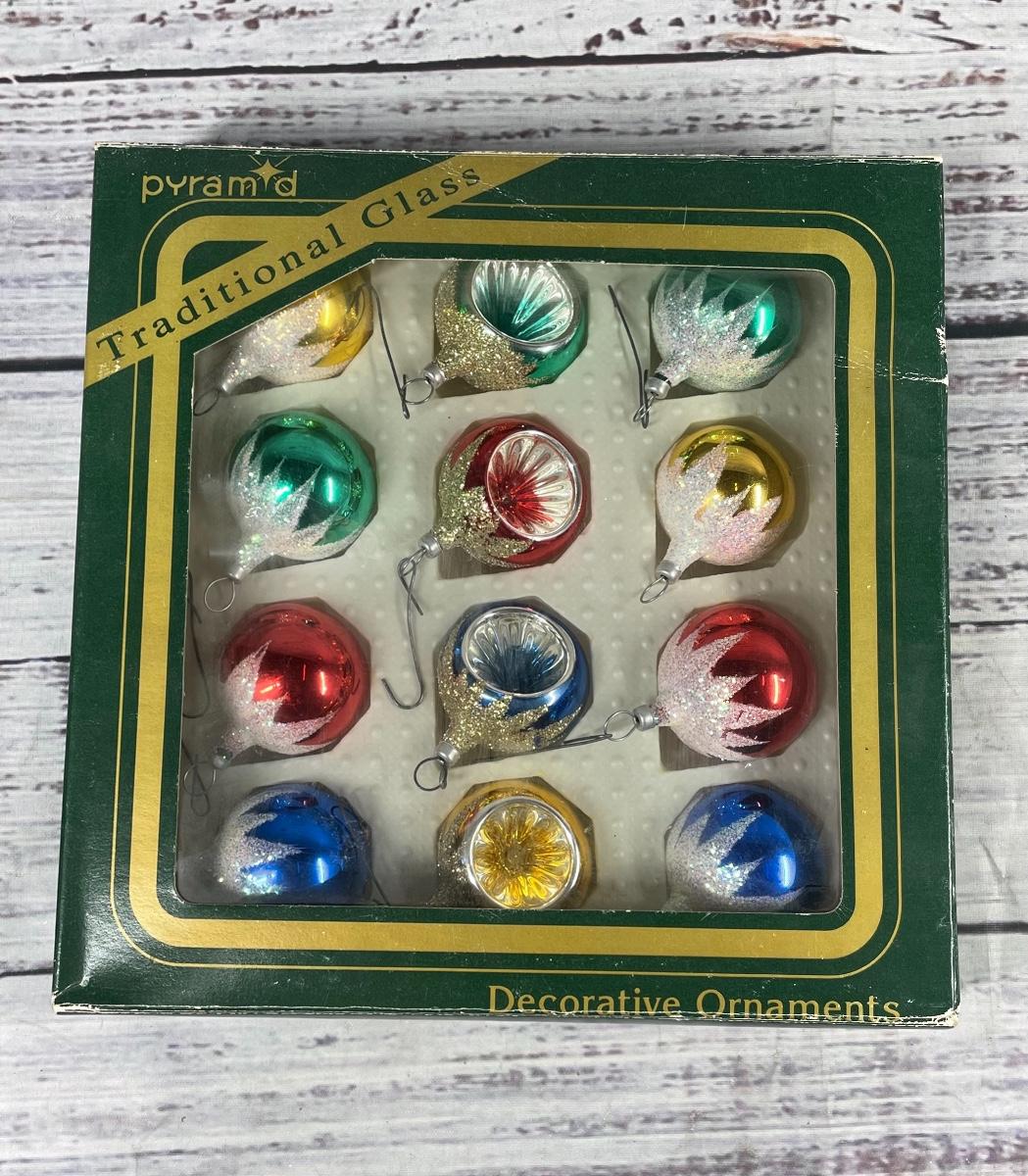 Vintage Decorative Glass Christmas Tree Holiday Ornament Set Lot