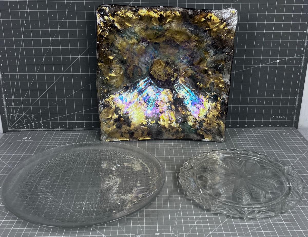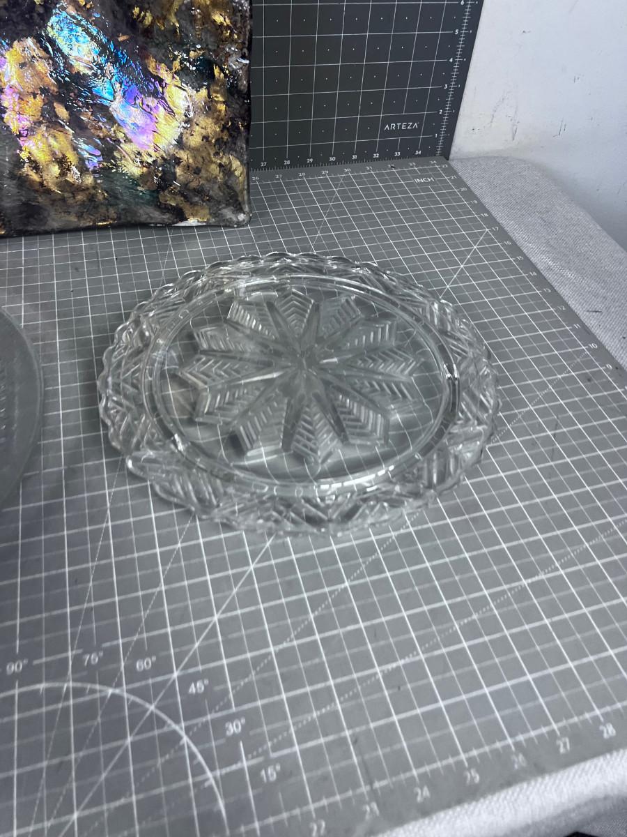 Decorative Glass Square Bowl and 2 Clear Glass Serving Platters