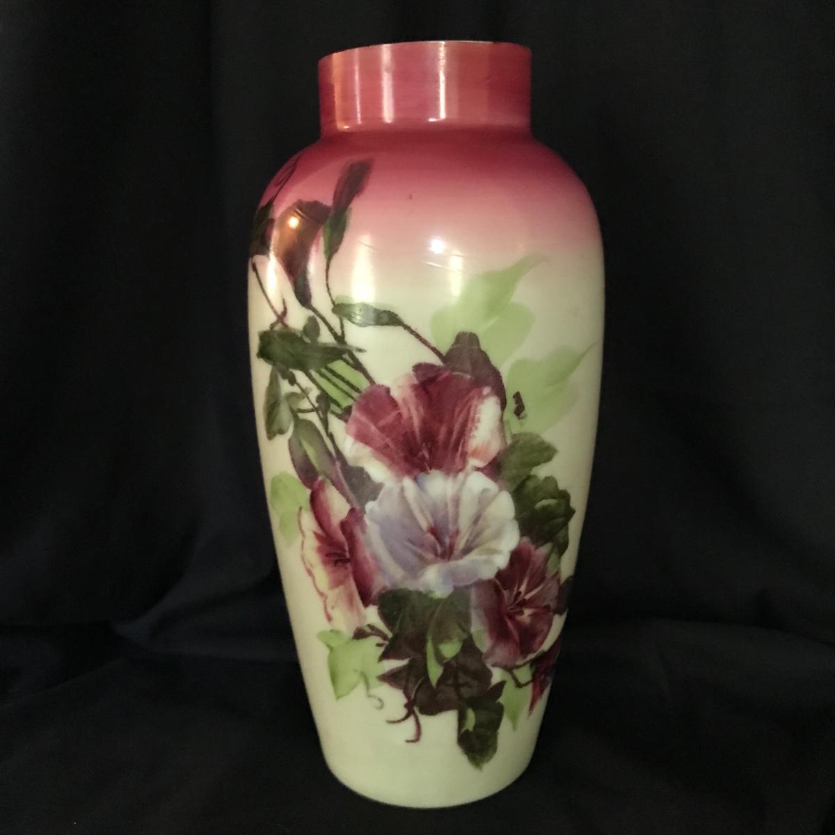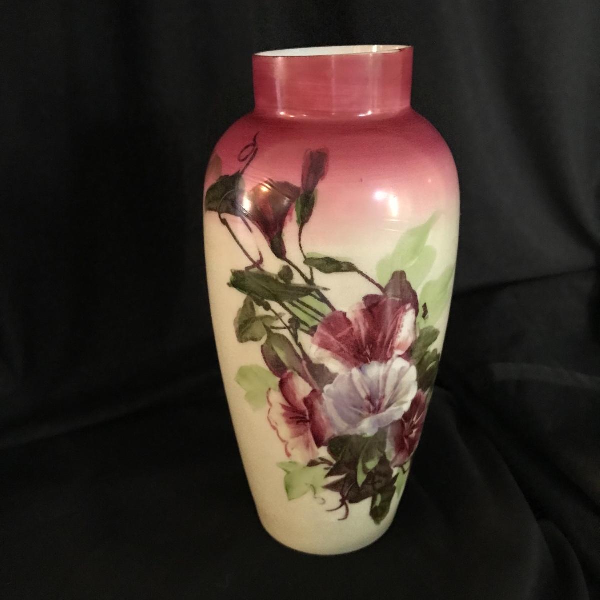 Floral painted glass vase.