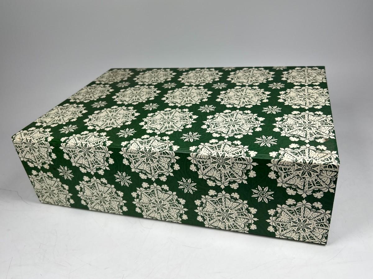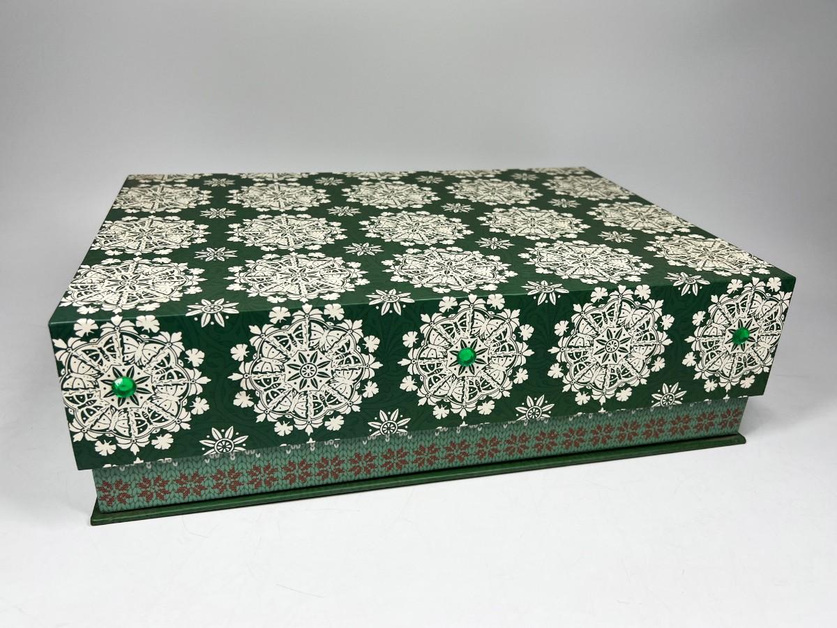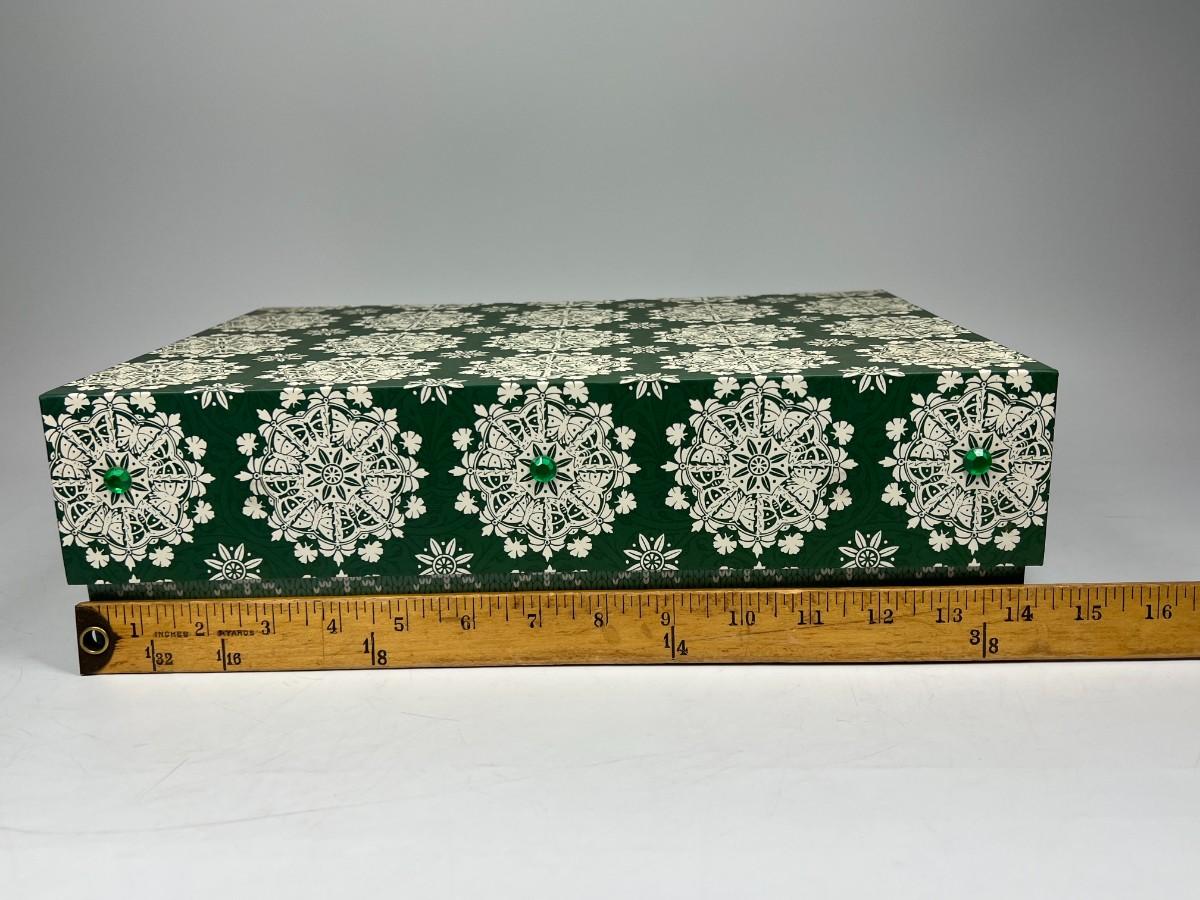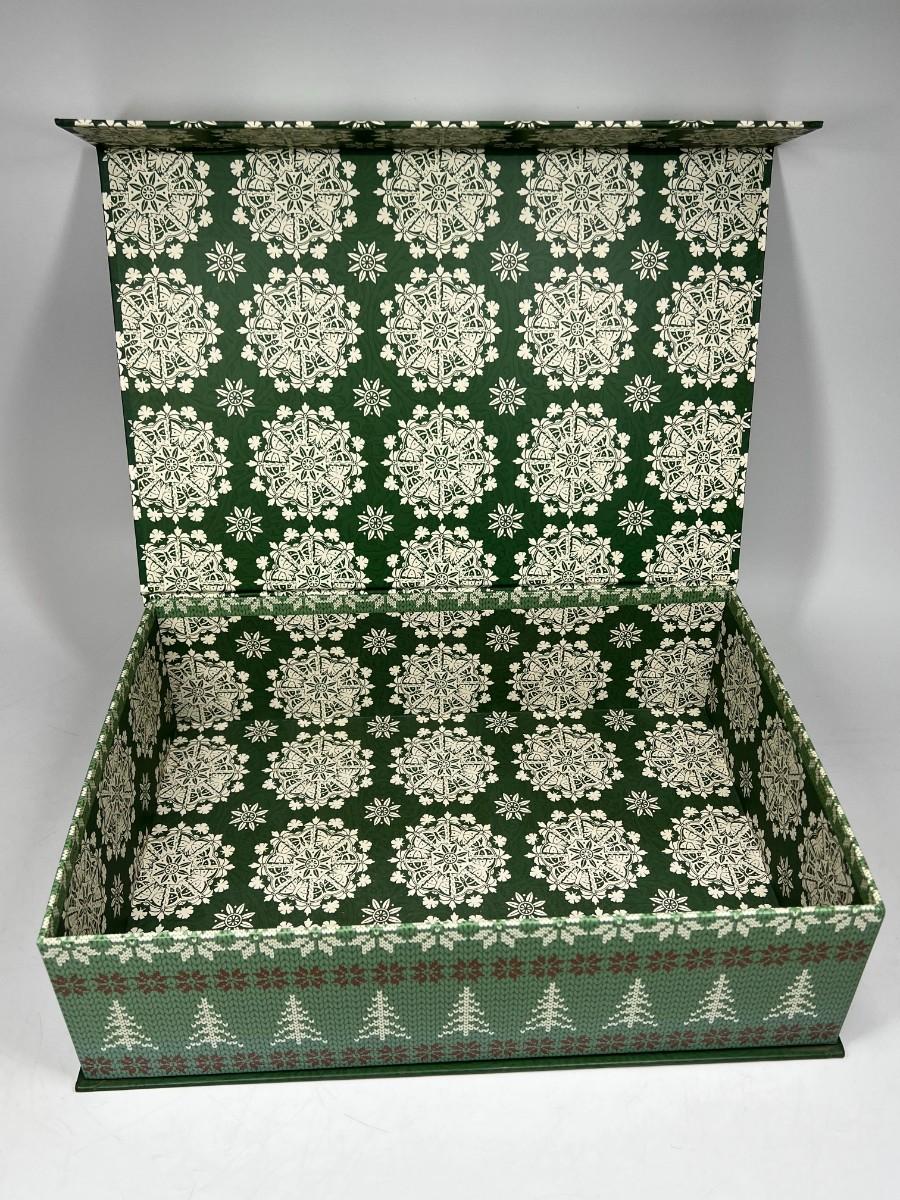 Decorative Green Plaid with Snowflakes Holiday Storage Box. Good condition.