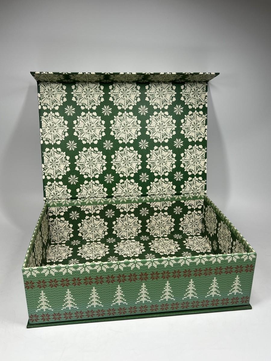 Decorative Green Plaid with Snowflakes Holiday Storage Box