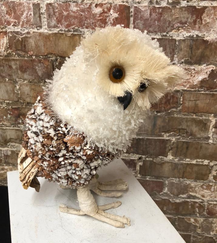 DECORATIVE HAND CRAFTED TRIMMERY SNOW OWL FIGURE
