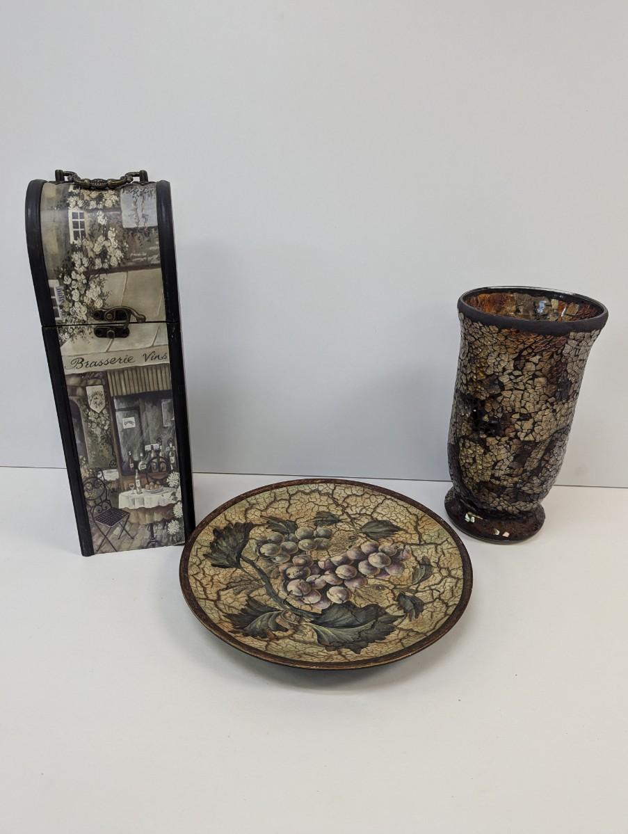 Decorative Home Decor Mosaic Glass Vase Wooden Case Wine Box & Decorative Plate