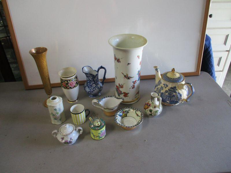 Teapot & Vases & Trinkets - items show signs of wear and use consistent with age