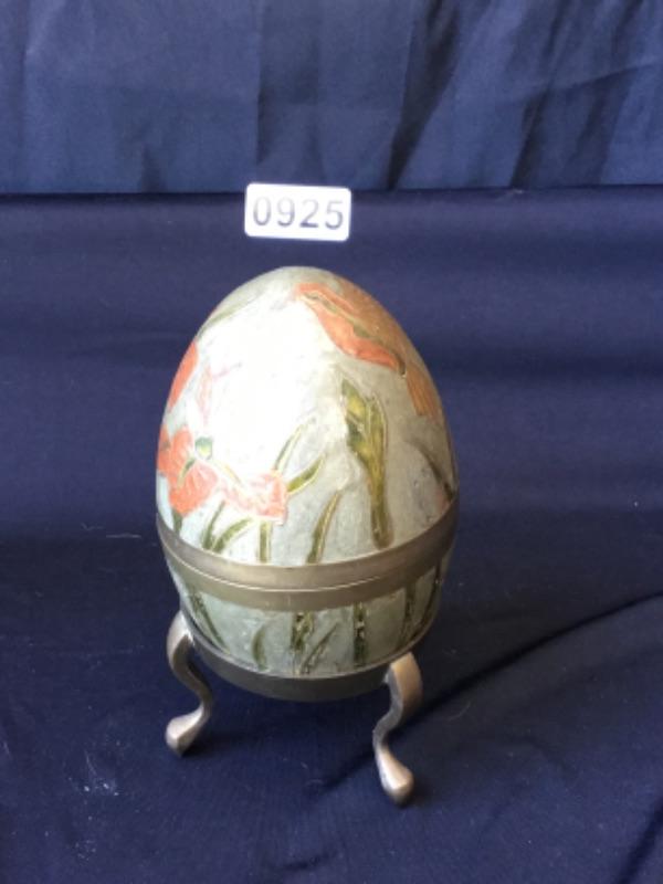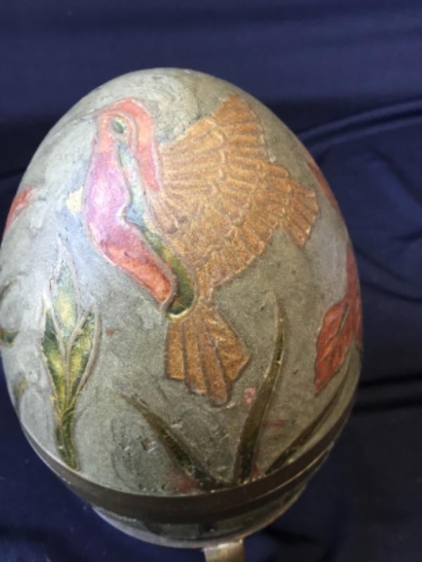 Decorative hummingbird metal egg in stand Lot 925 I