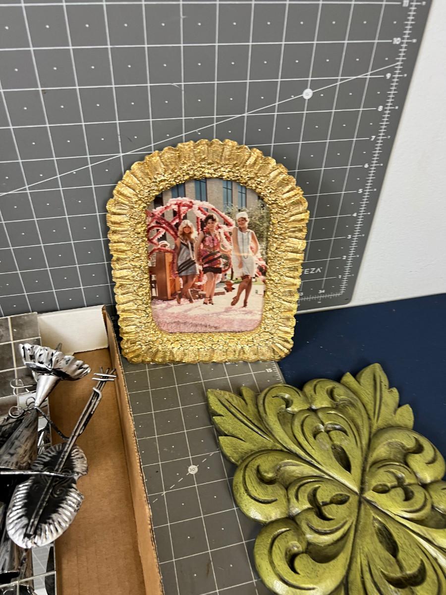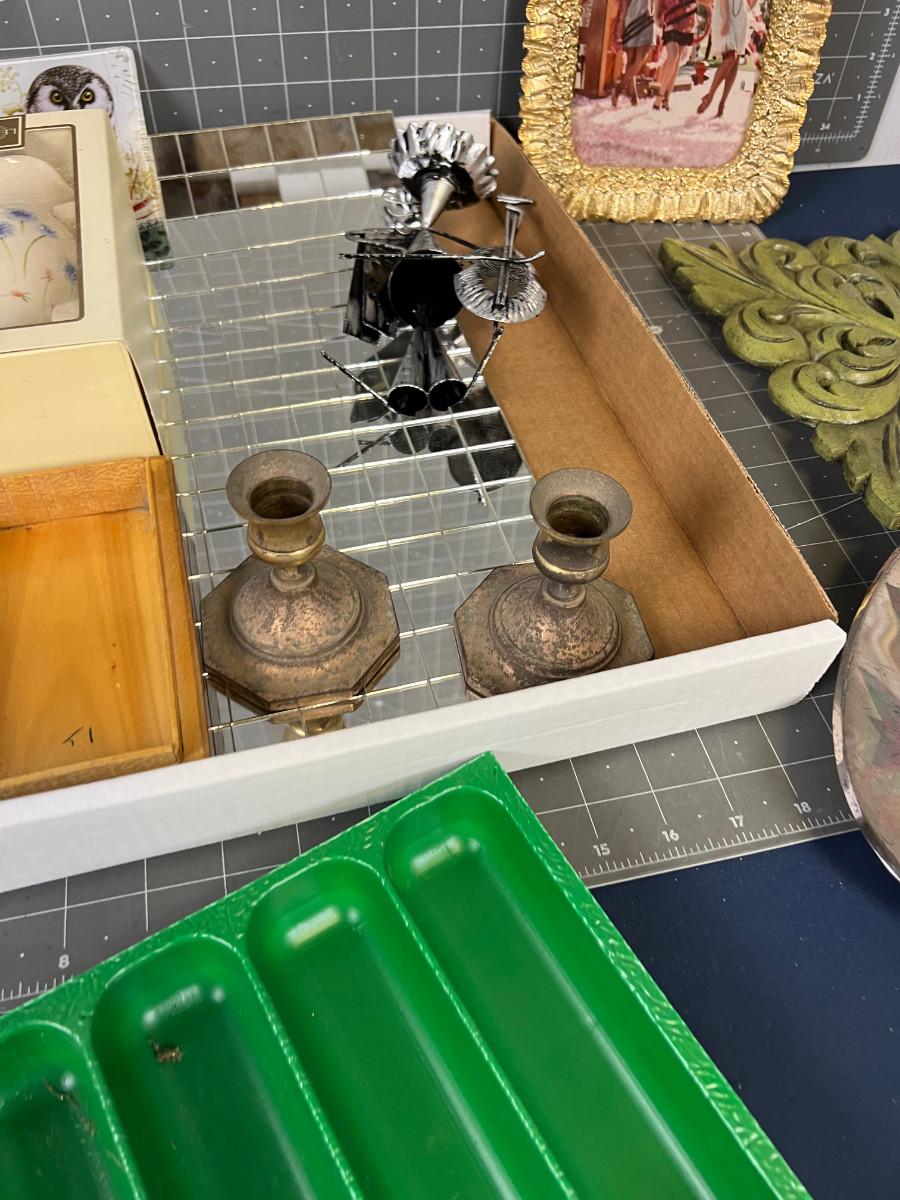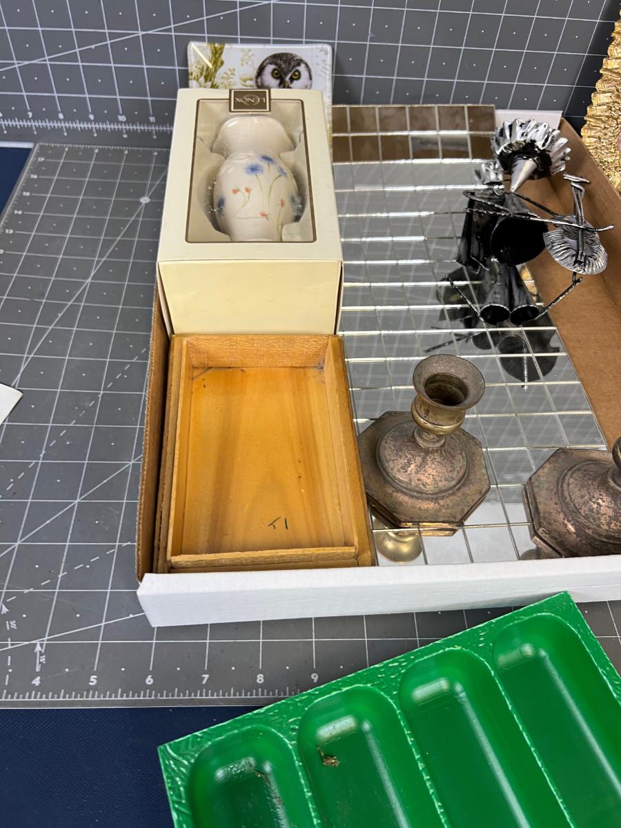 Decorative Items: Frame, Candle Sticks, Serving Tray. Mixed