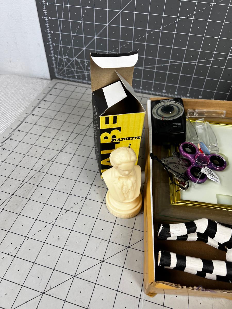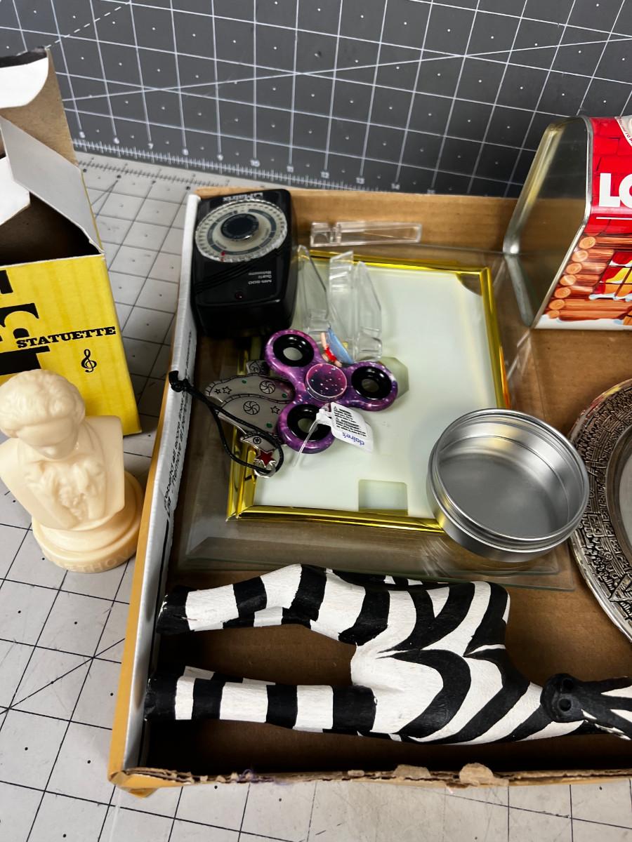 Decorative Items Log Cabin Tin, Statues of Composers, Zebra, misc.