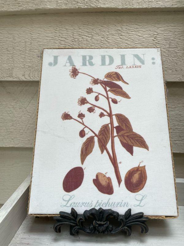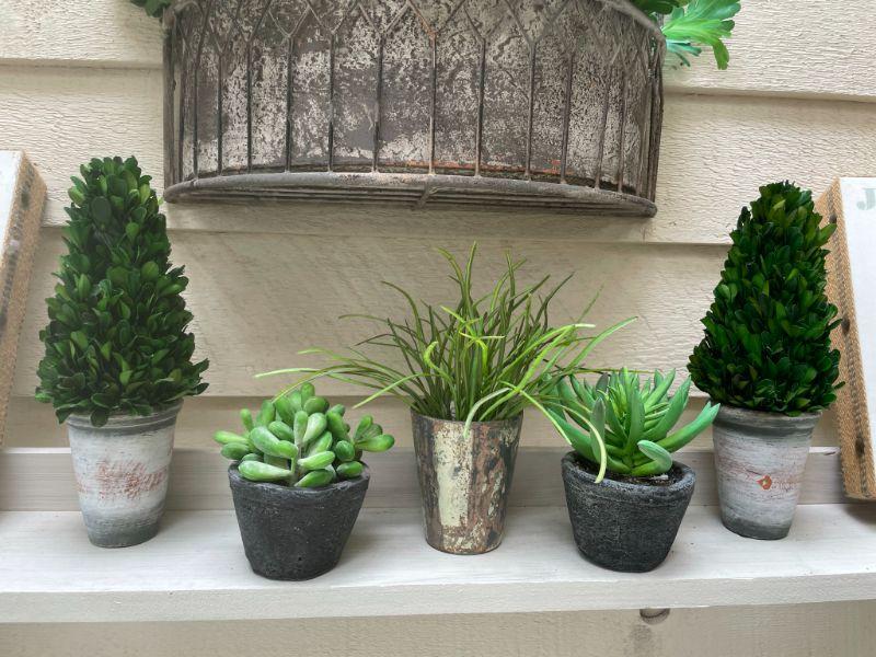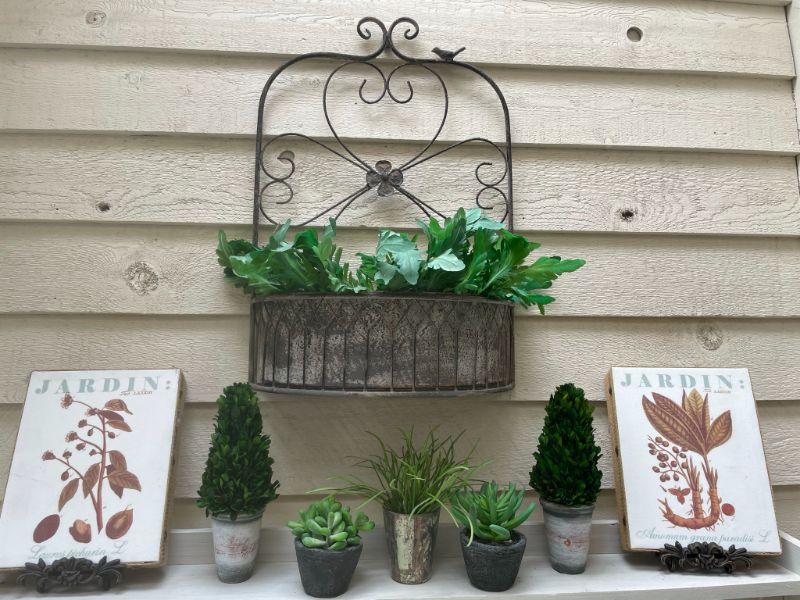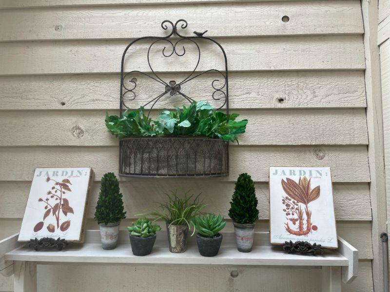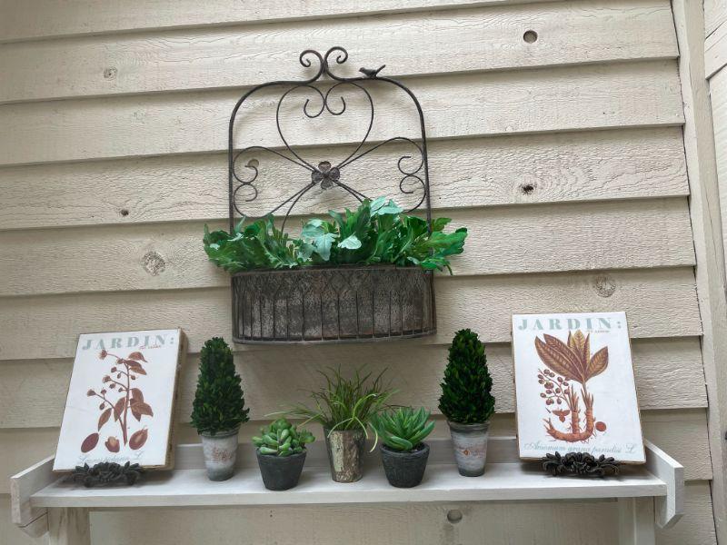 Include Metal Plant holder, 2 prints and 5 artificial plant decorations
