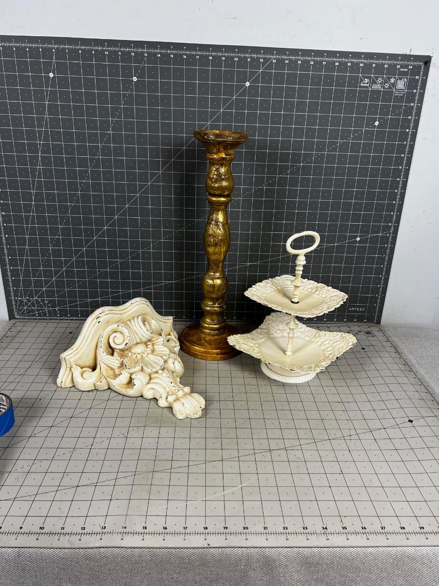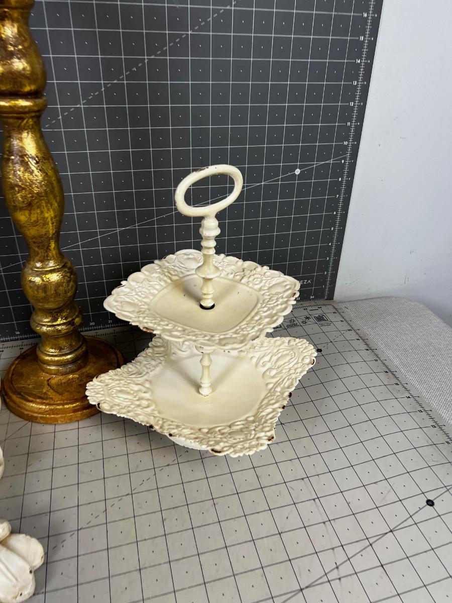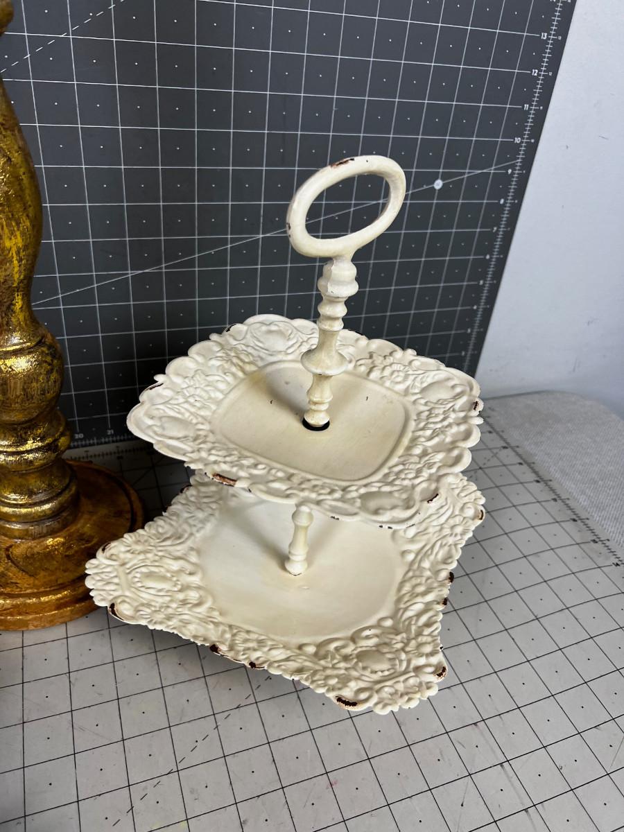Decorative Items; Sconce & Display Tiered Platter Shabby Chic White